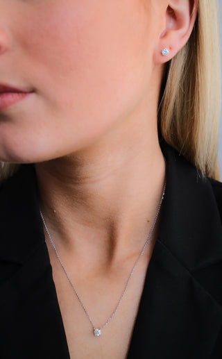 14ct White Gold Laboratory Grown Diamond Floating Pendant & Four Claw Earrings (0.75-0.76ct Each) Bundle