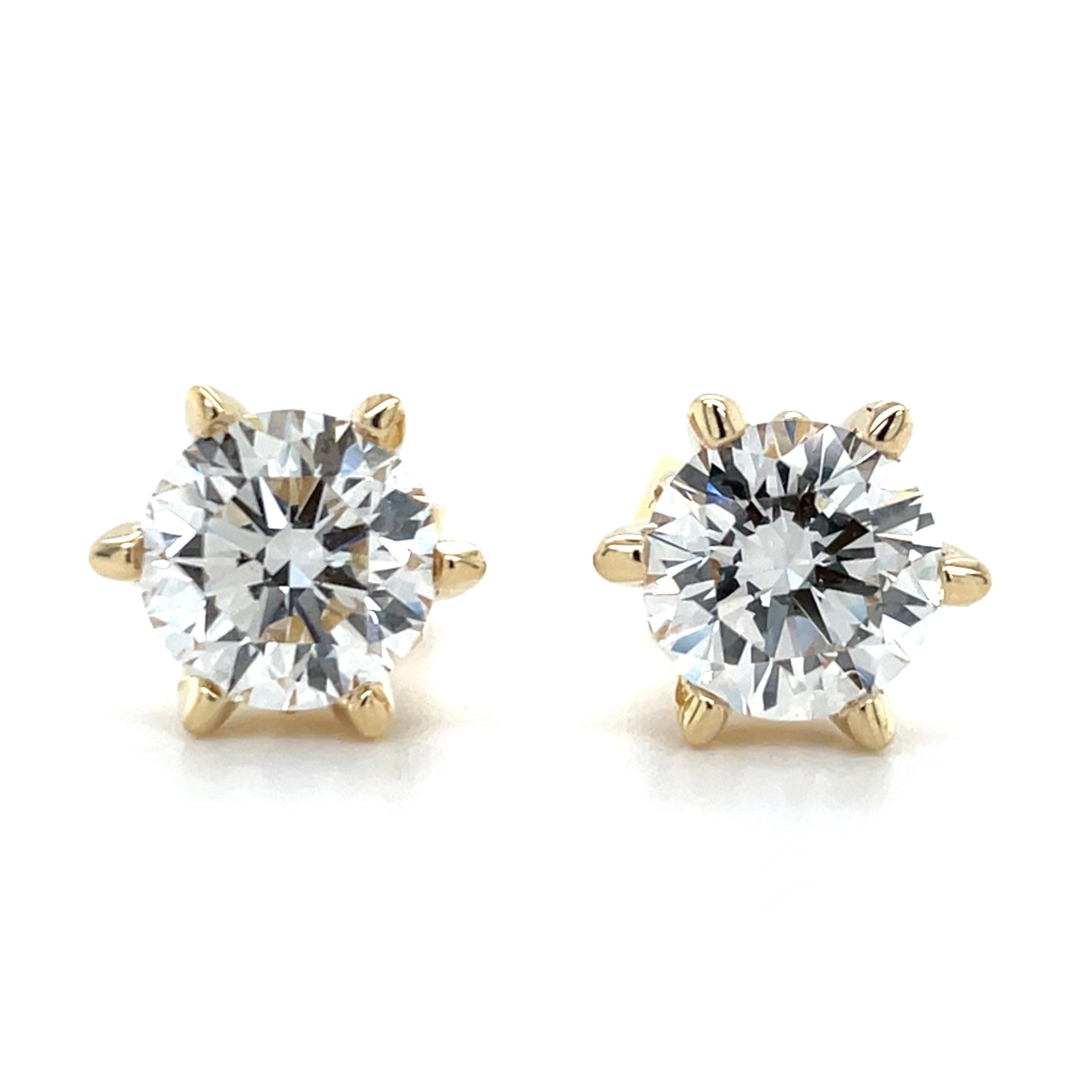 Elevate your everyday elegance with these exquisite 14ct yellow gold stud earrings, each featuring a brilliant laboratory-grown diamond secured in a classic six-claw setting. With a combined diamond weight of 3.03 / 3.02ct, these timeless pieces offer sophisticated sparkle that complements any occasion.