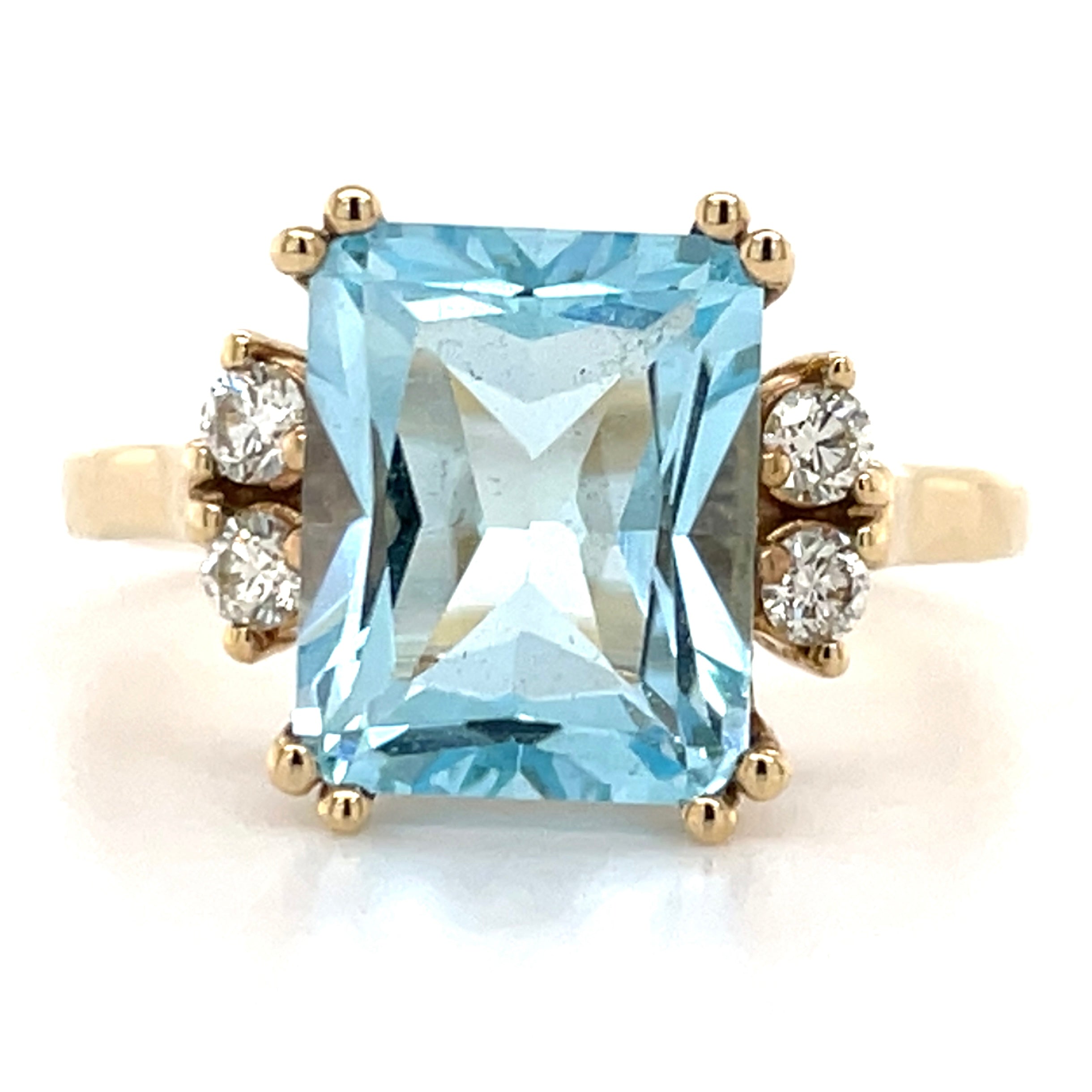 9ct Yellow Gold Earth Grown 3ct Sky Blue Topaz & Diamond Ring
