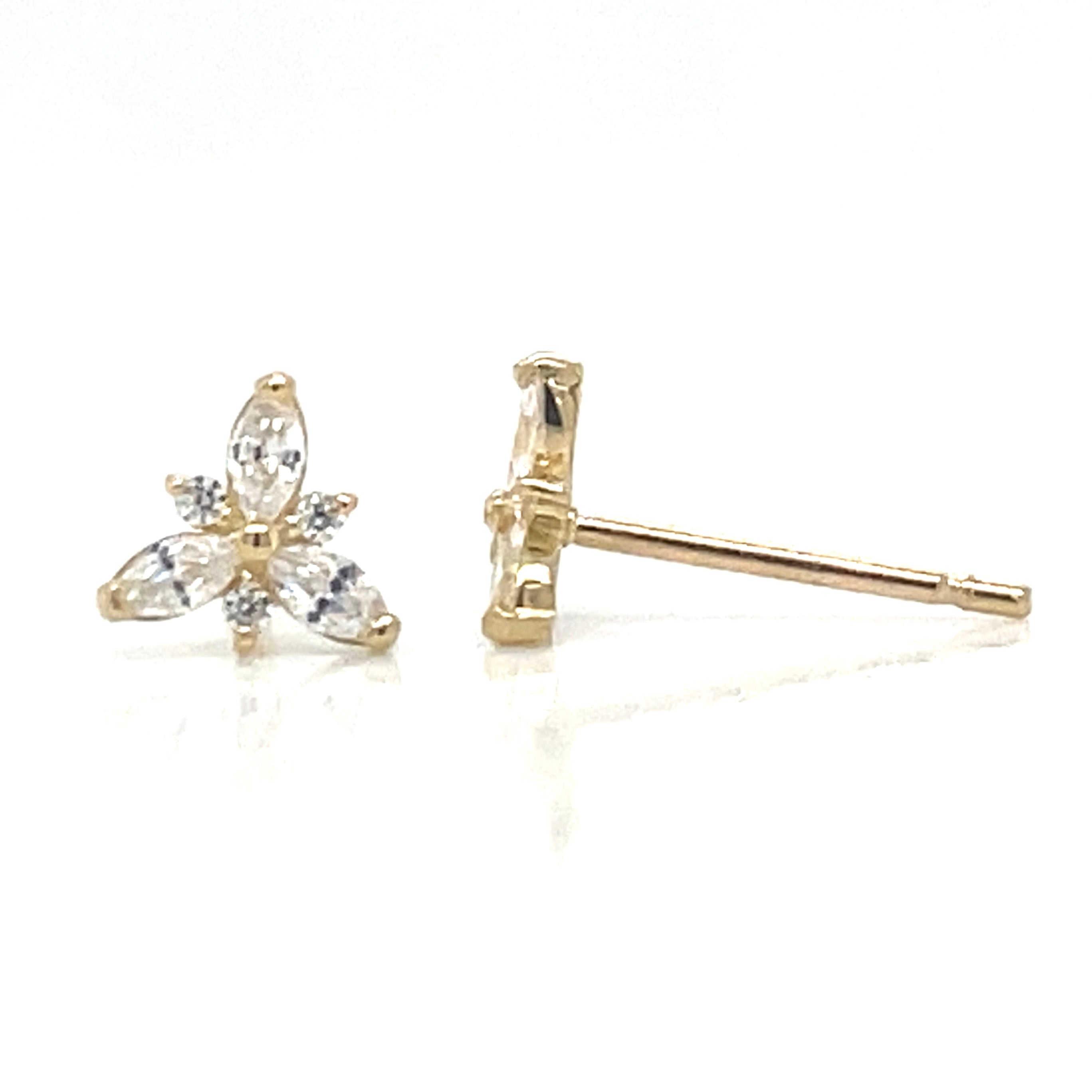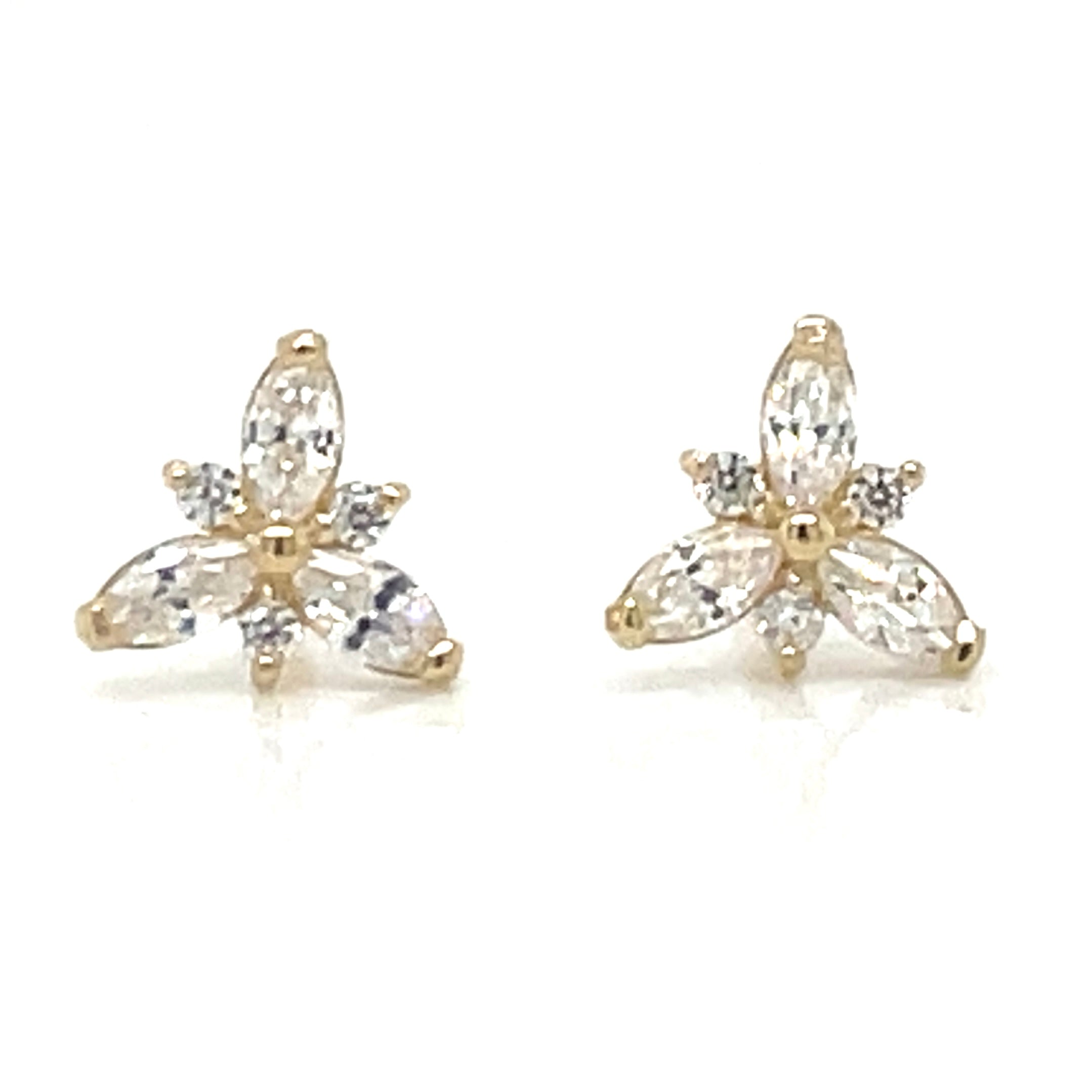Add some sparkle to your outfit with these 9ct Yellow Gold Petal Stud Cz Earrings. The delicate petal design is crafted from high-quality cz and set in stunning 9ct gold. Elevate your style with these beautiful and timeless earrings.