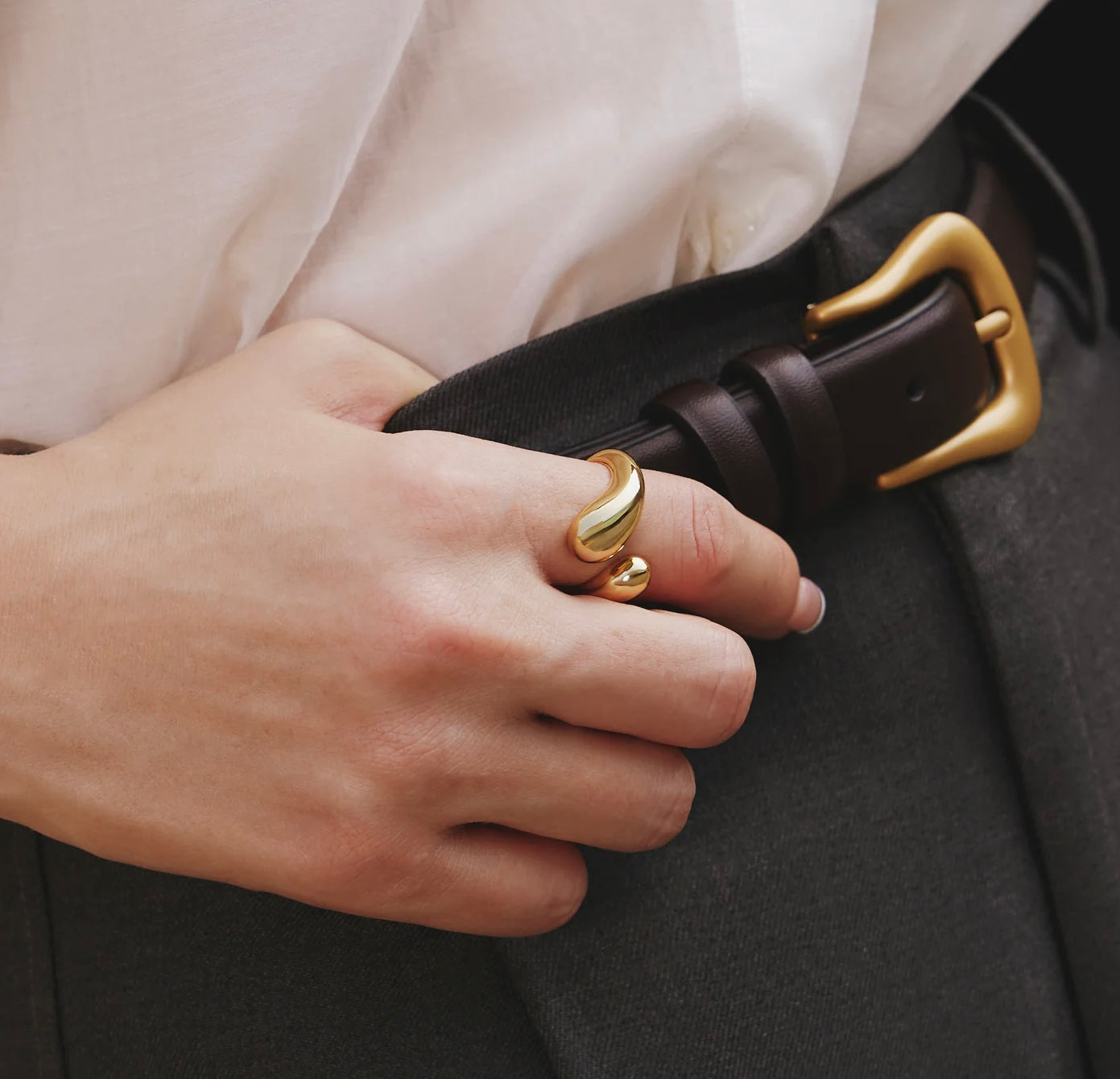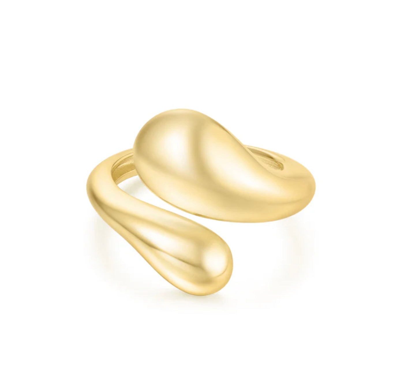 Elevate your style with the Ania Haie Gold Sculptural Crossover Ring. Crafted with sterling silver and 14ct gold plating, this adjustable band boasts a unique crossover design for a touch of boldness and individuality. Perfect for the workplace and after-hours, it's the ultimate statement piece to reflect your taste and fashion sensibility.