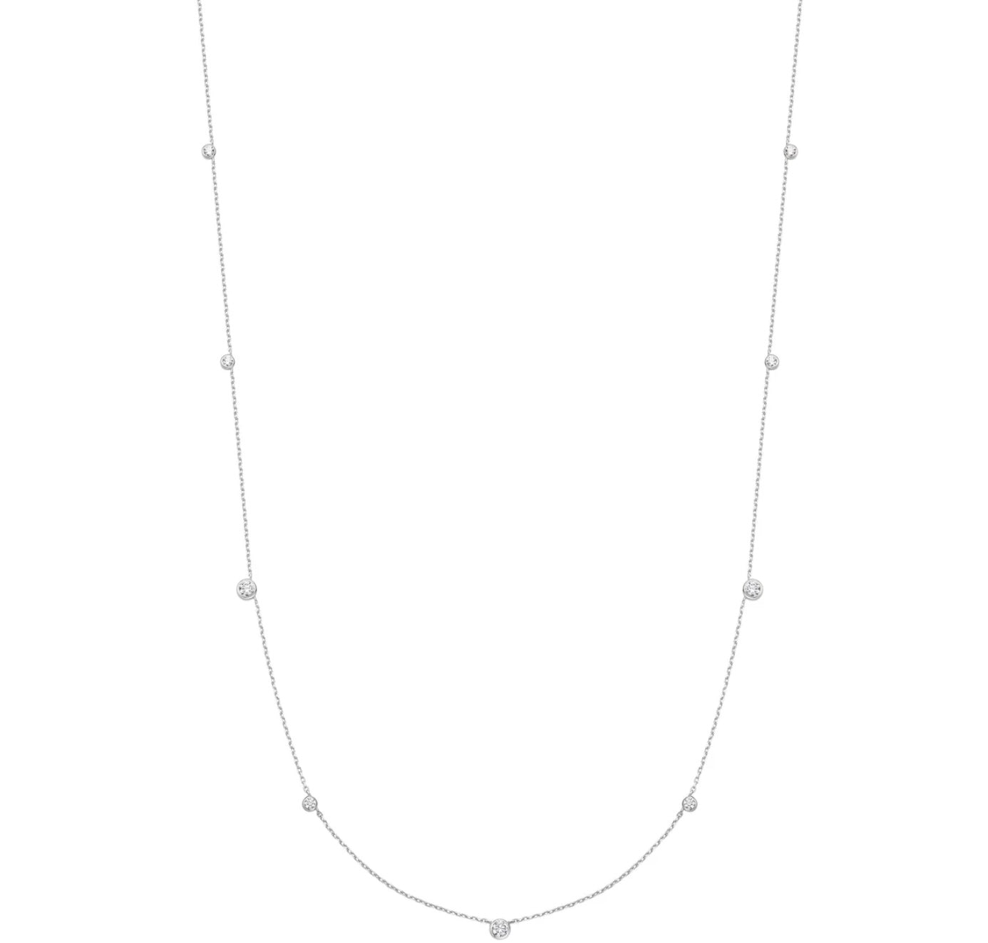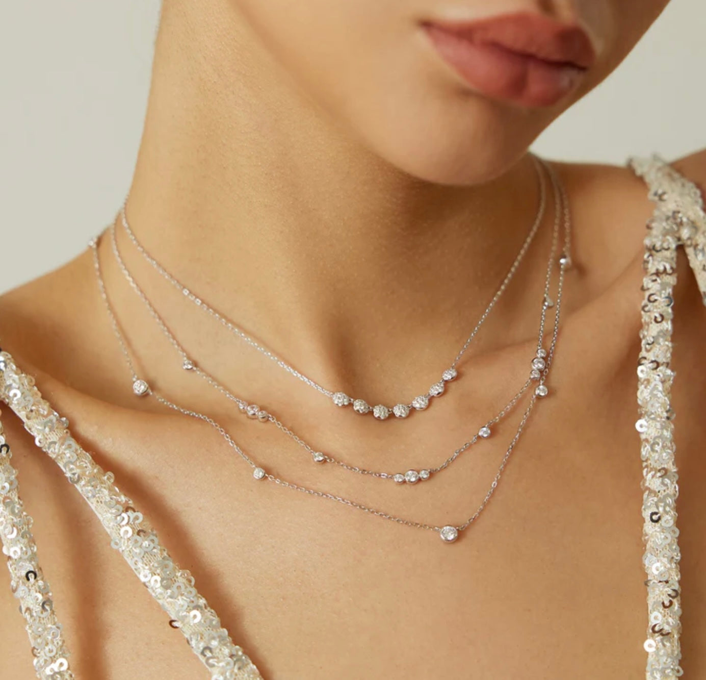 Miss Dainty is designed for the woman who loves elegance with a touch of whimsy. This cubic zirconia station necklace is crafted with delicate details, embodying grace and subtle sophistication. With a slider for free adjustment, it can be worn as multiple pieces or layered with other chains for an eye-catching look, making it perfect for both high-end events and everyday wear.