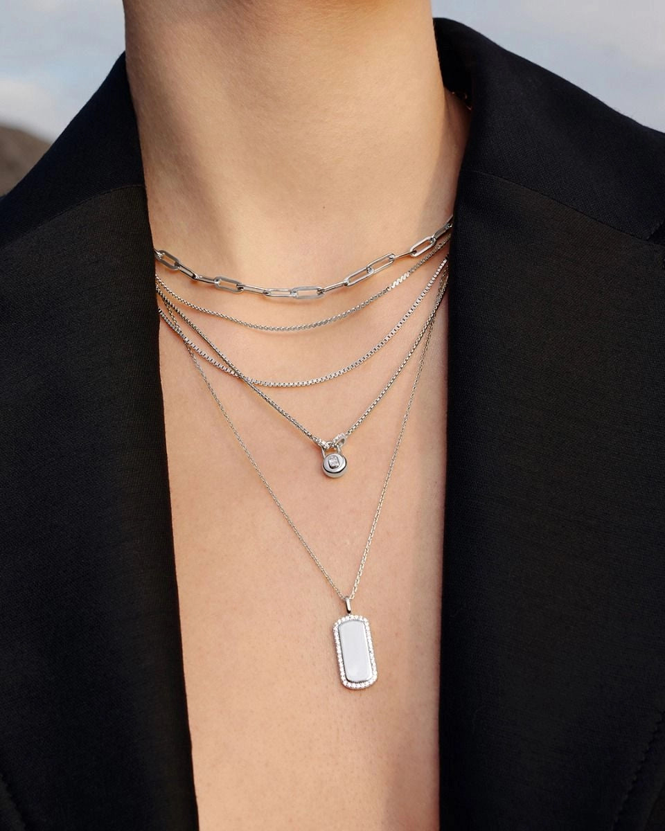Crafted from high-quality sterling silver, this paper clip chain necklace by Ania Haie offers a modern twist on a classic design. Its elongated links create a sleek, versatile piece that complements both casual and formal styles. Durable yet lightweight, it provides lasting elegance and can be layered effortlessly for a contemporary look. Ideal for those seeking refined simplicity with a distinctive edge. 17 inches in length with adjustments at 16 and 15 inches.