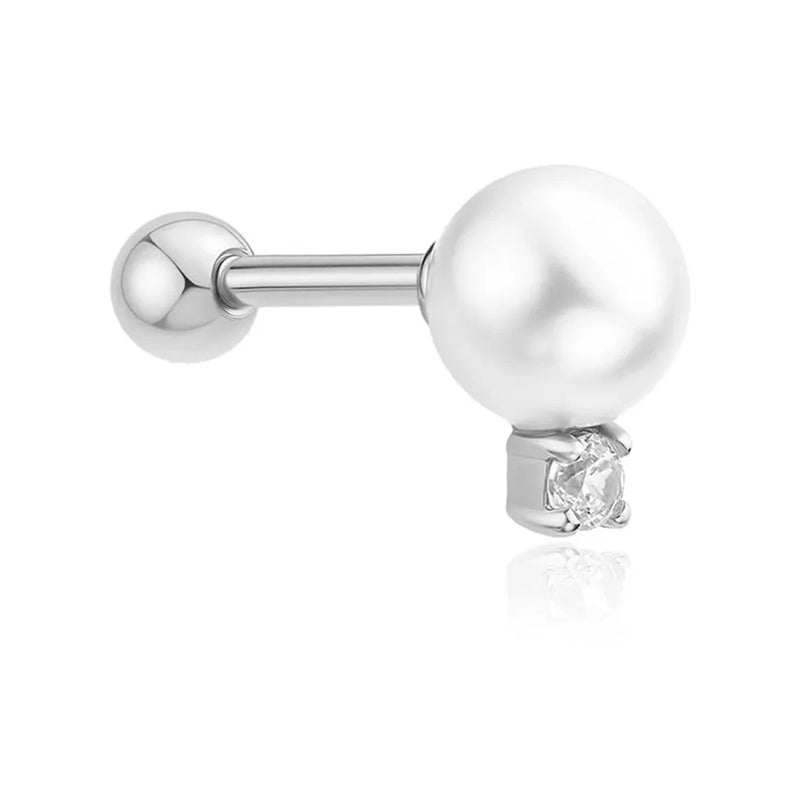 This sterling silver single earring from Ania Haie features a lustrous pearl set alongside a sparkling cubic zirconia accent on a sleek barbell design. Expertly crafted, it offers a refined balance of classic elegance and contemporary detail, making it an exquisite choice for adding subtle sophistication to any look.