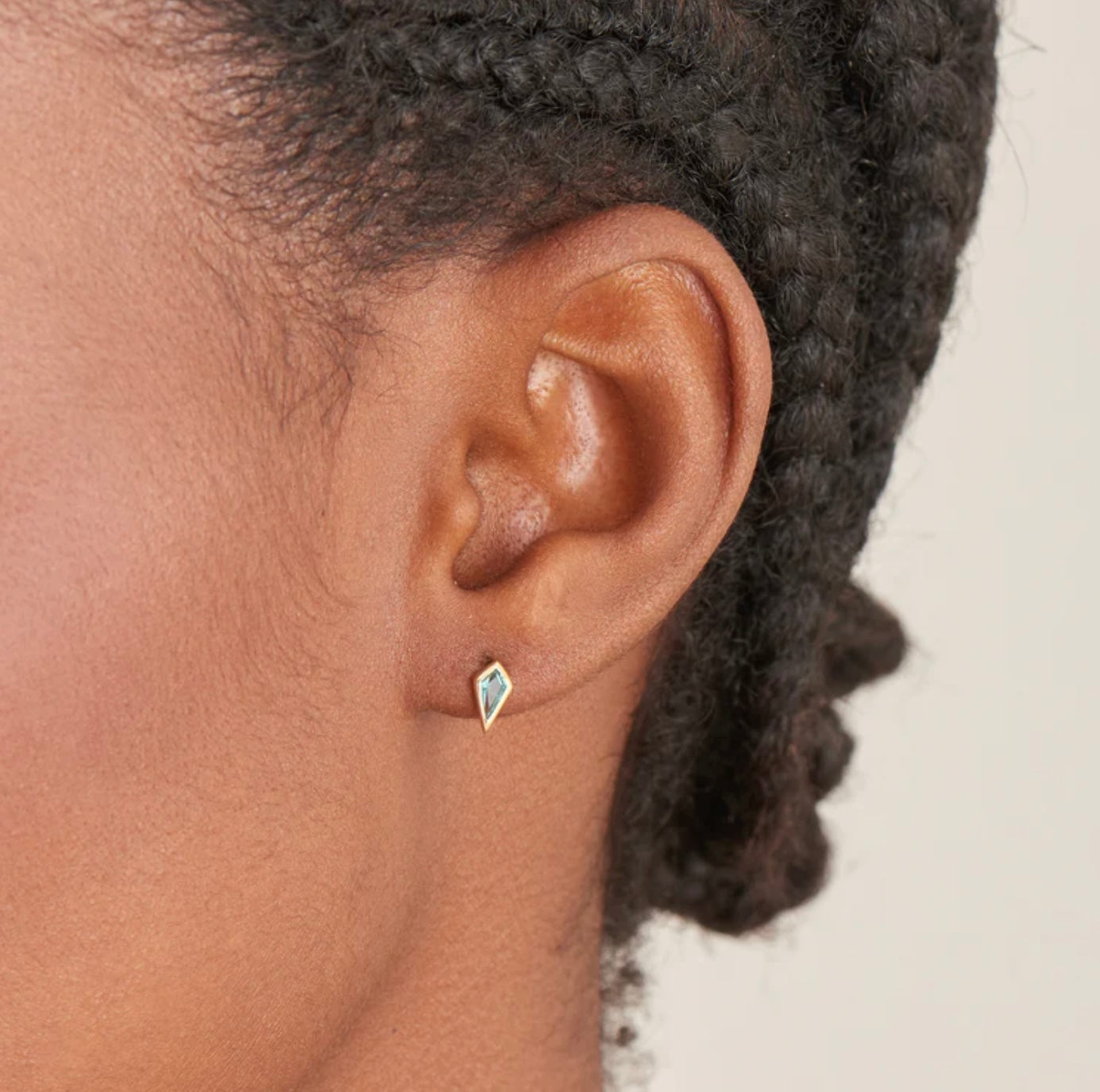 Now is the perfect time to add some sparkle to your ear party and our single barbell with a faceted teal green cubic zirconia stone is the way to do it. Available as a single barbell stud, it’s all about the unique shape of the stone with this stunning piece. Perfect to wear anywhere on the lobe, helix or conch paired with your favourite drop earrings or huggies for modern-day party glam.