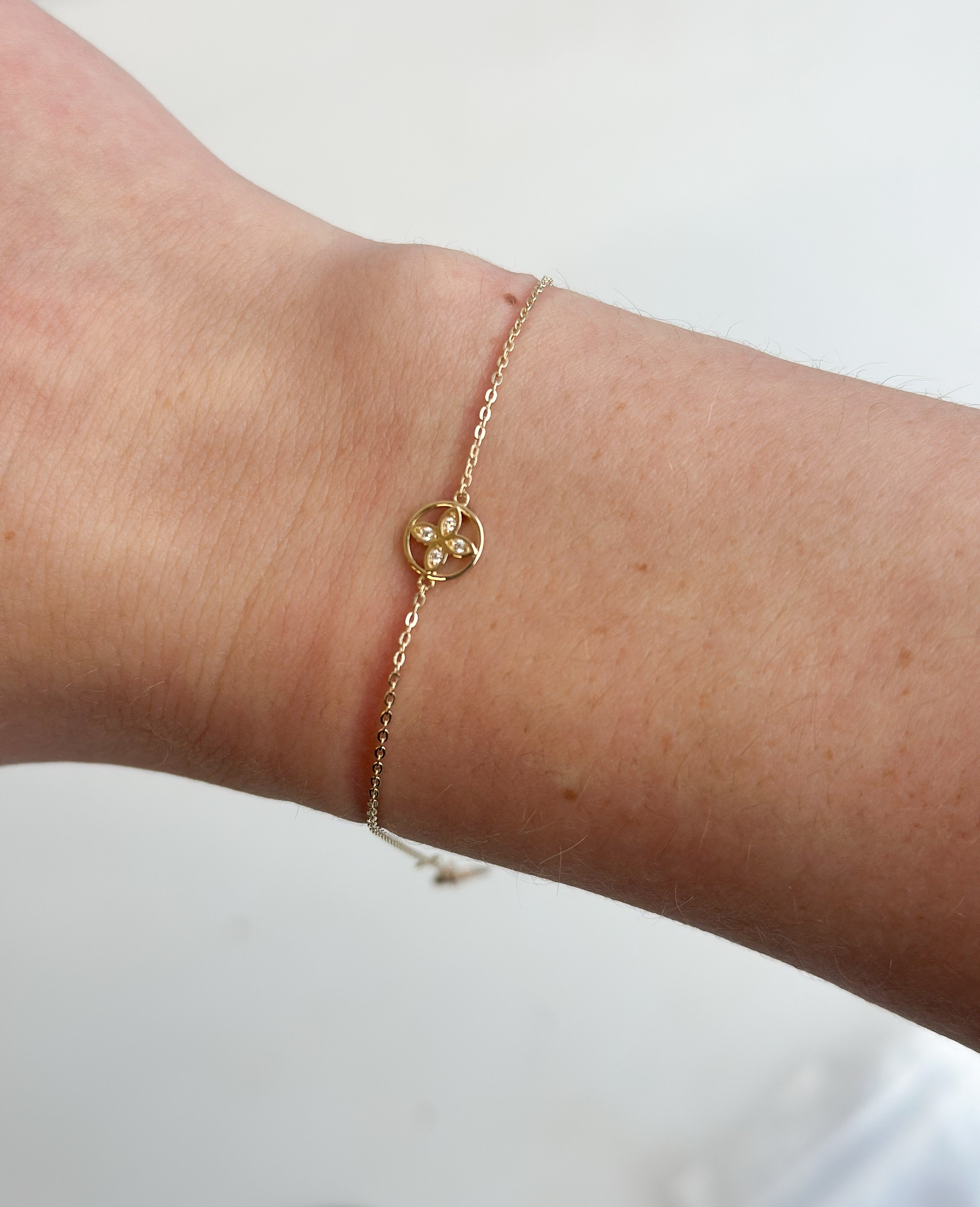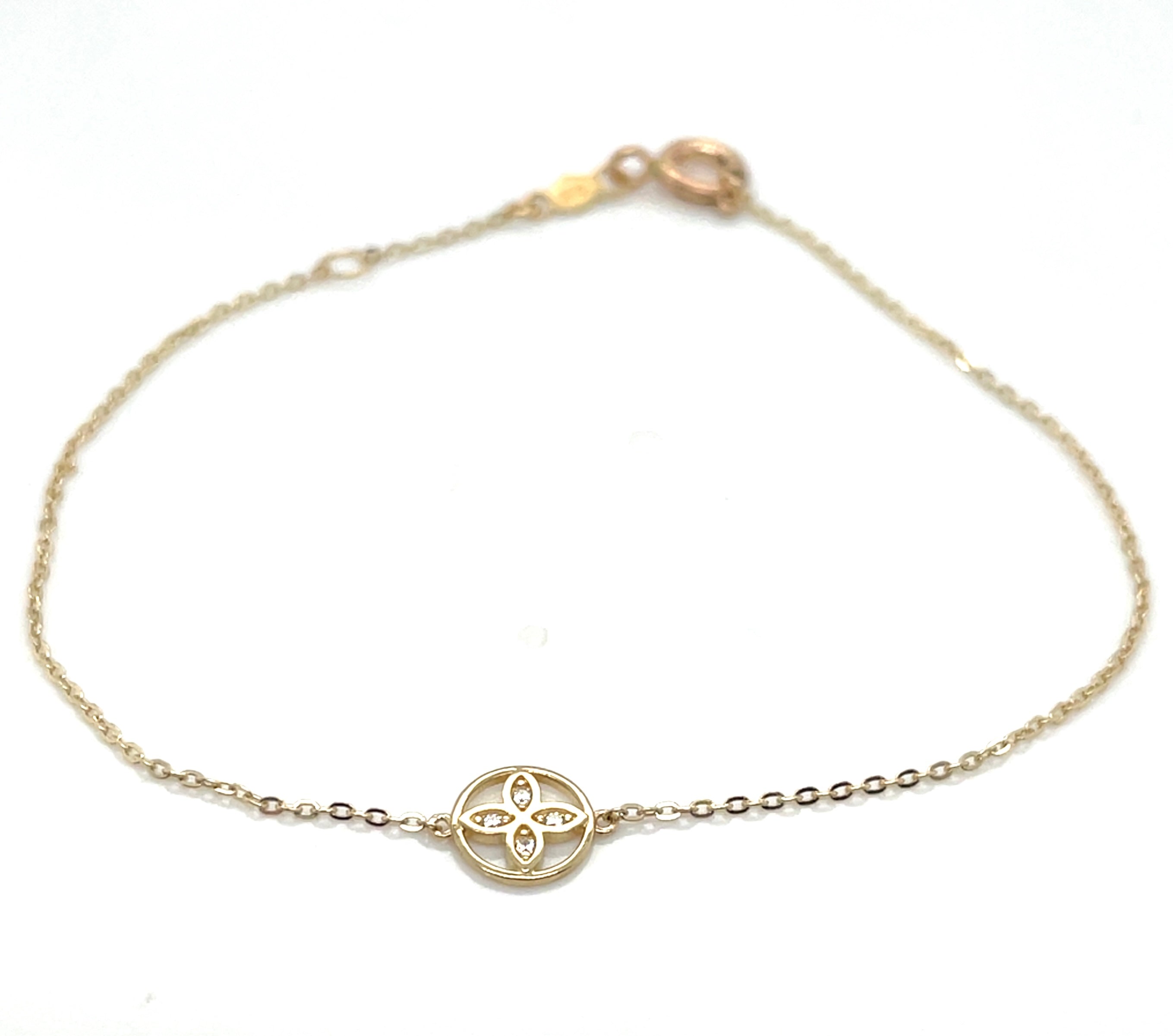 Crafted from high-quality 9ct yellow gold, this round flower cz bracelet is a timeless and elegant piece. With an adjustable length of 16cm to 18cm, it provides a perfect fit for any wrist. Elevate your style with this versatile and luxurious accessory.