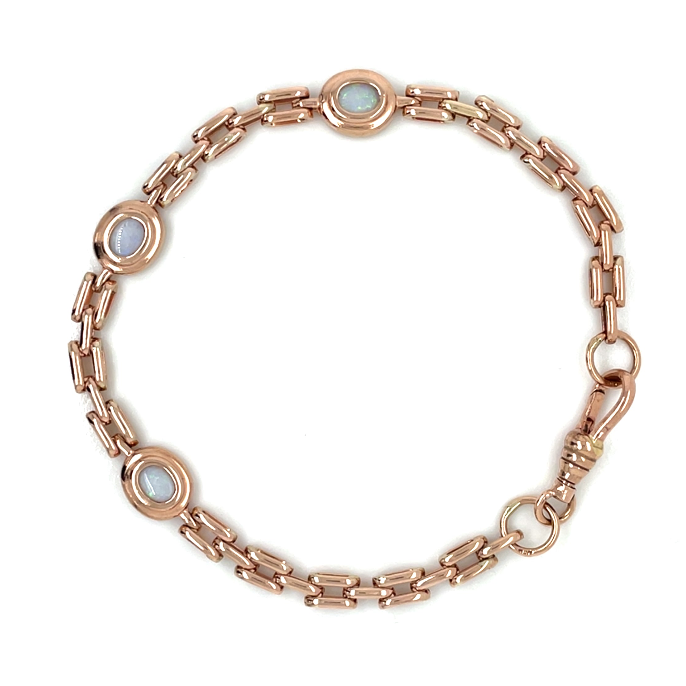Expertly crafted with 9ct rose gold, this Vintage Gate Link Bracelet exudes elegance and sophistication. The gate link design adds a unique touch to this classic piece, while the opal stone adds a touch of subtle color. With a 19cm length, it's the perfect accessory to elevate any outfit.
