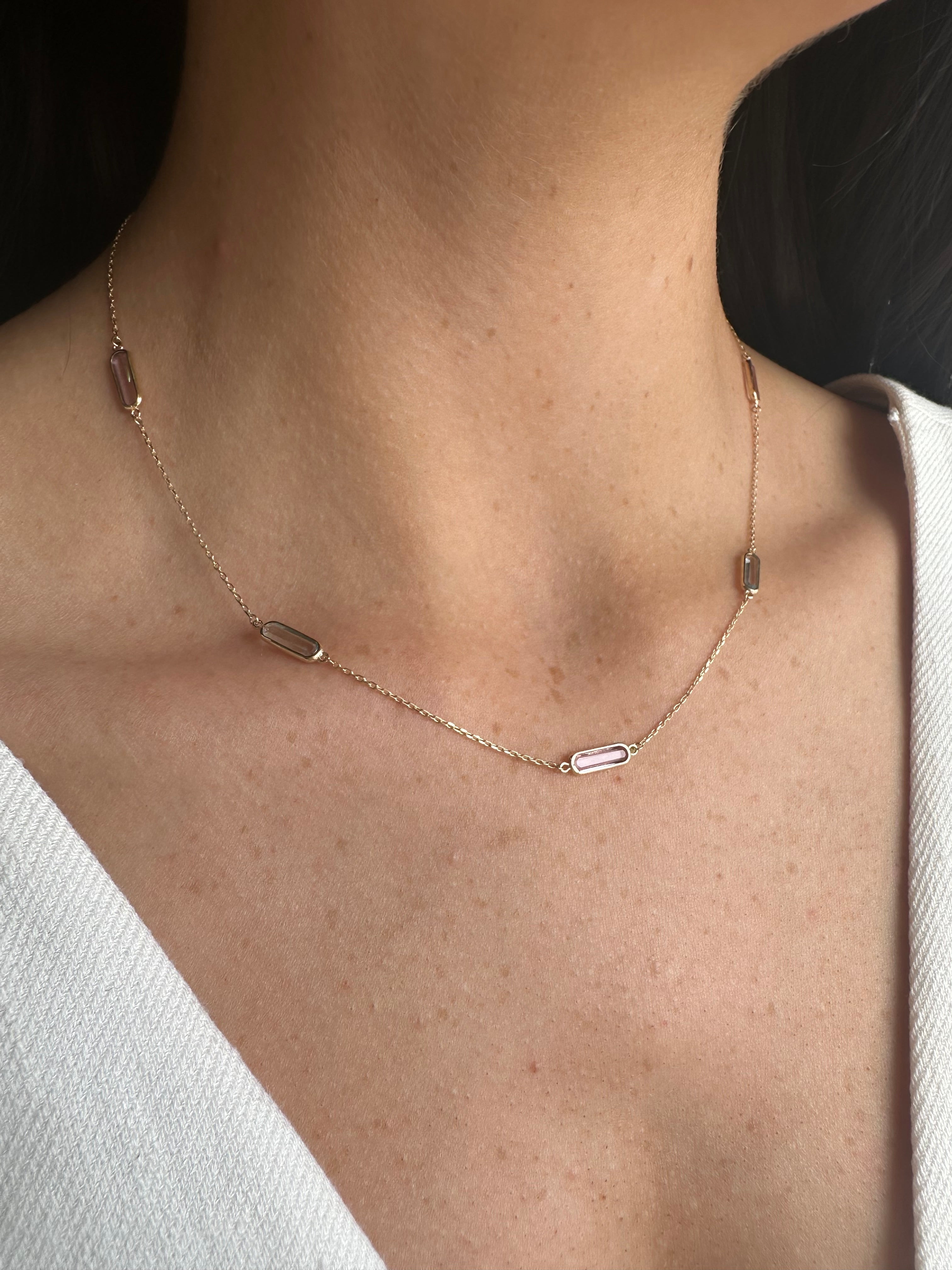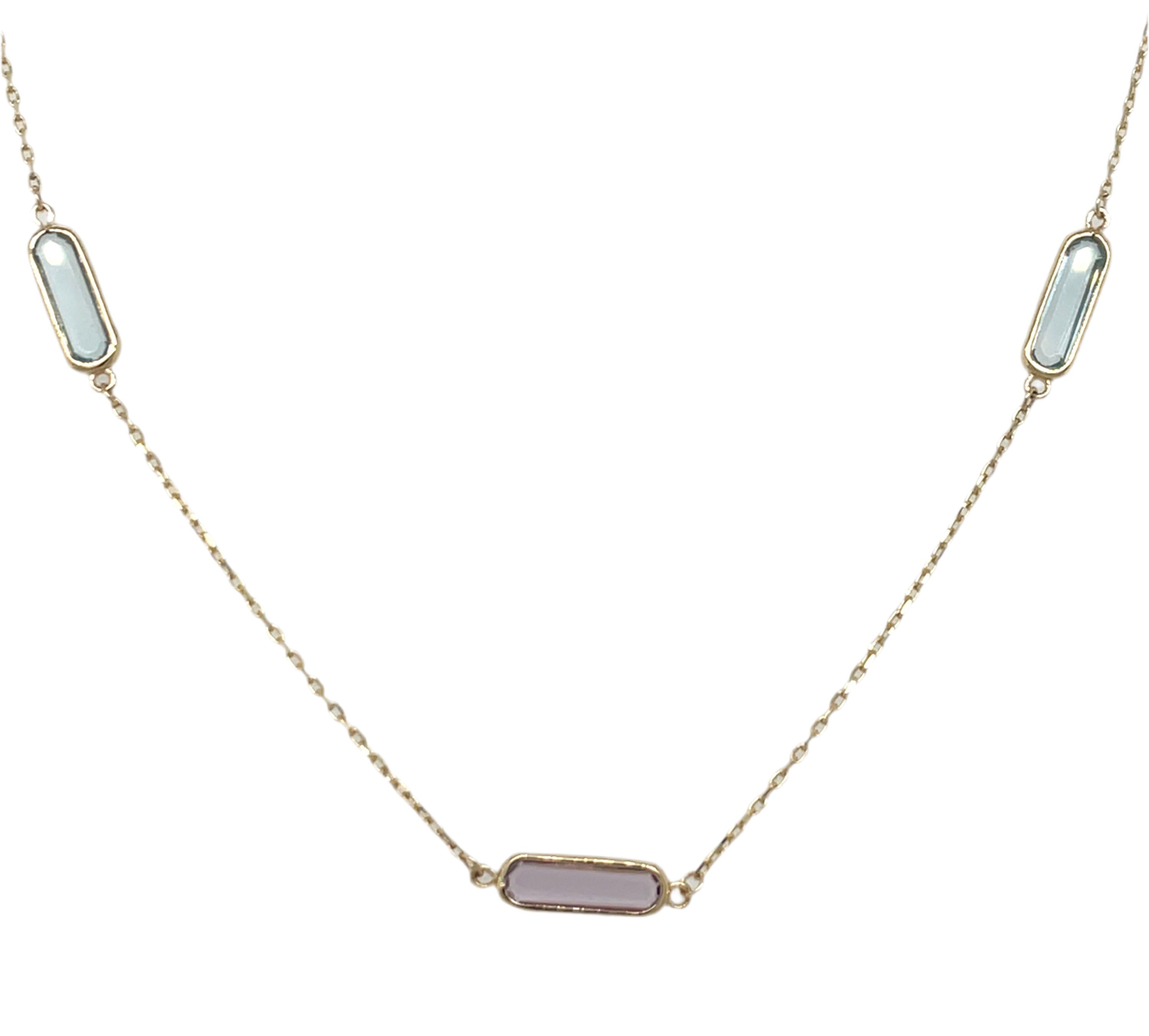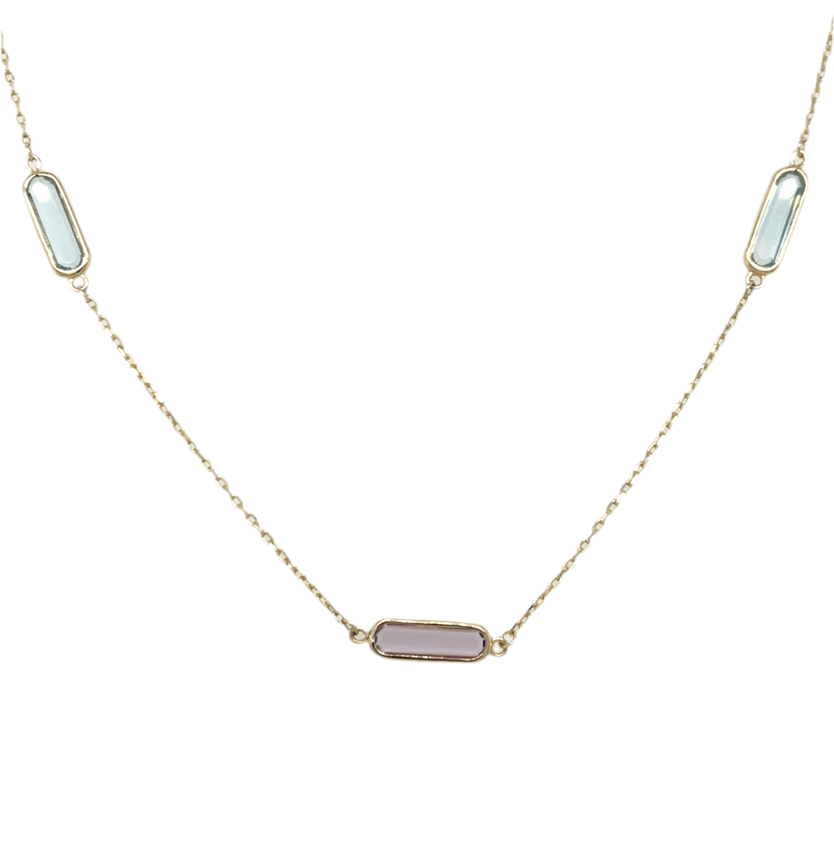 Expertly crafted with 9ct yellow gold, this stunning necklace features a beautiful combination of amethyst and blue topaz gemstones. Enhance your look with the elegant and luxurious touch of this handpicked piece. Elevate any outfit with this timeless and versatile necklace. This necklace length is 18” with a jump ring at 16” for a shorter length
