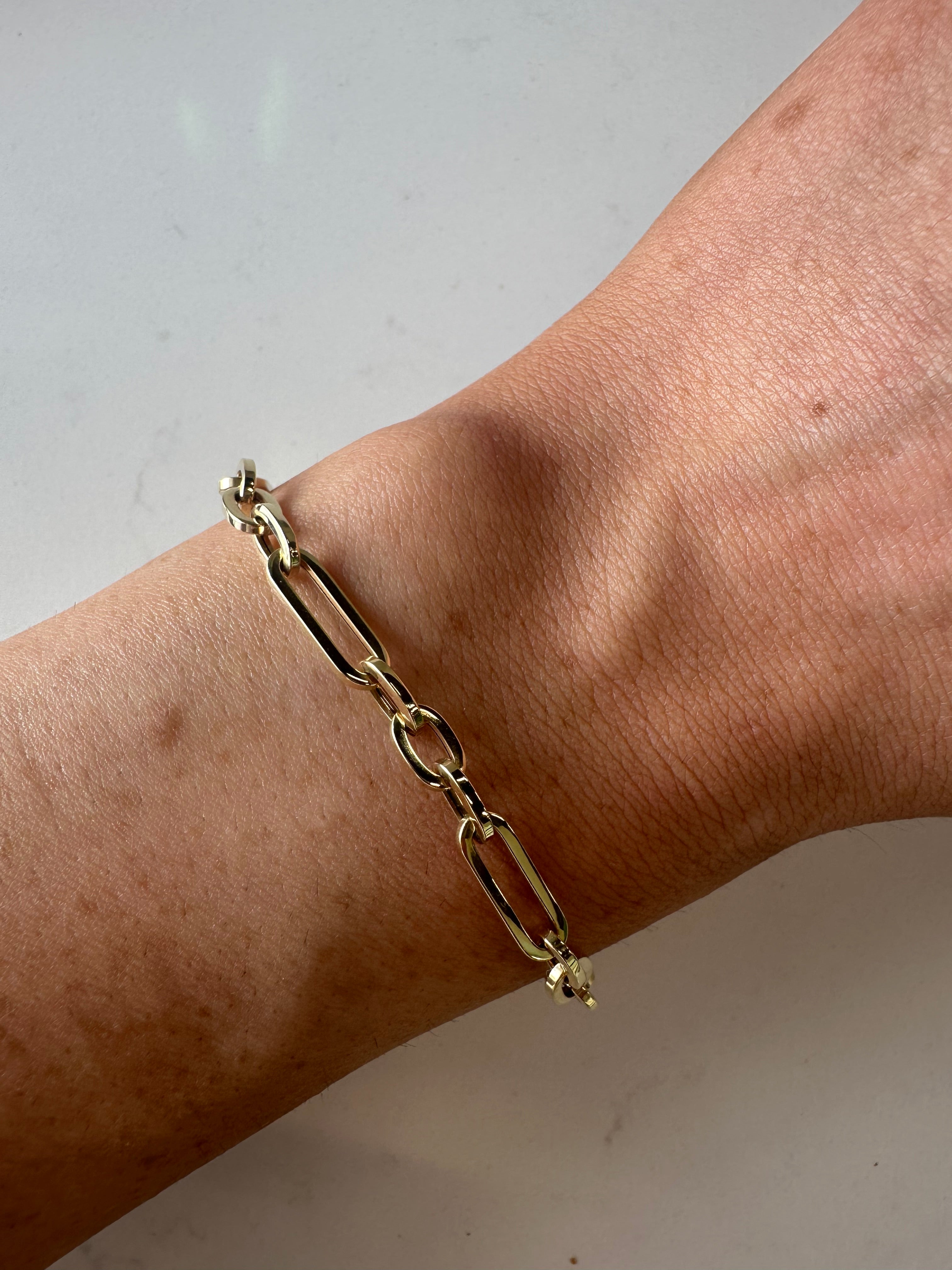 Crafted with 9ct yellow gold, this mixed link bracelet is a timeless addition to any jewelry collection. The intricately designed links create a unique and eye-catching look, while the high-quality material ensures long-lasting beauty and durability . Perfect for any occasion, this bracelet is both elegant and versatile. This bracelet is 7.5” in length