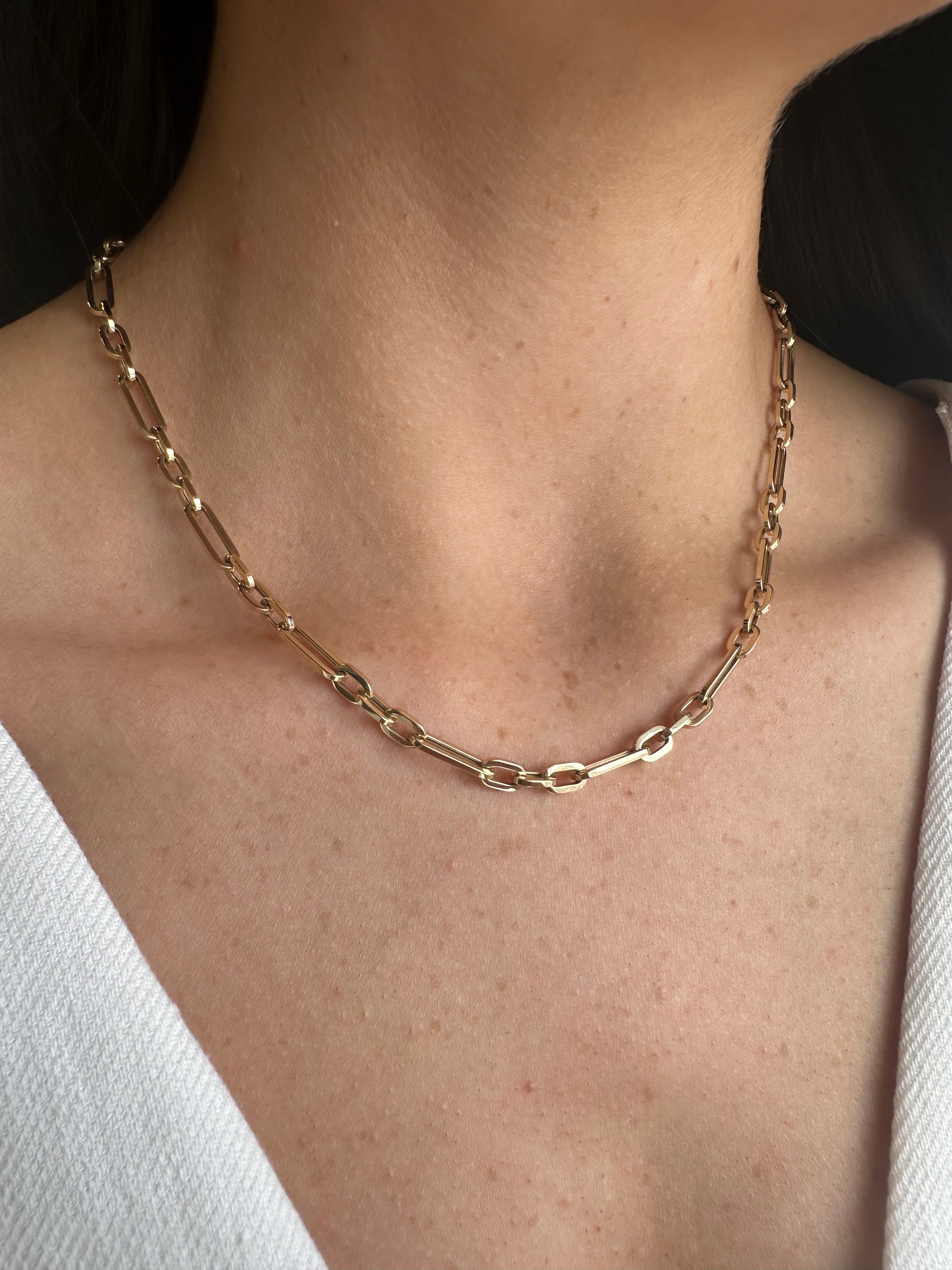 This 9ct Yellow Gold Mixed Link Necklace is expertly crafted with a stunning mix of links that create an elegant and versatile piece. Made with high-quality 9ct yellow gold, this necklace is both stylish and durable. Perfect for adding a touch of sophistication to any outfit. This necklace length is 18”