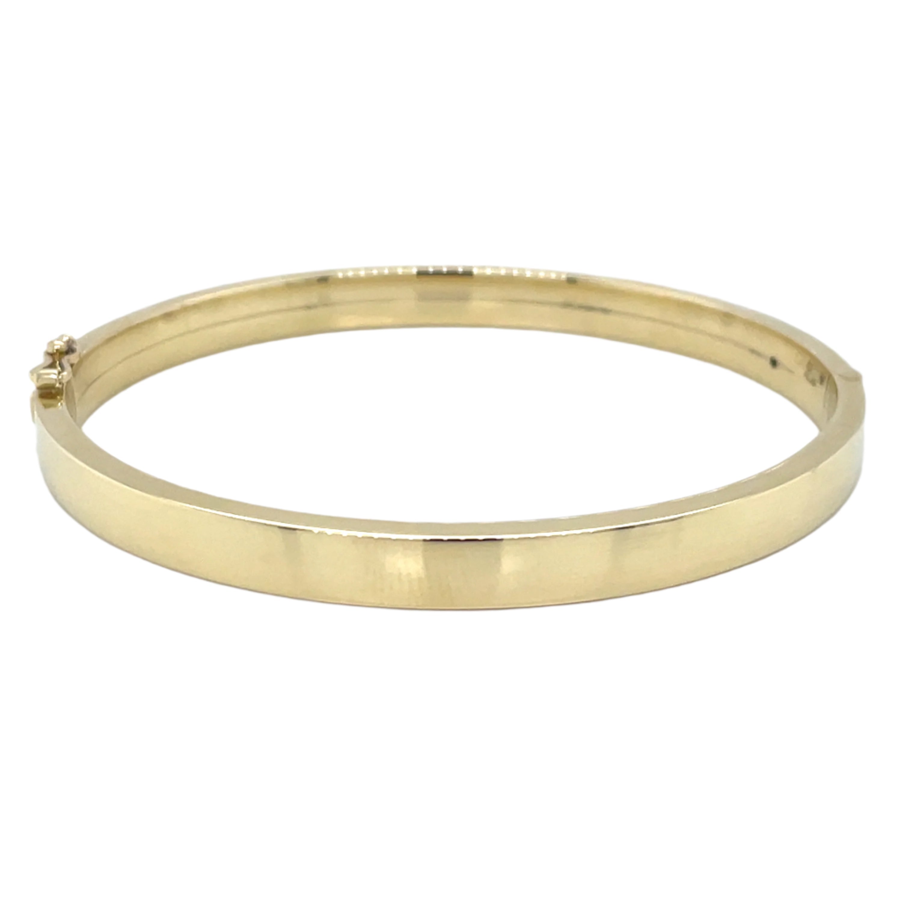 Expertly crafted from 9ct yellow gold, this square edge bangle adds a touch of sophistication to any outfit. The sleek design and high-quality material make it a timeless accessory that can be worn for any occasion. Elevate your style with this stunning bangle.