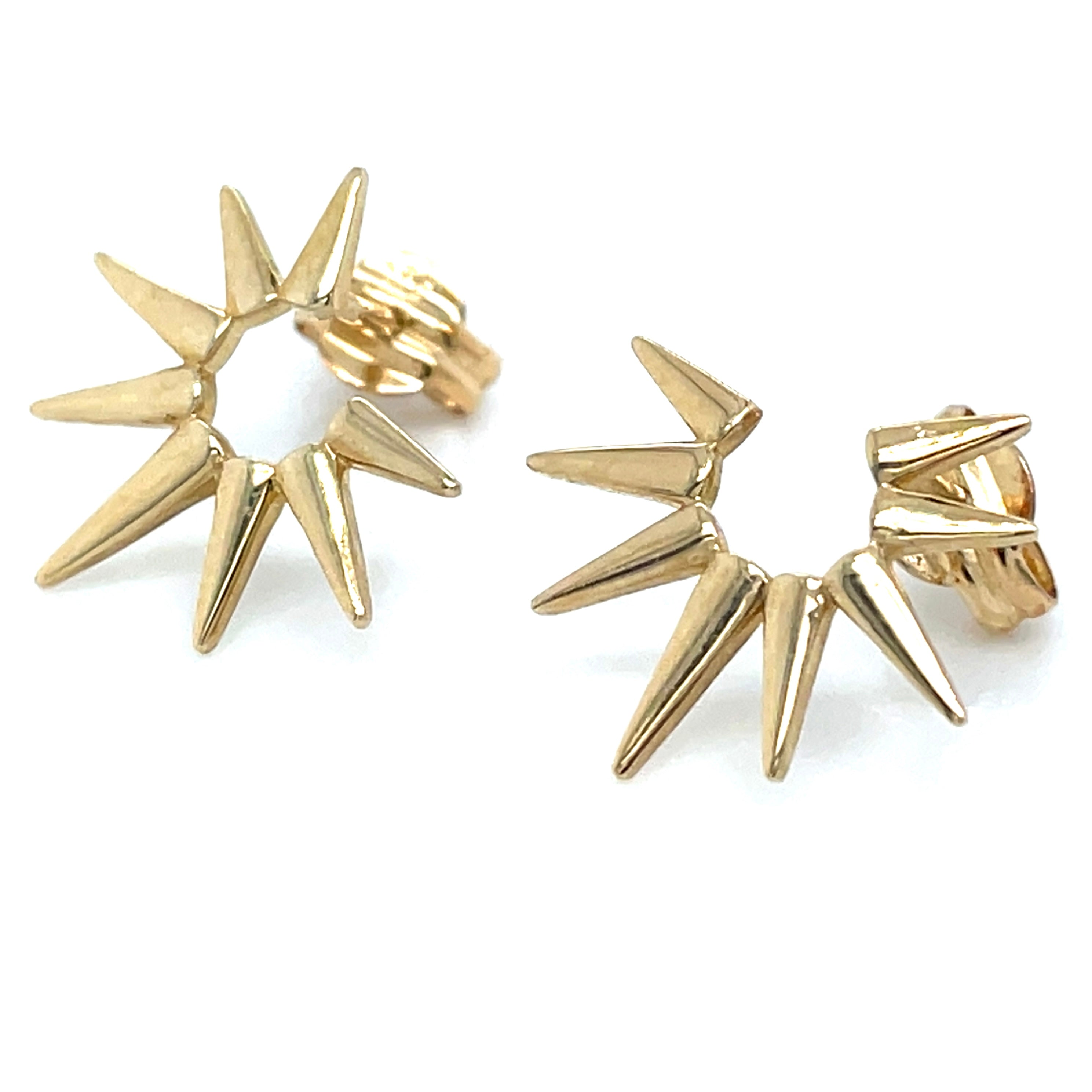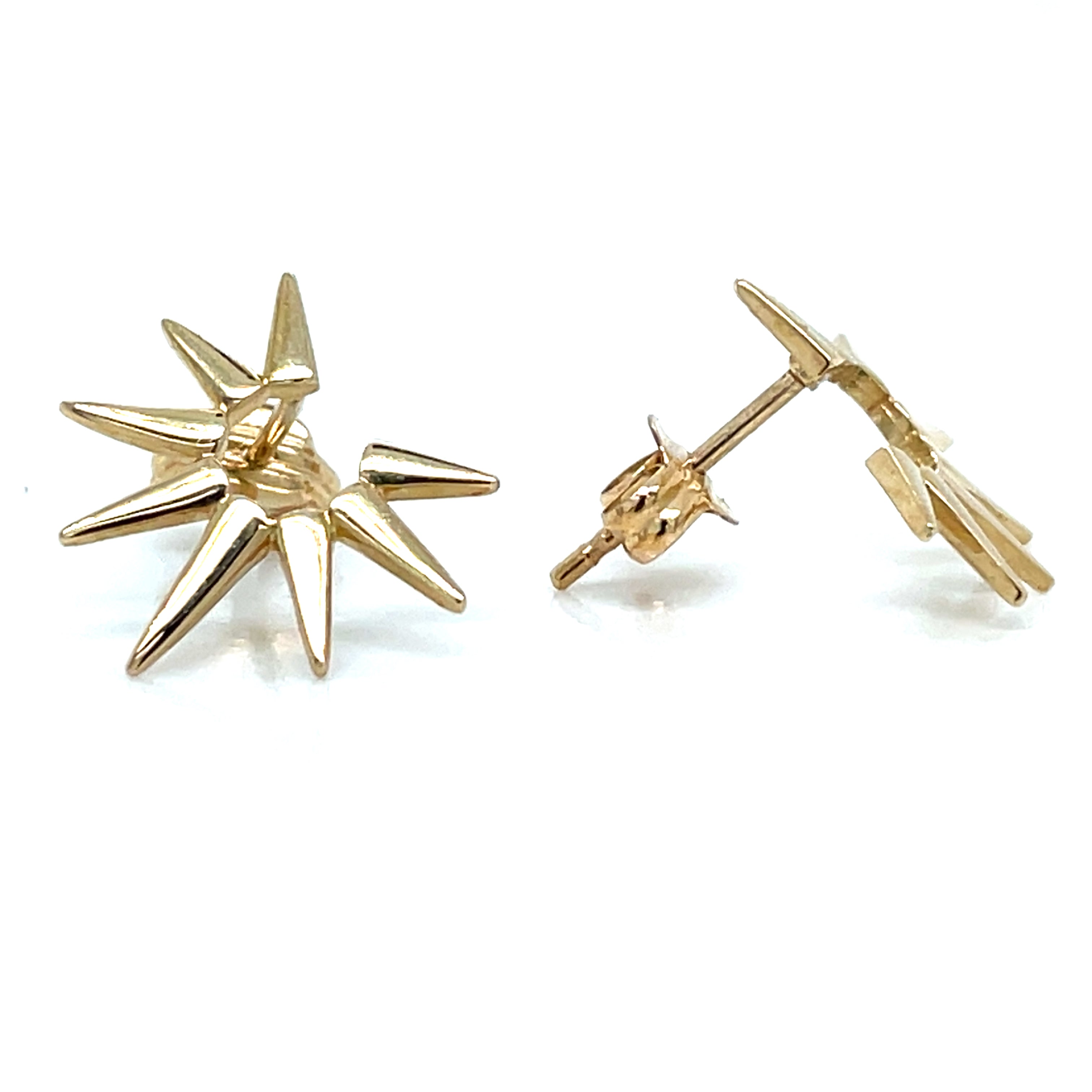 Radiant sun-inspired studs crafted in 9ct yellow gold, featuring delicate beam detailing that captures light beautifully. These timeless earrings combine symbolic warmth with refined elegance, making them an ideal choice for everyday wear or special occasions. The secure stud setting ensures comfort and durability, while the precious metal guarantees lasting quality. A versatile addition to any jewellery collection that celebrates both artistry and enduring craftsmanship.
