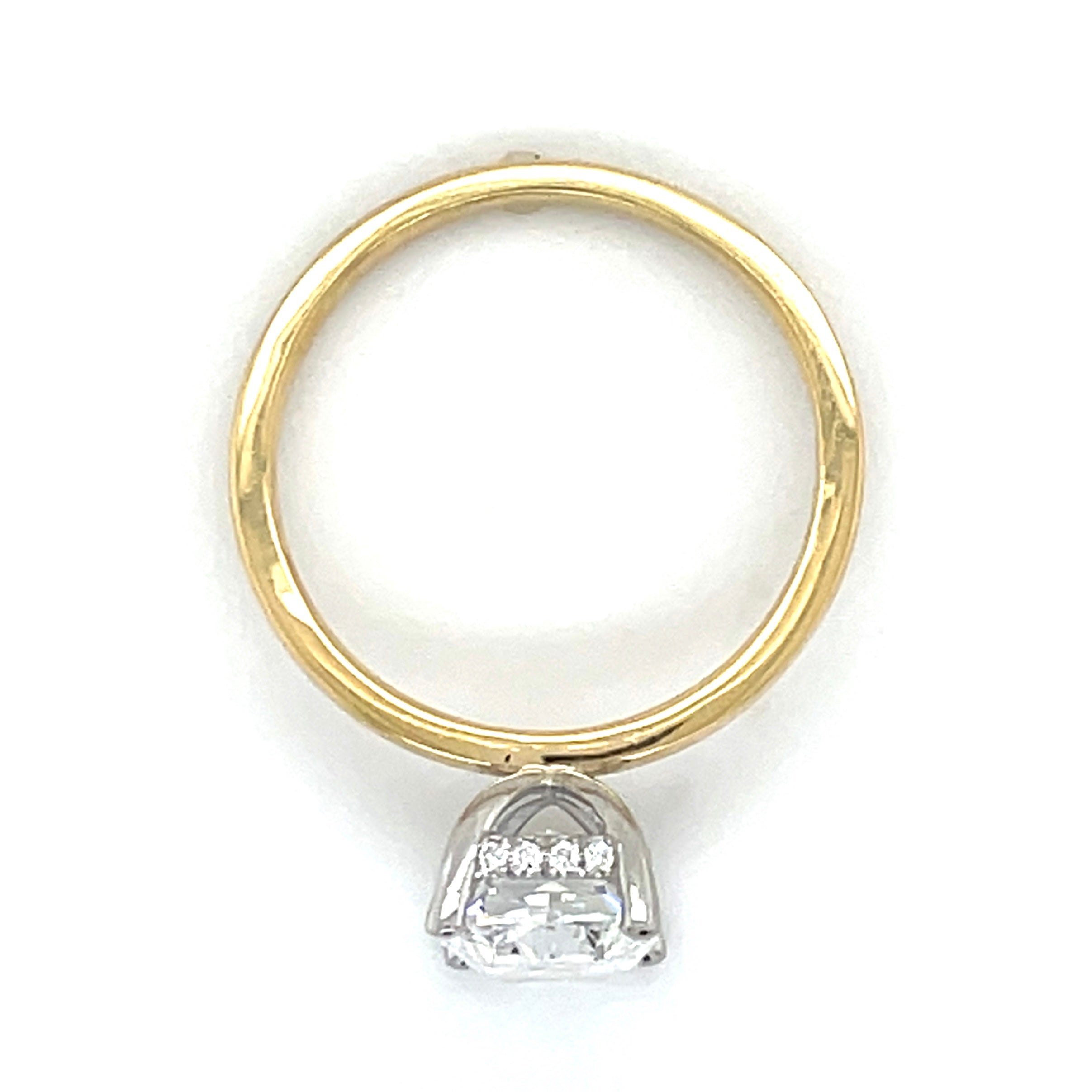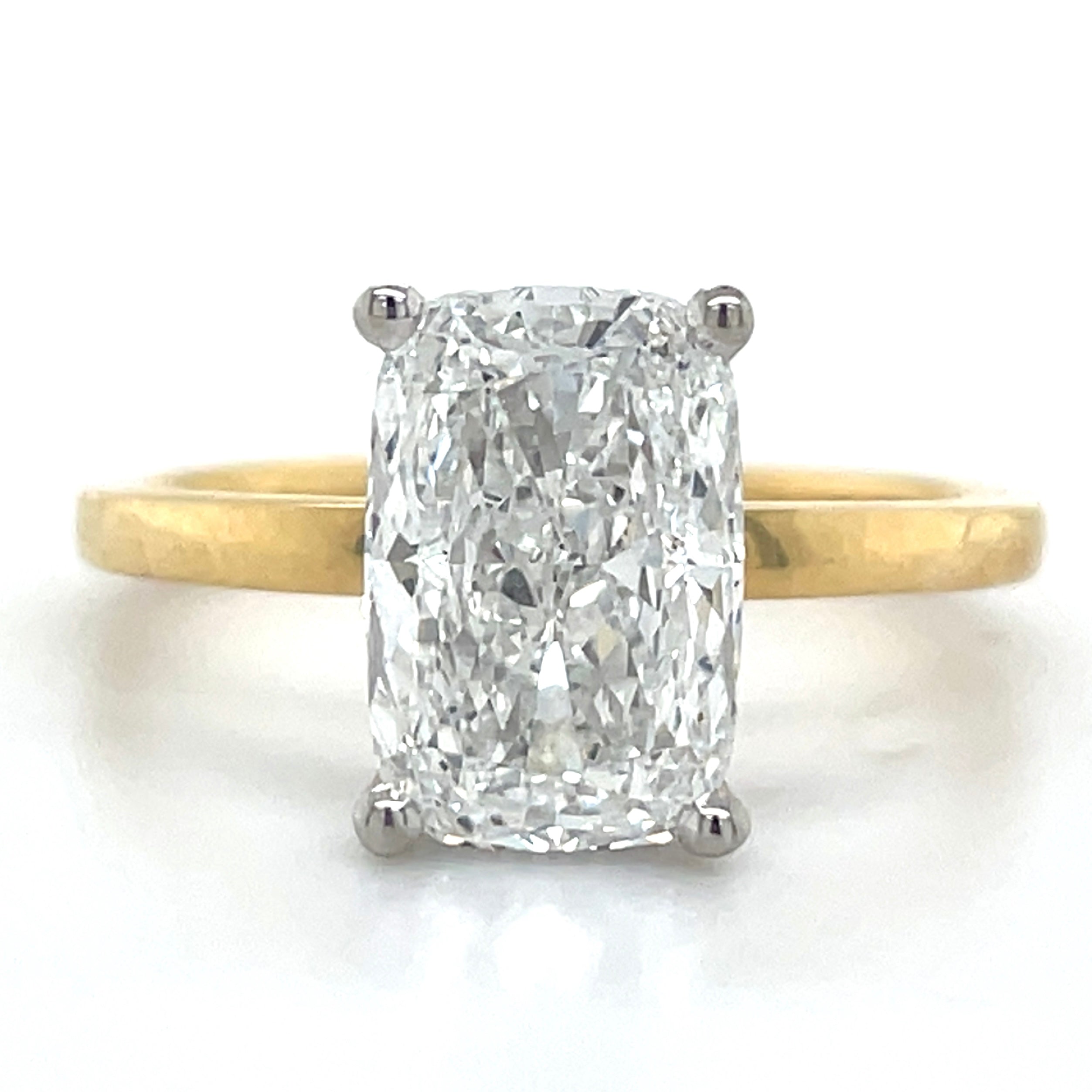 Expertly crafted with 18ct yellow gold, this Ariana engagement ring showcases a stunning 2.59ct cushion cut laboratory grown diamond set in a platinum head. The hidden halo brings the total diamond weight of this ring to 2.84ct