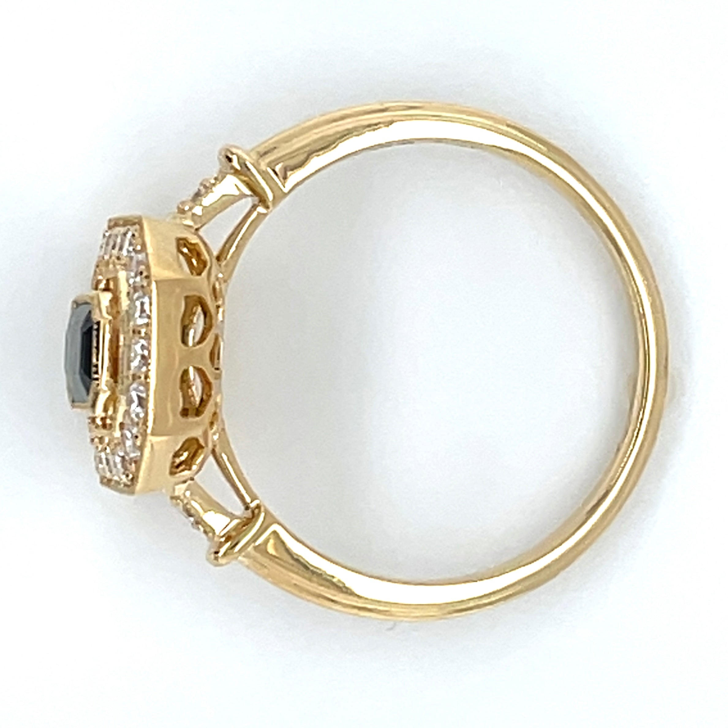 18ct Yellow Gold Emerald Cut Green Sapphire & Diamond Vintage style Ring