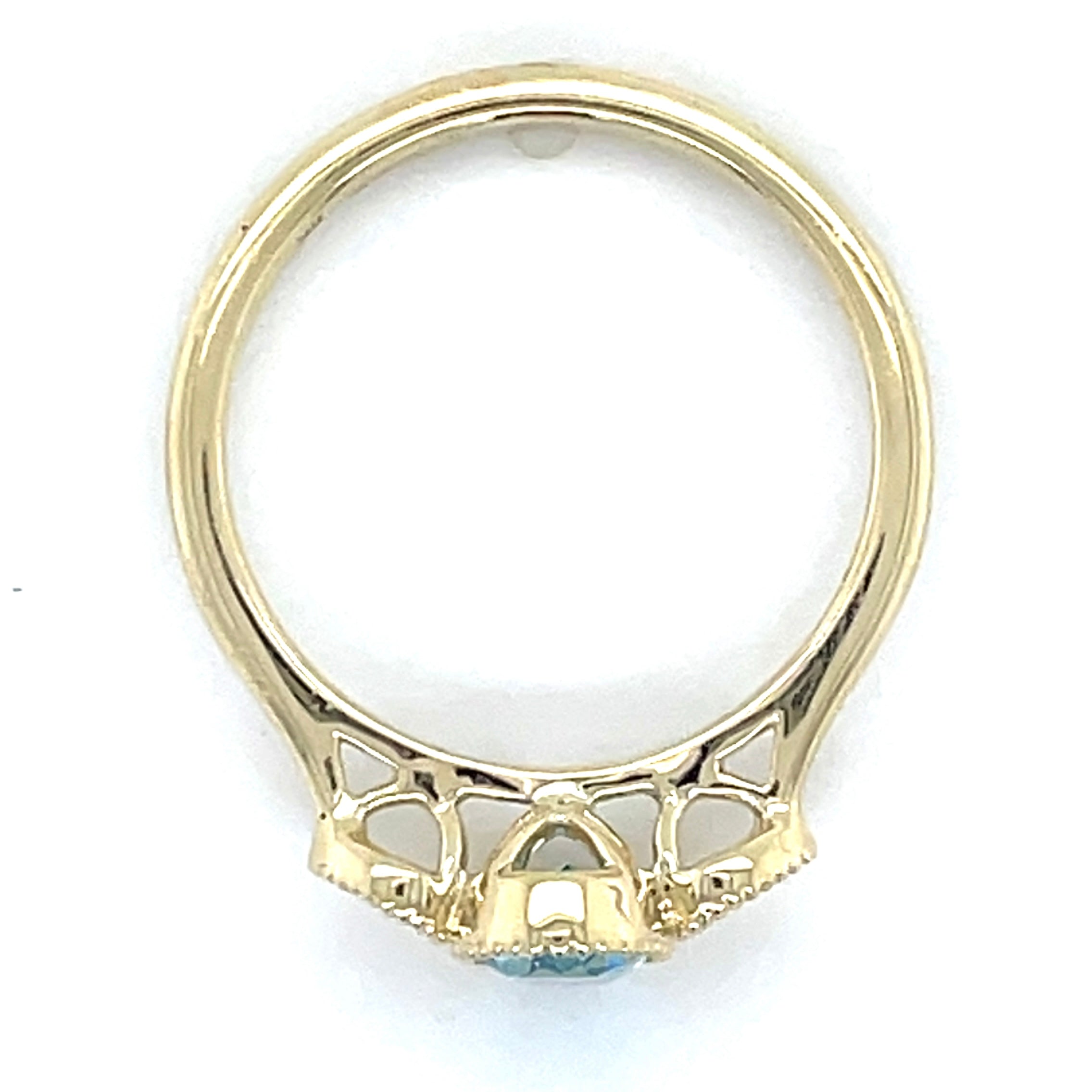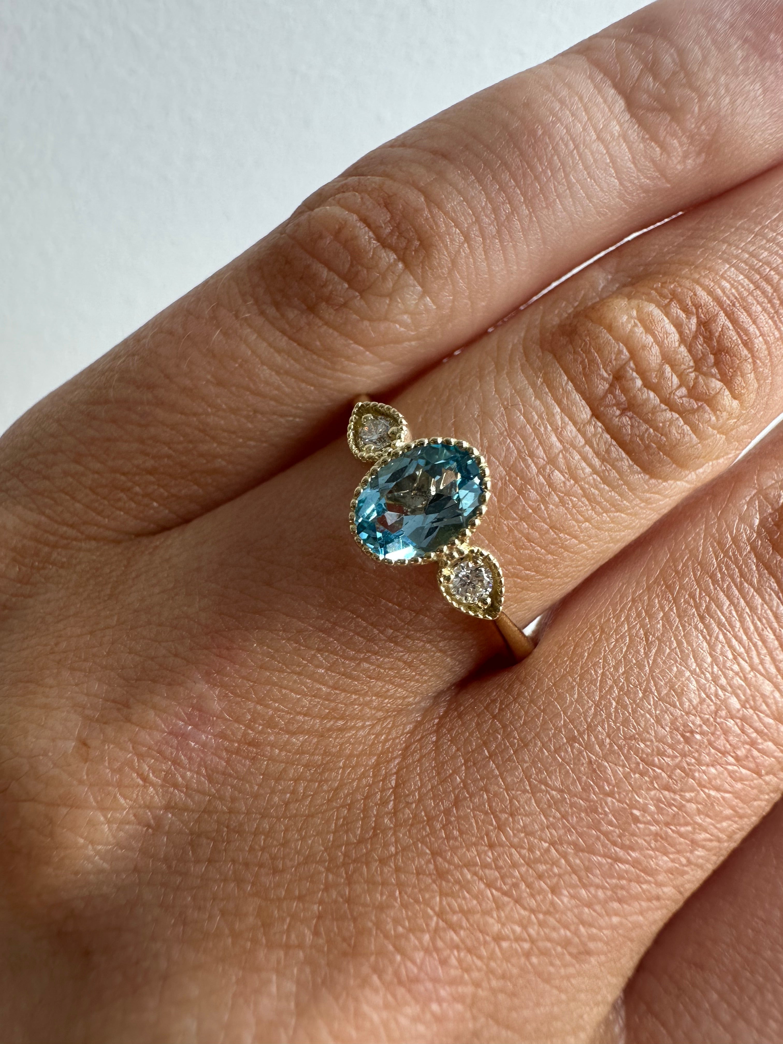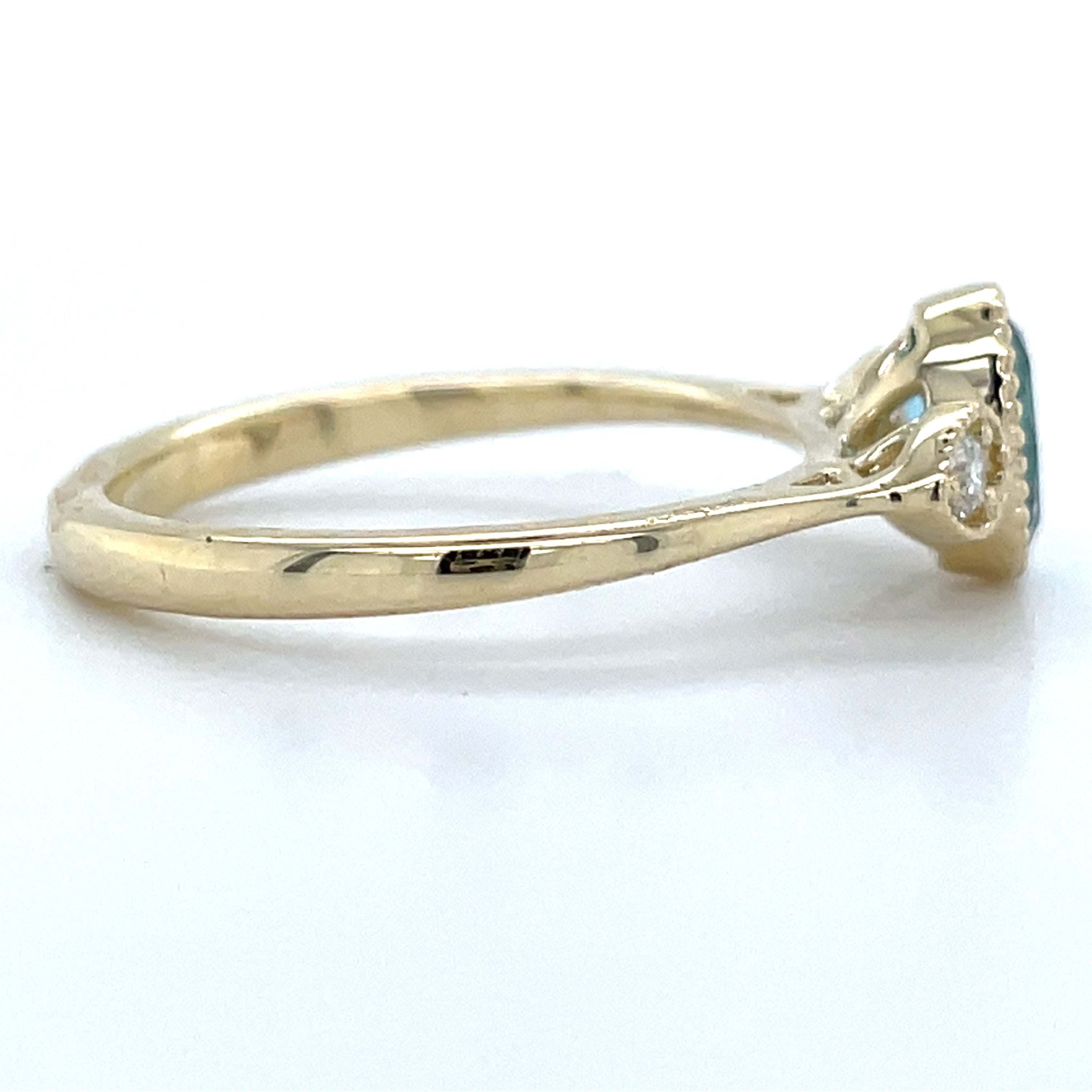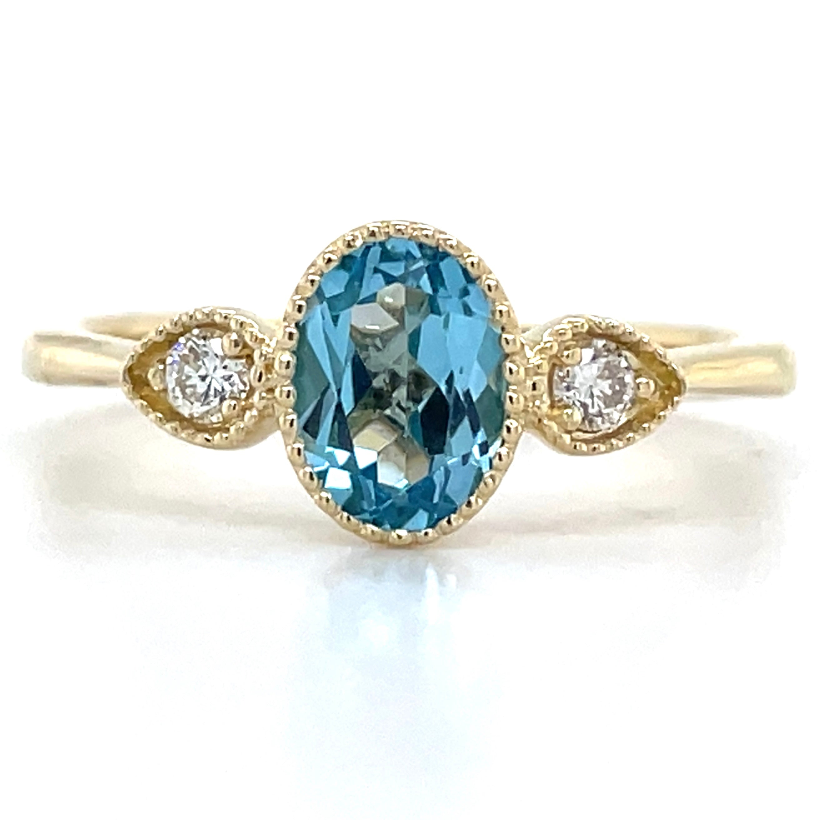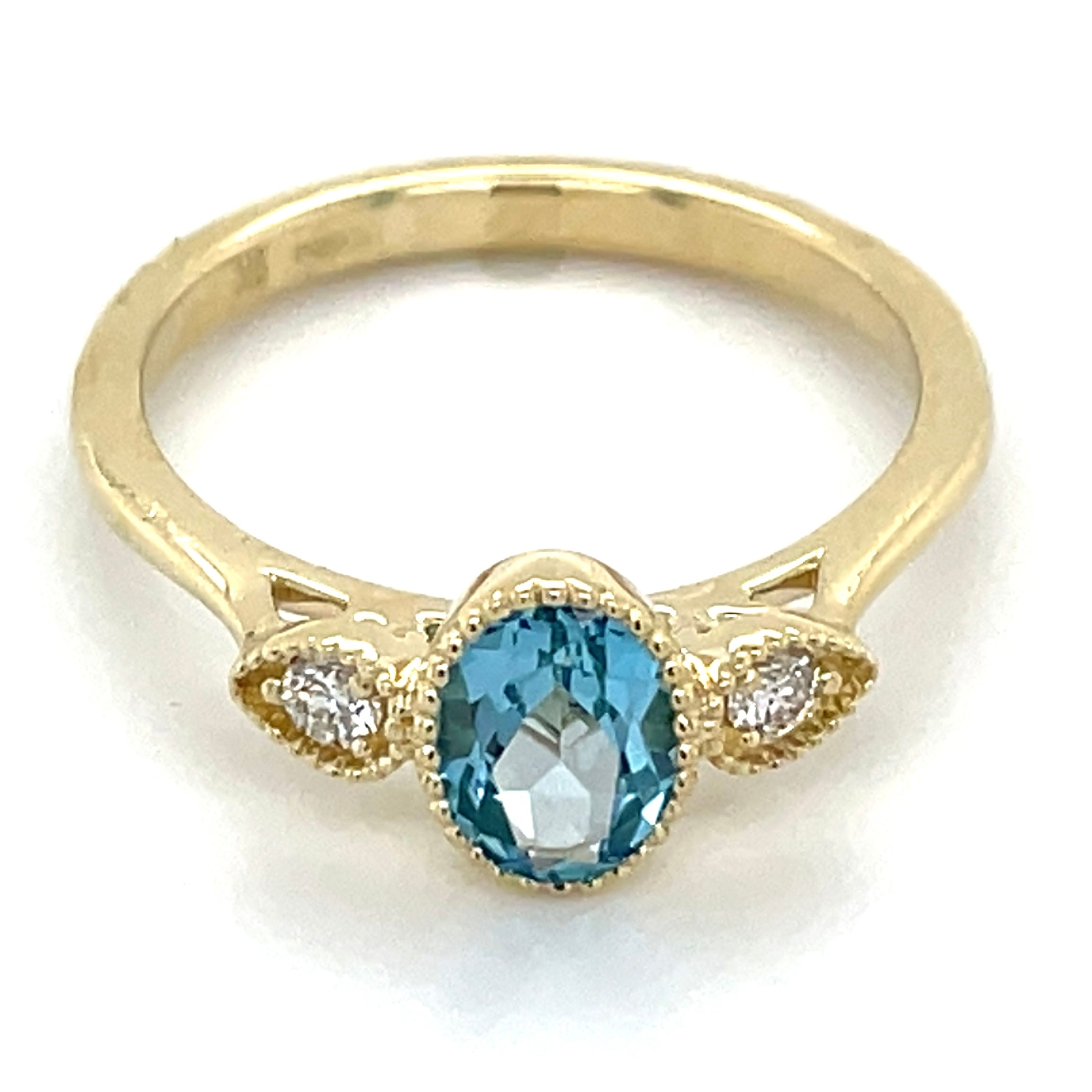 9ct Yellow Gold Milgrain Edge Earth Grown 0.80ct Blue Topaz & 0.10ct Diamond Ring
