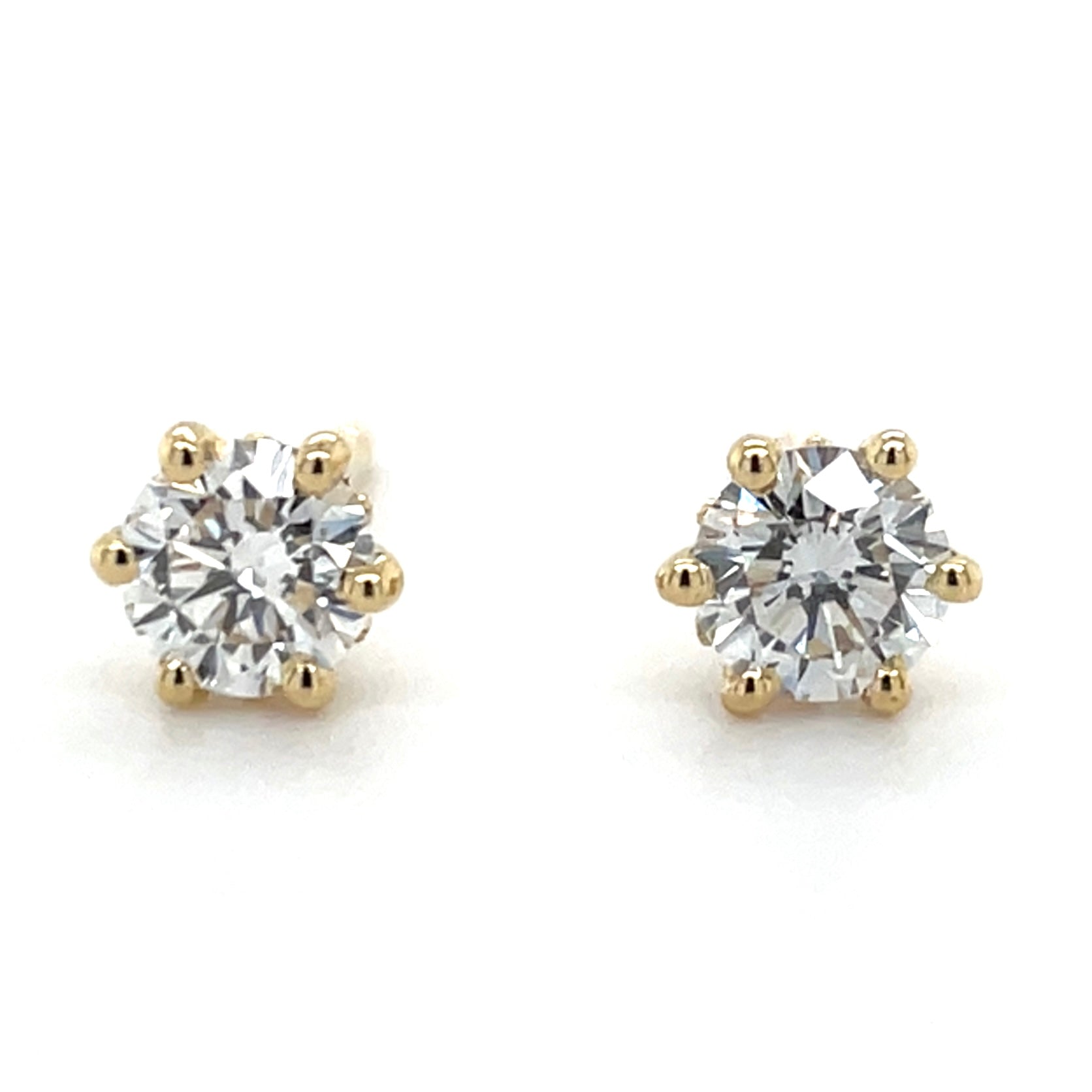 14ct Yellow Gold 0.75ct Laboratory Grown Round 6 Claw Stud Earrings