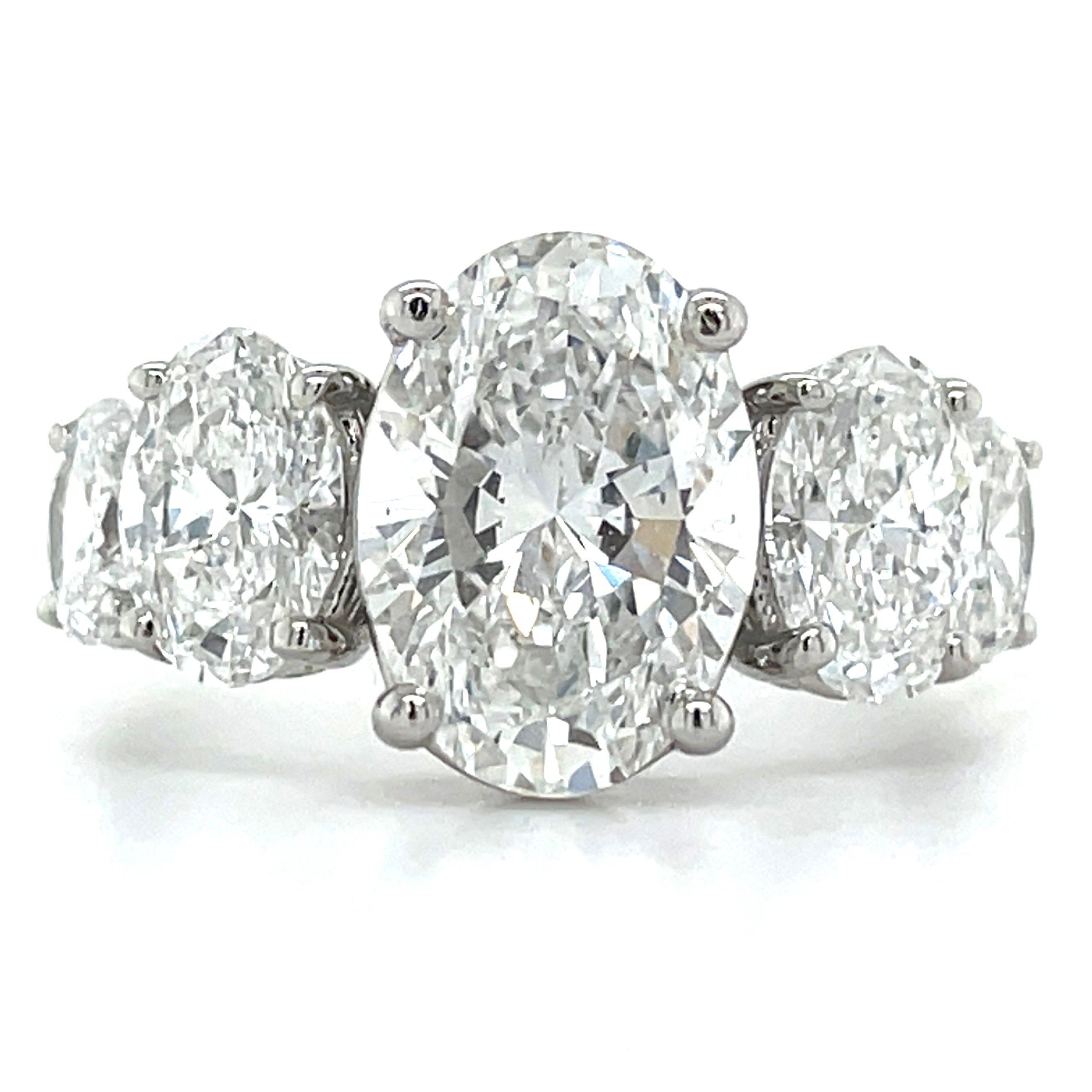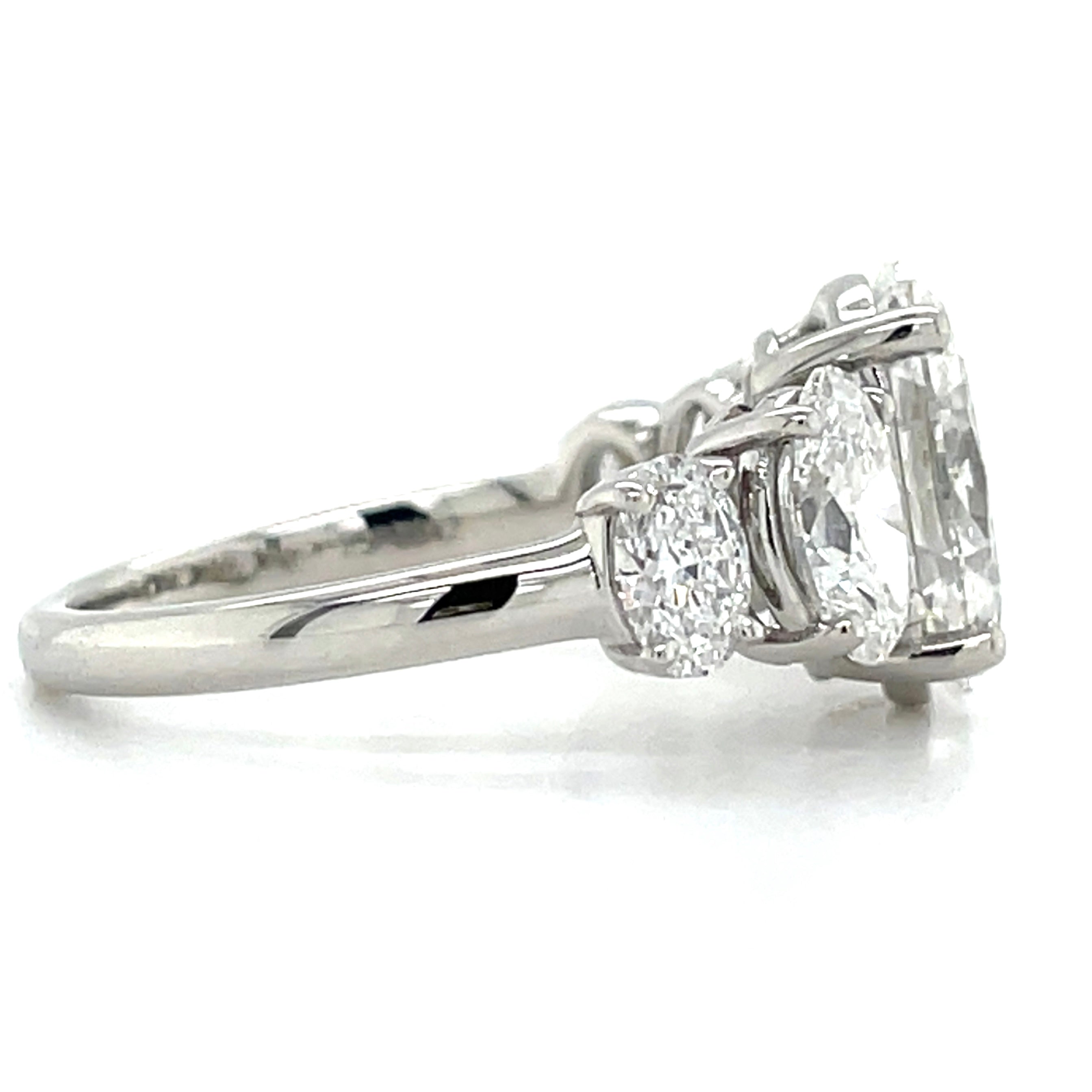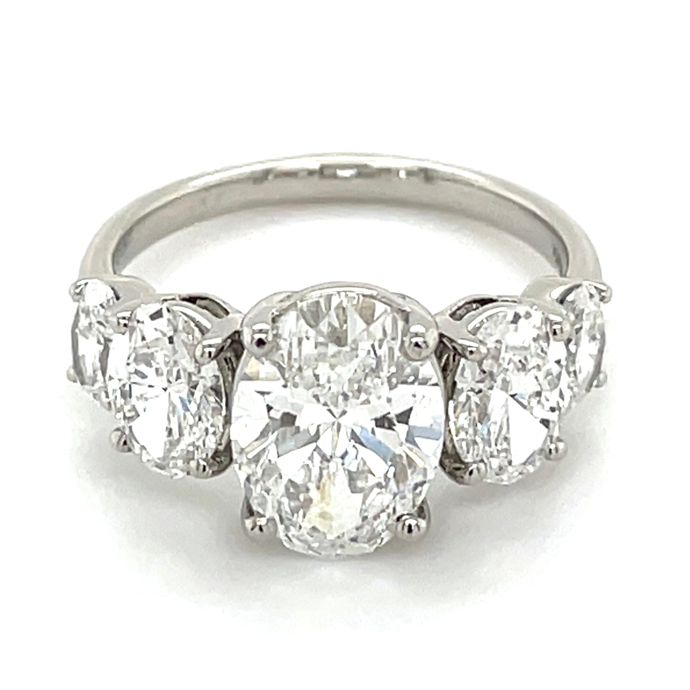Experience the beauty of our Madeline Platinum Oval Laboratory Grown Diamond Five Stone Ring. Consisting of stunning oval cut diamonds, this ring boasts a secure setting in platinum claws. With a 2.01ct IGI certified center diamond and a total diamond weight of 3.64ct, this ring is a perfect blend of elegance and quality.