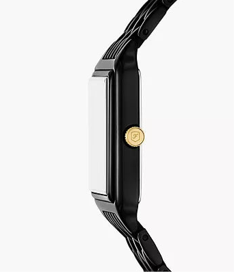 Discover timeless elegance with the Fossil Raquel Three-Hand Date Black Stainless Steel Watch. Its iconic rectangular design is updated with stunning details and a slim, versatile silhouette. Featuring a polished black dial and a seven-link bracelet, it's the perfect combination of style and function.