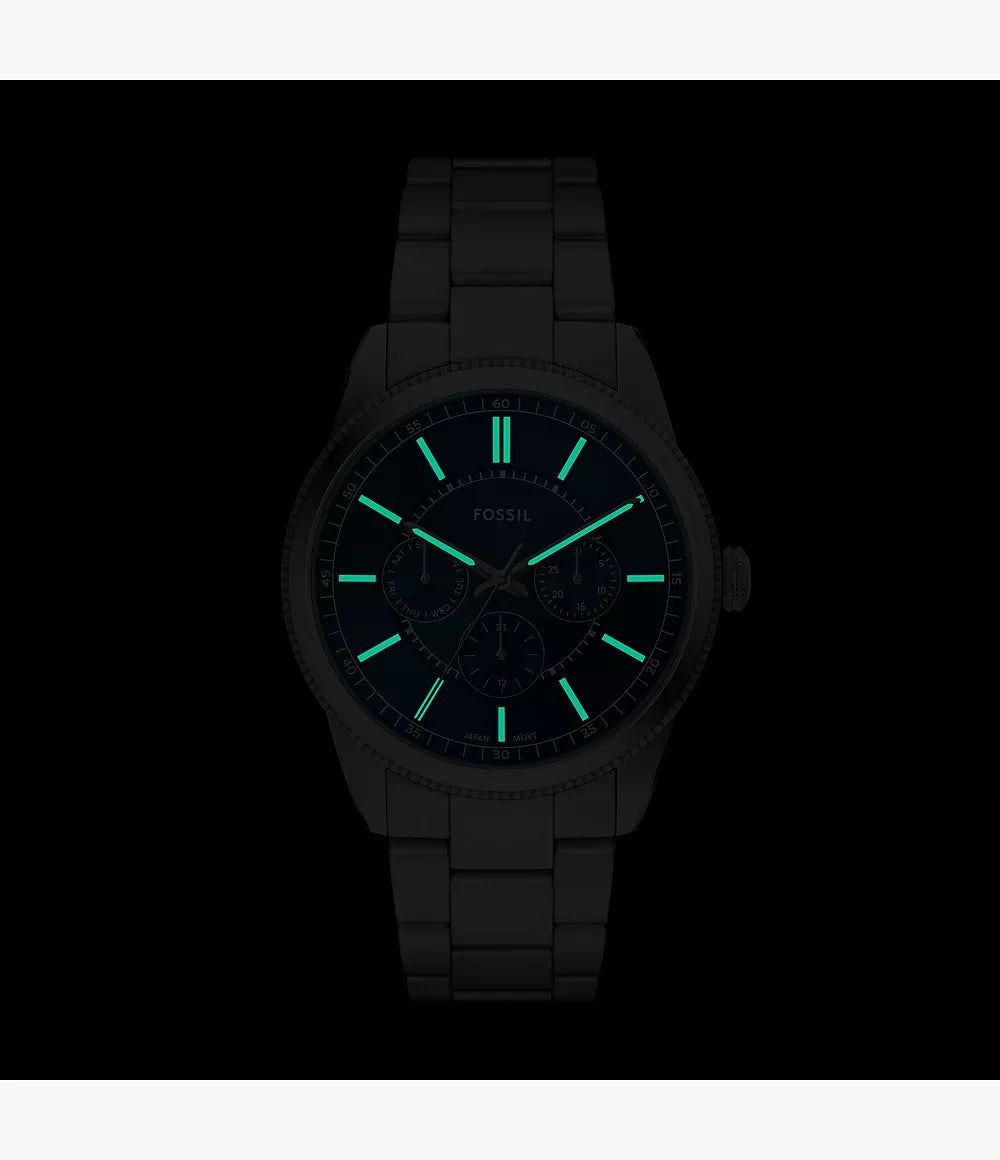 A stainless steel bracelet and matching case create a sleek foundation for this watch's design. The blue sunray dial adds texture and depth, complemented by practical sub-dials for day, date, and 24-hour functionality. Thoughtfully constructed with polished materials and a versatile round case, this piece balances refined details with everyday practicality.
