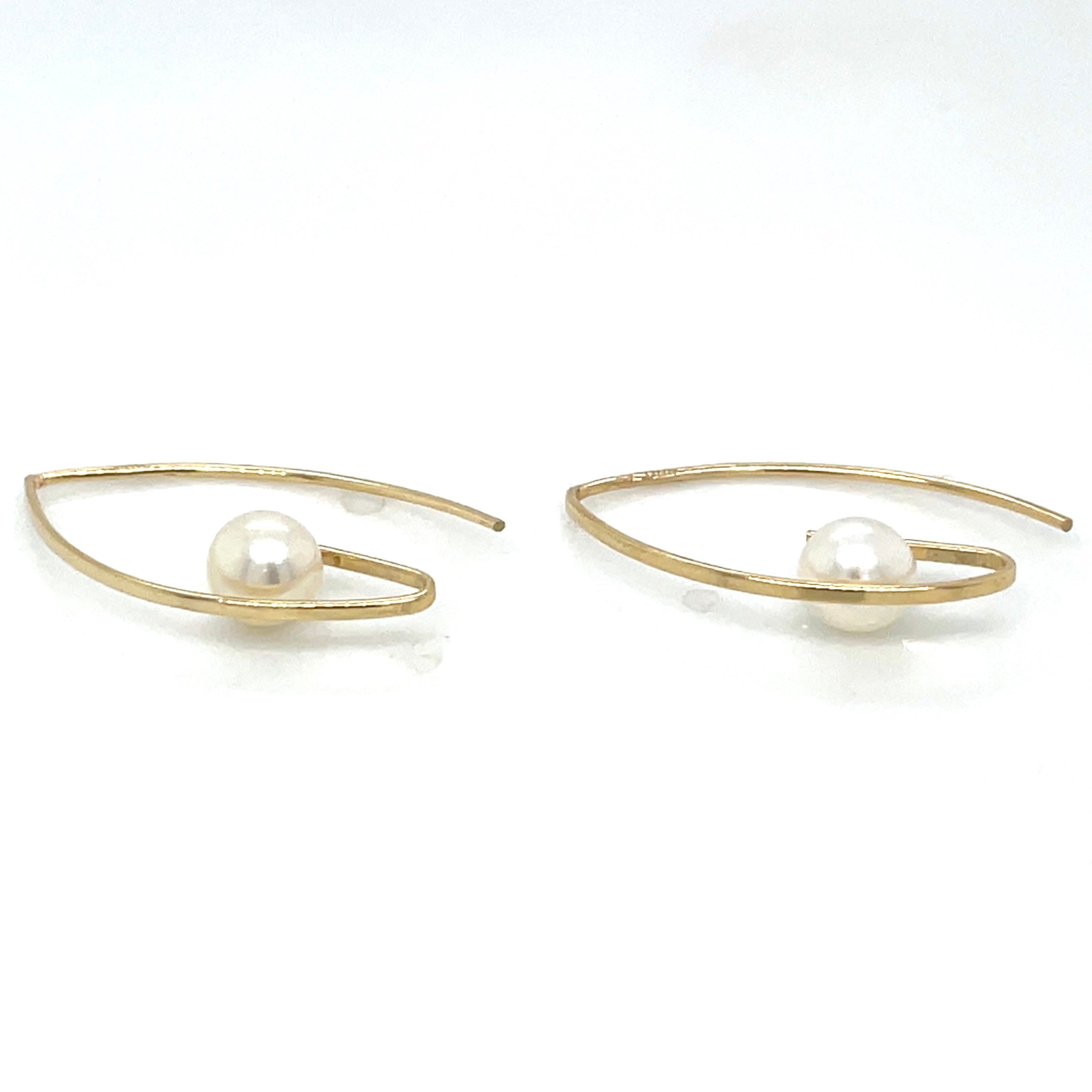 Crafted in 9ct yellow gold, these elegant hoop earrings feature a curved design and lustrous pearl accents. The perfect blend of sophistication and style, these earrings add a touch of luxury to any outfit. Elevate your look with these unique and timeless earrings.