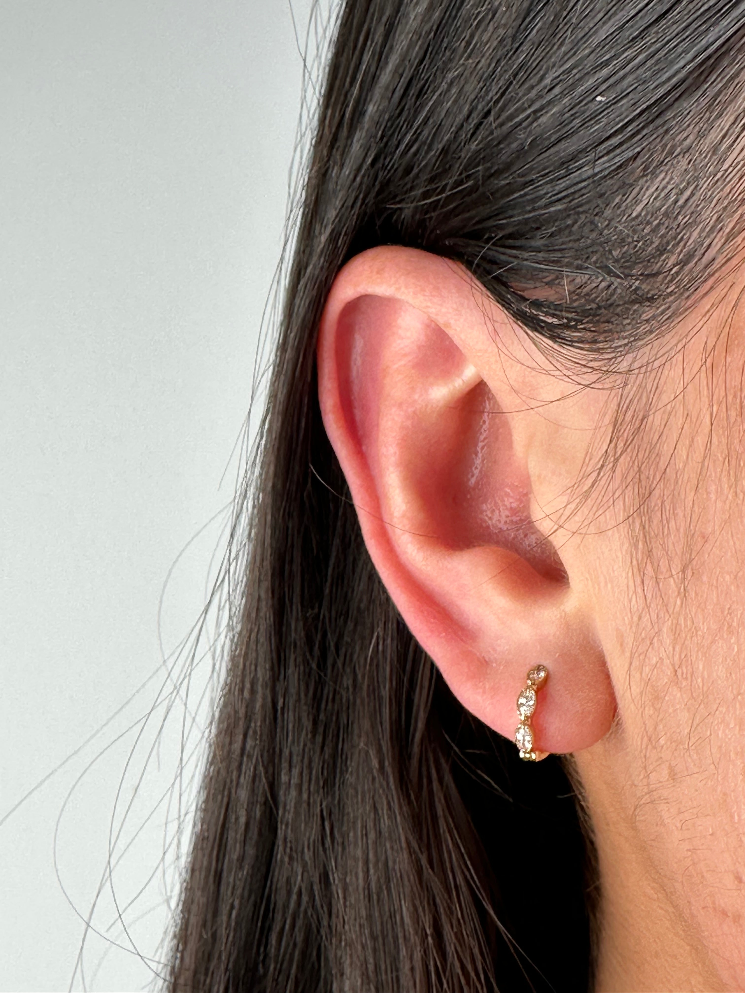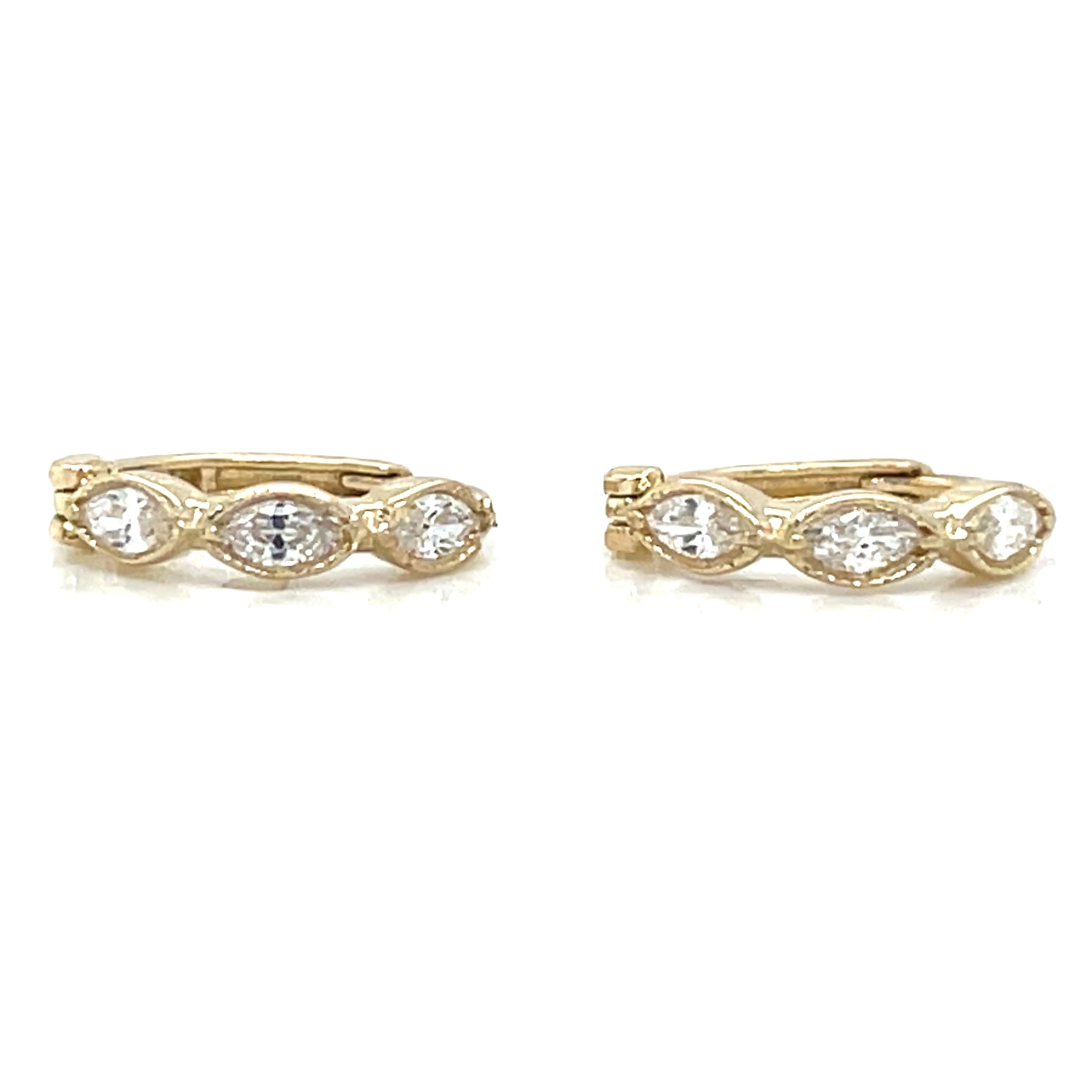 Expertly crafted in 9ct yellow gold, these hoop earrings are the perfect blend of elegance and modernity. The milgrain design adds a touch of sophistication to the classic hoop style, while the marquise cz adds a subtle sparkle. Elevate any outfit with these stylish and versatile earrings.