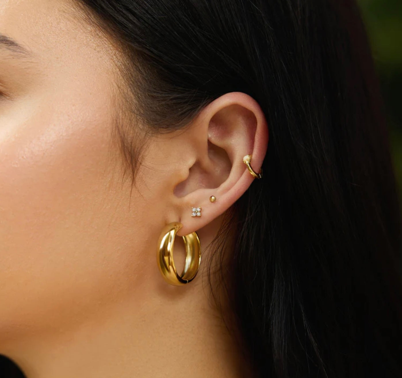 The chubby large huggie hoop earrings are a versatile addition to any jewellery collection. Perfect for both everyday wear and special occasions, they can be easily mixed and matched with other studs, hoops, and huggies for a personalised look.
