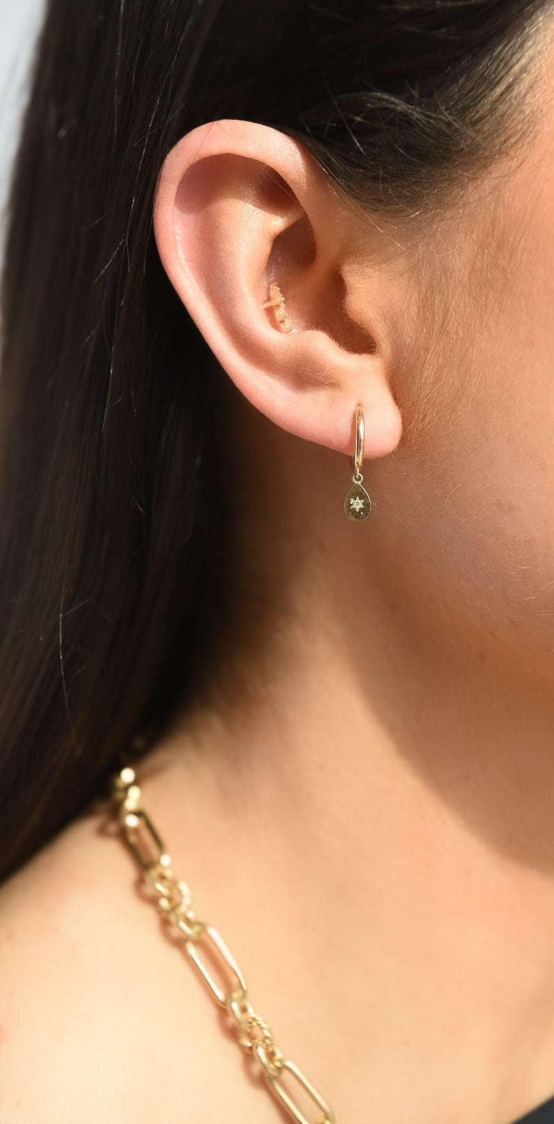 9ct Yellow Gold Hoops With Star Set Cz Drop