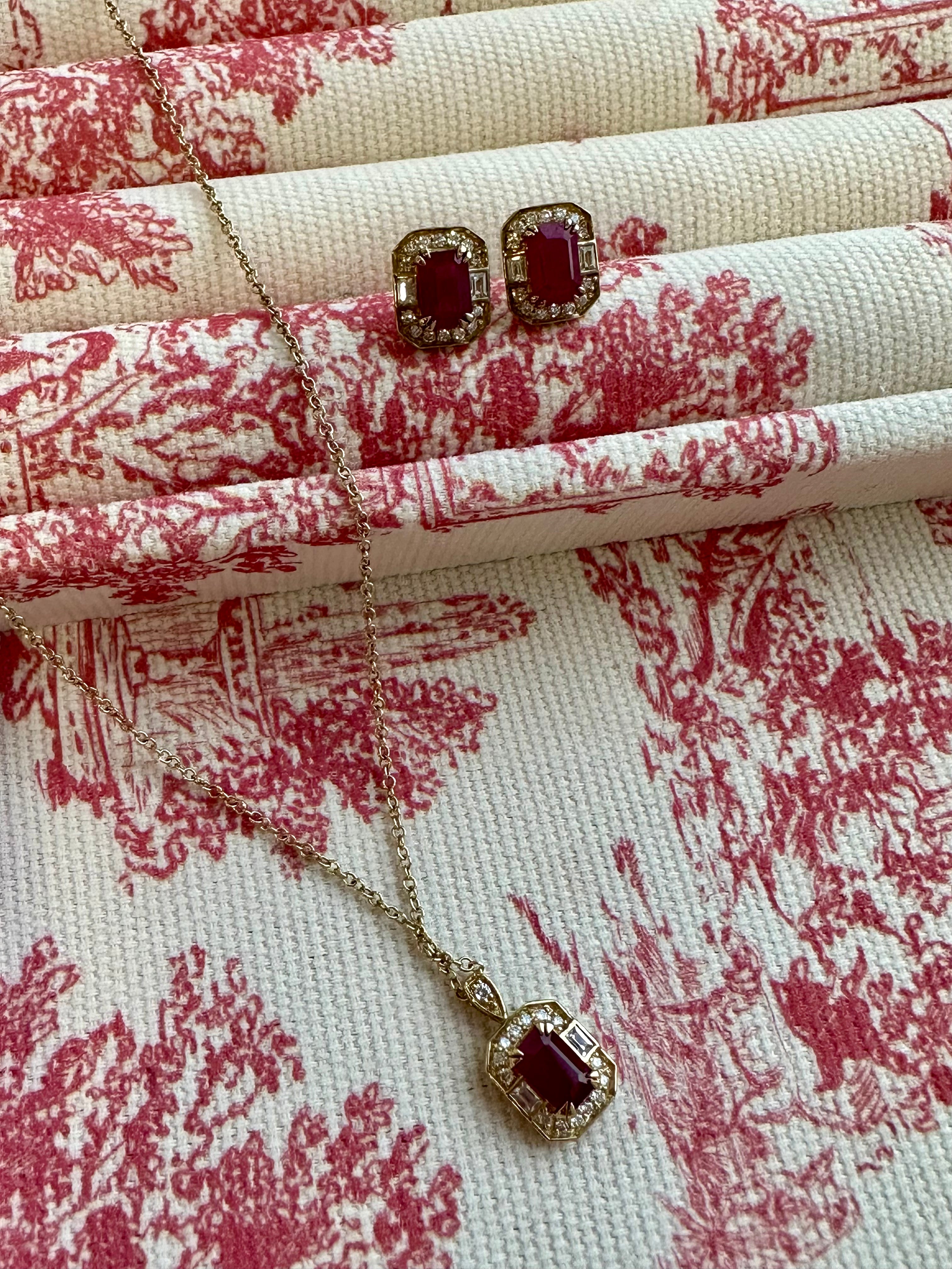 9ct Yellow Gold Earth Grown Ruby, White Sapphire & Diamond Pendant & Earring Bundle