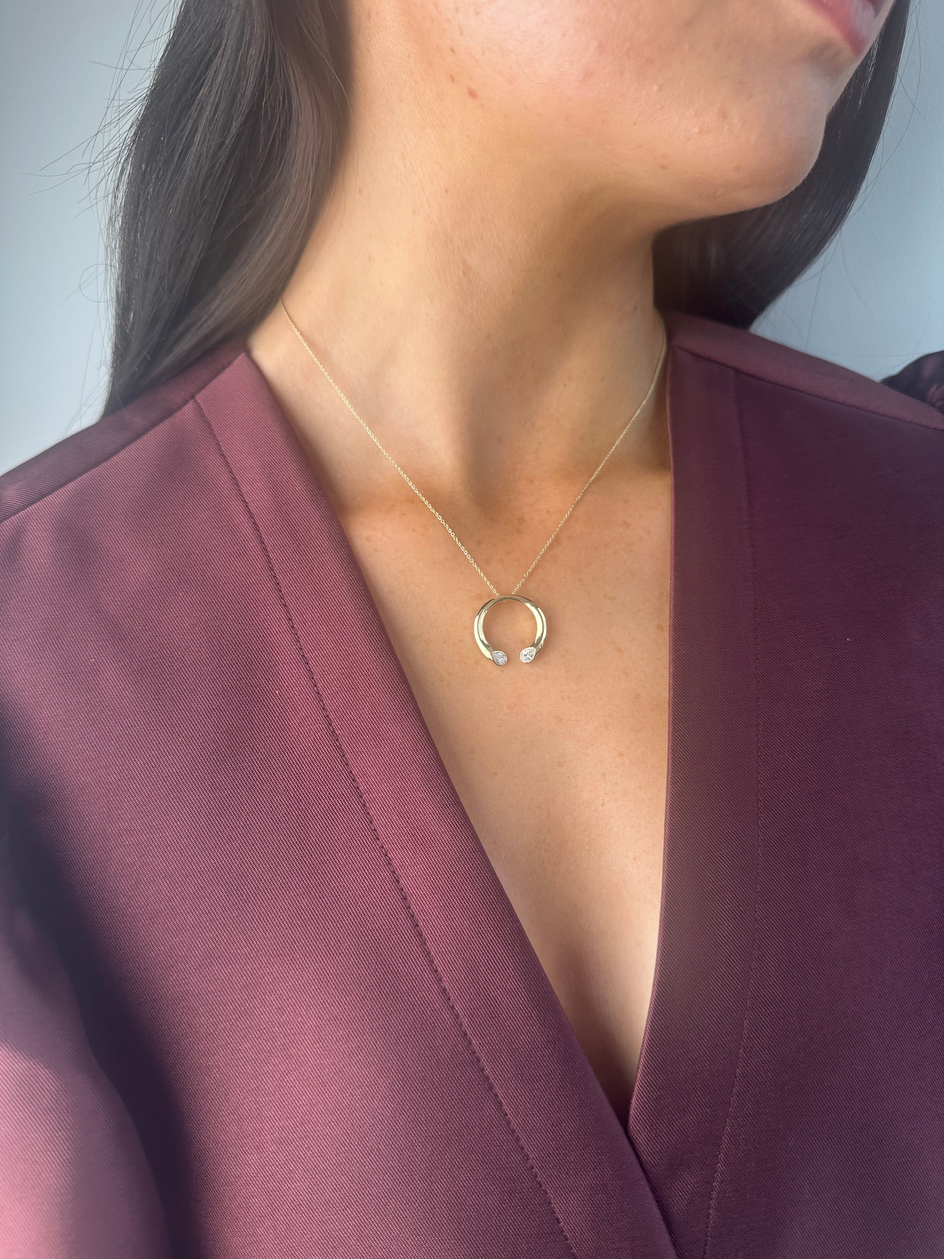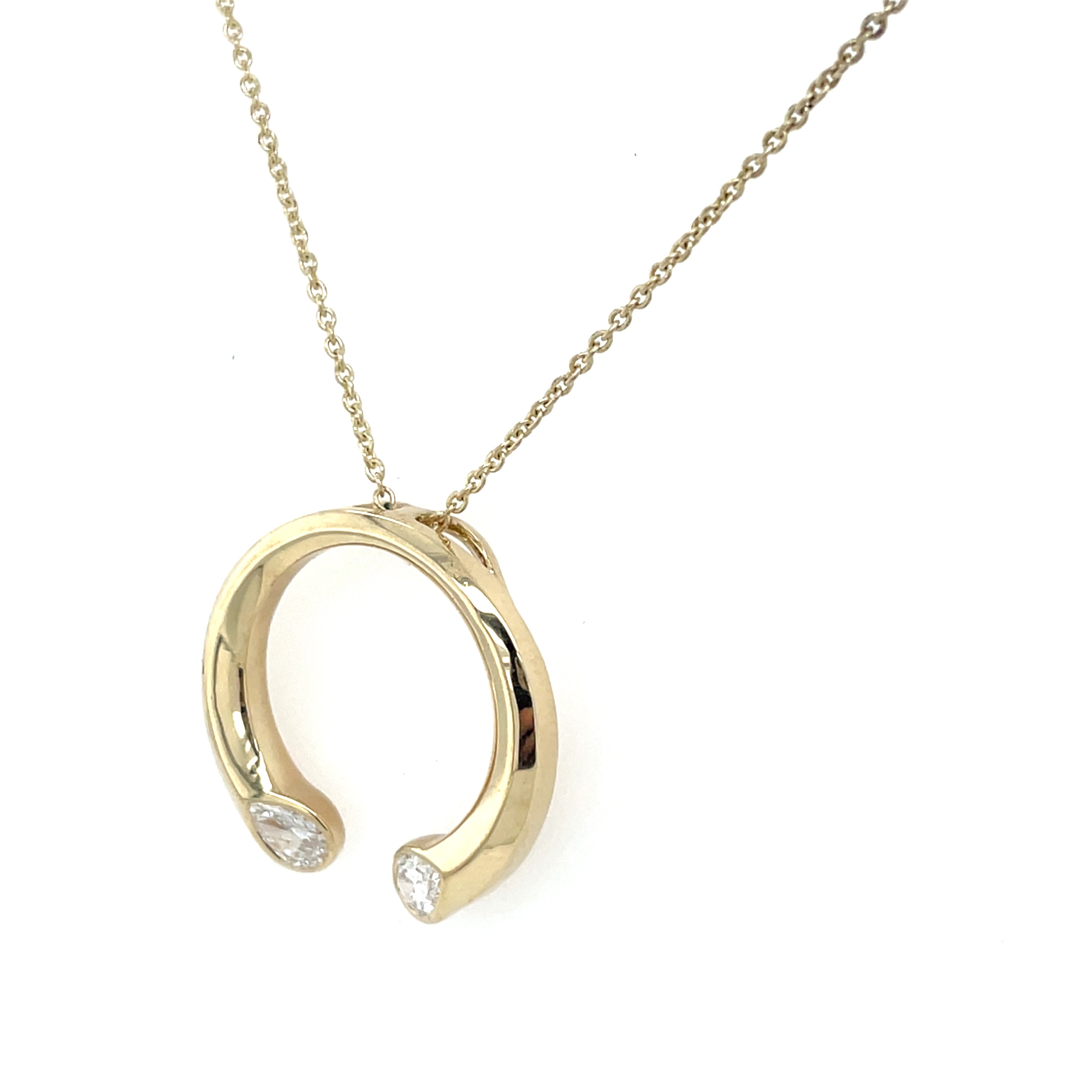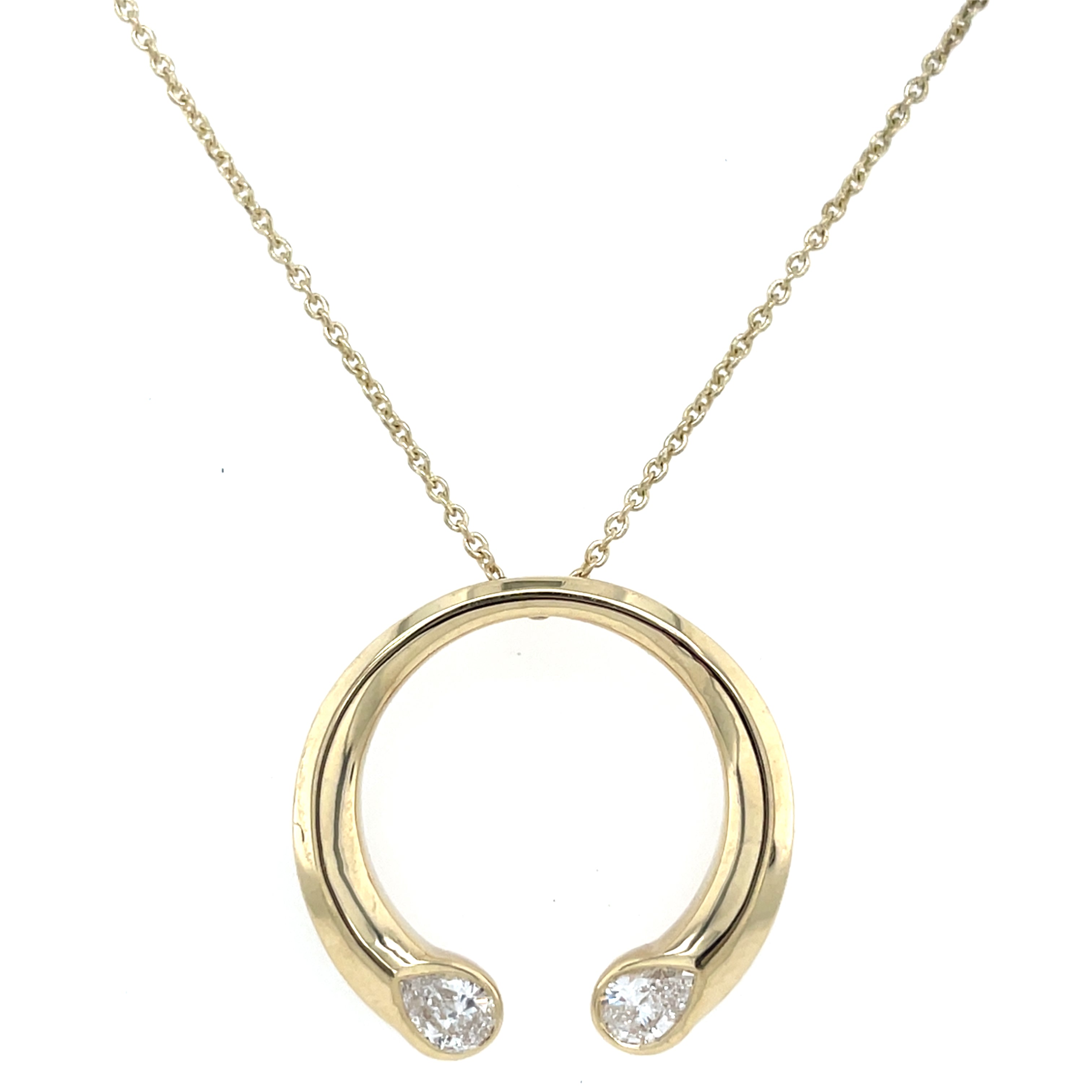 "Expertly crafted with 9ct yellow gold, this stunning necklace features two bezel set Pear laboratory grown diamonds totaling 0.33ct. Enjoy the unique wishbone design and the brilliance and durability of lab-grown diamonds."