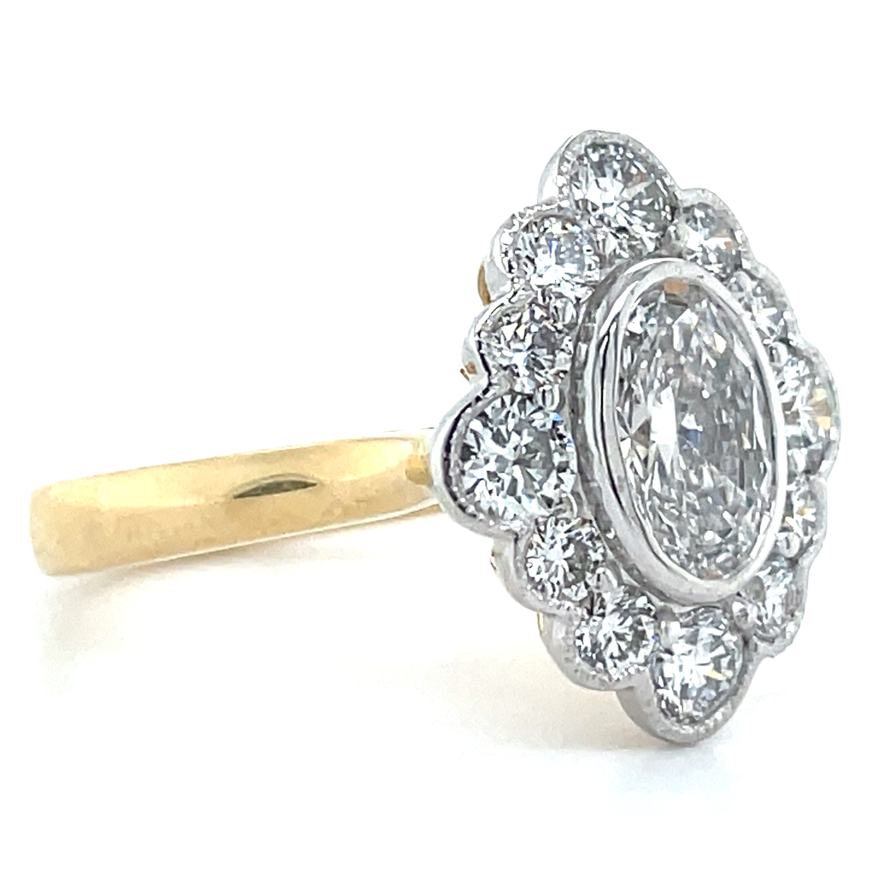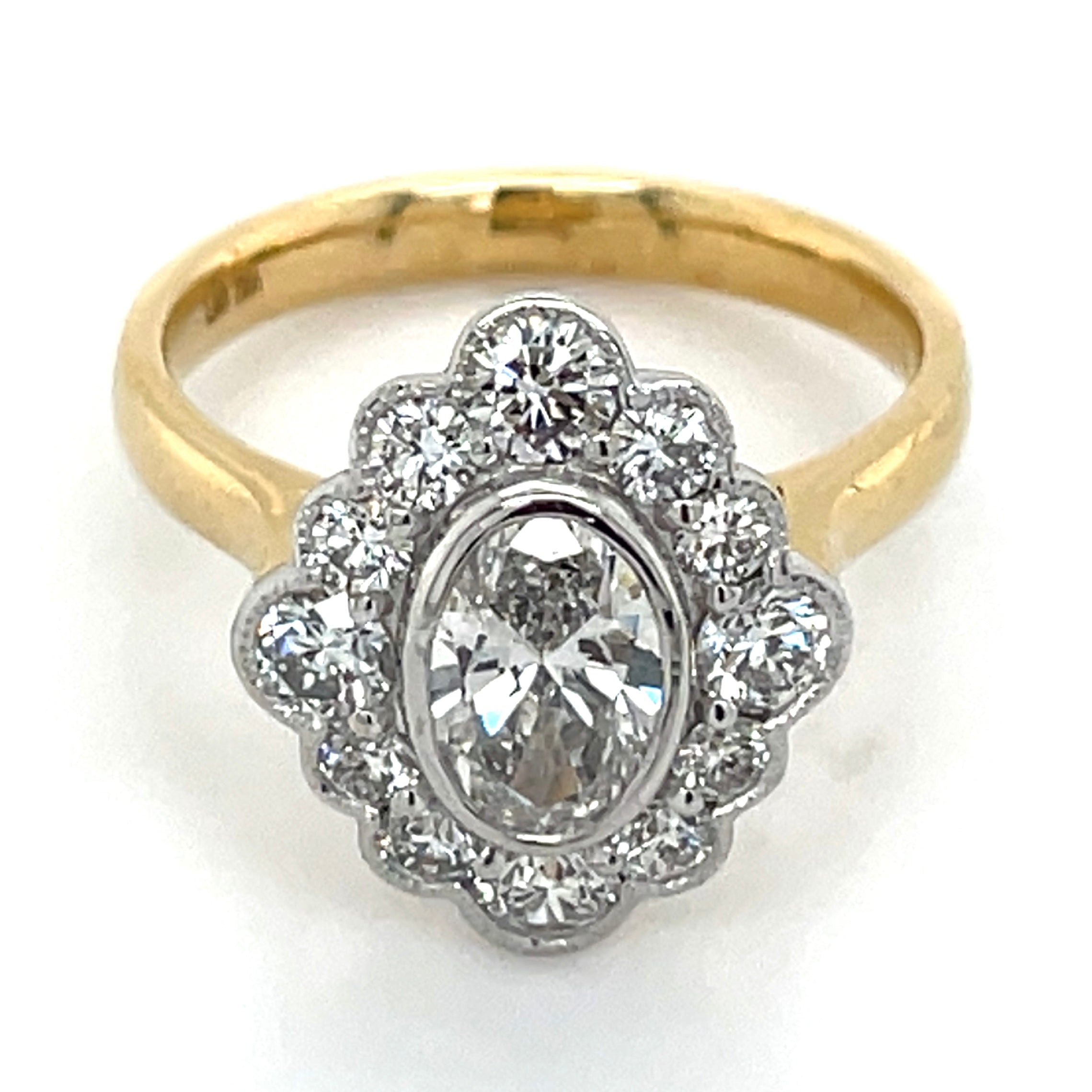 Elevate your style with the luxurious Lenore halo ring. Crafted from 18ct yellow gold, the central 1.01ct oval diamond is surrounded by a halo of sparkling round diamonds, with a total weight of 1.94ct. The platinum head ensures maximum brilliance for the diamonds. The centre stone is IGI Certified with the following: