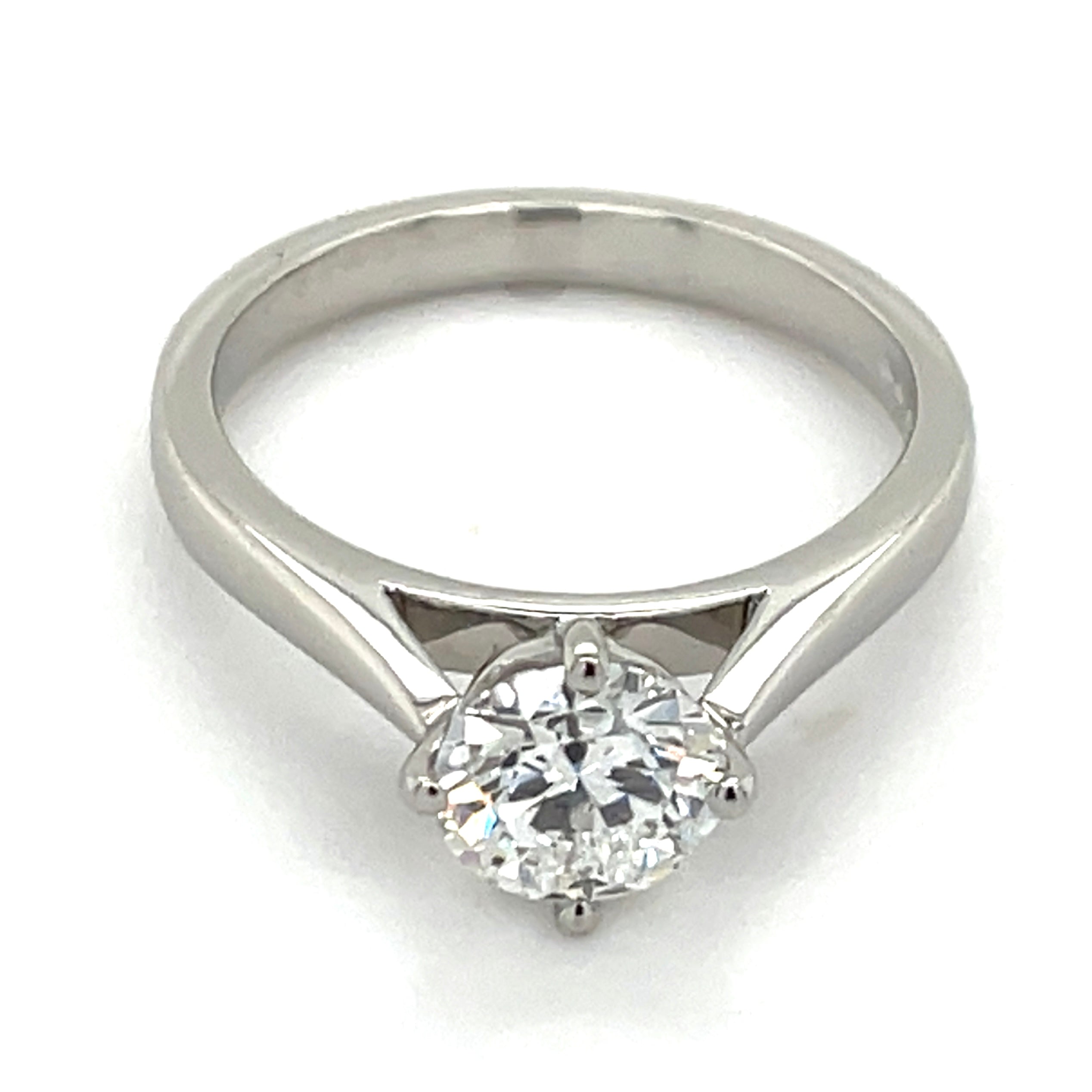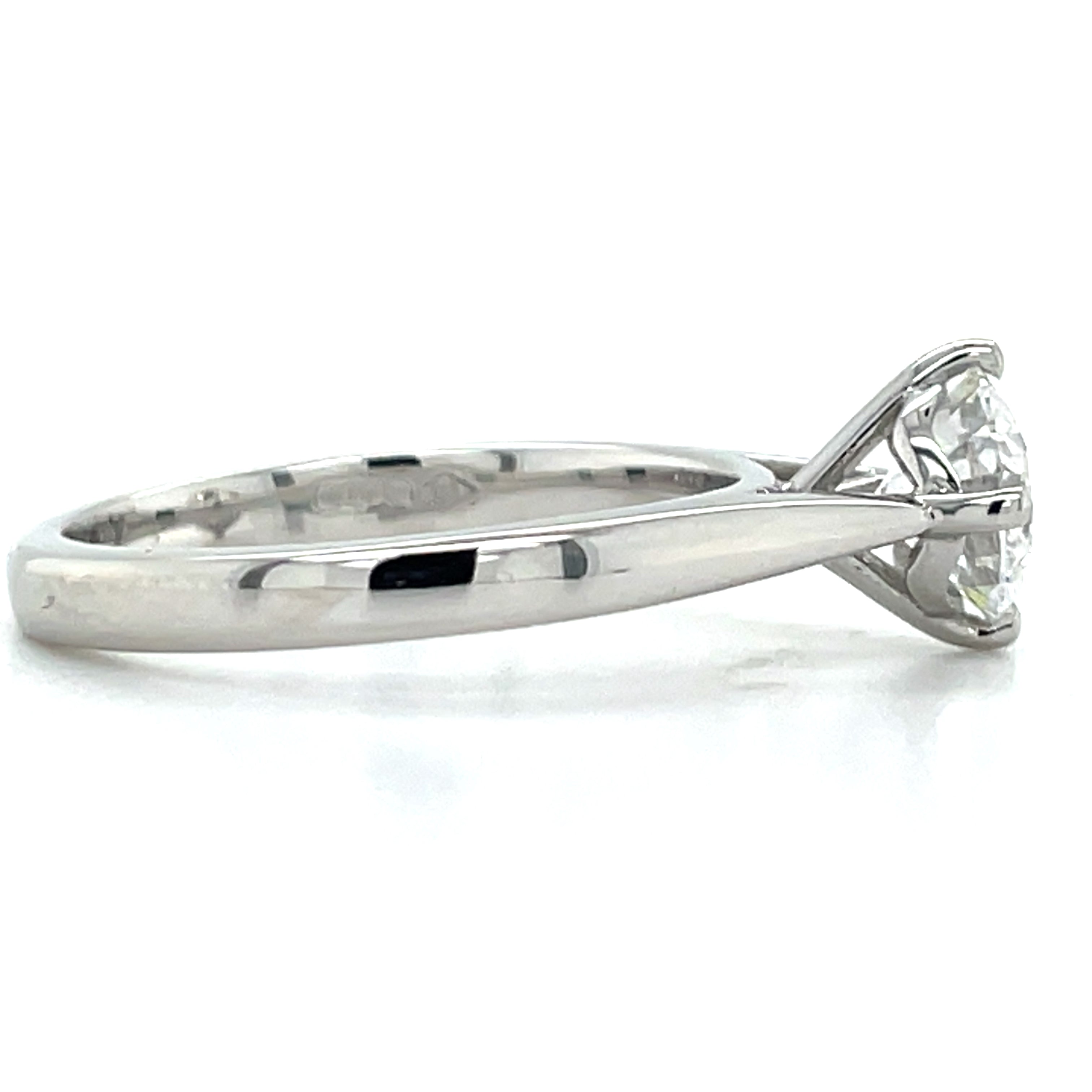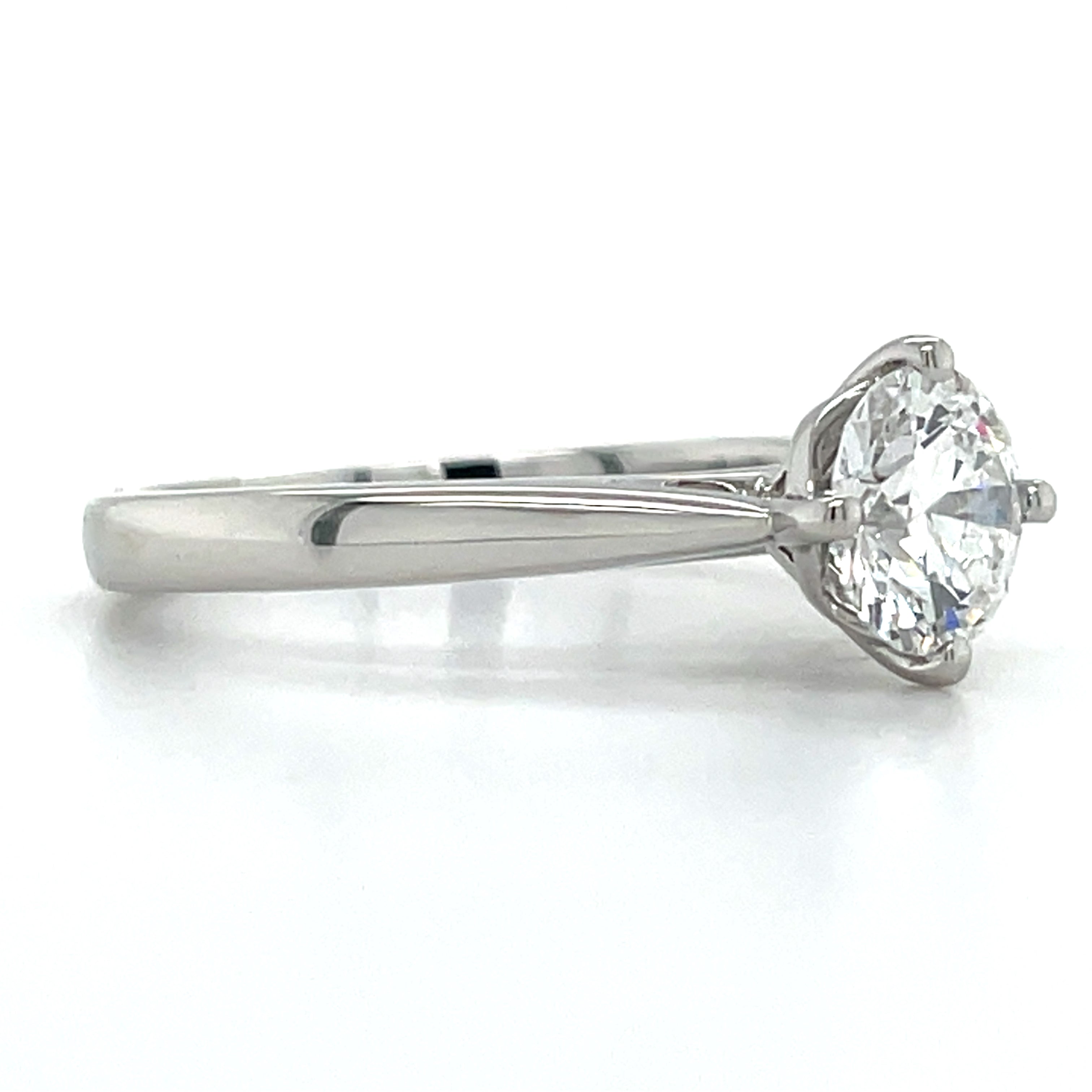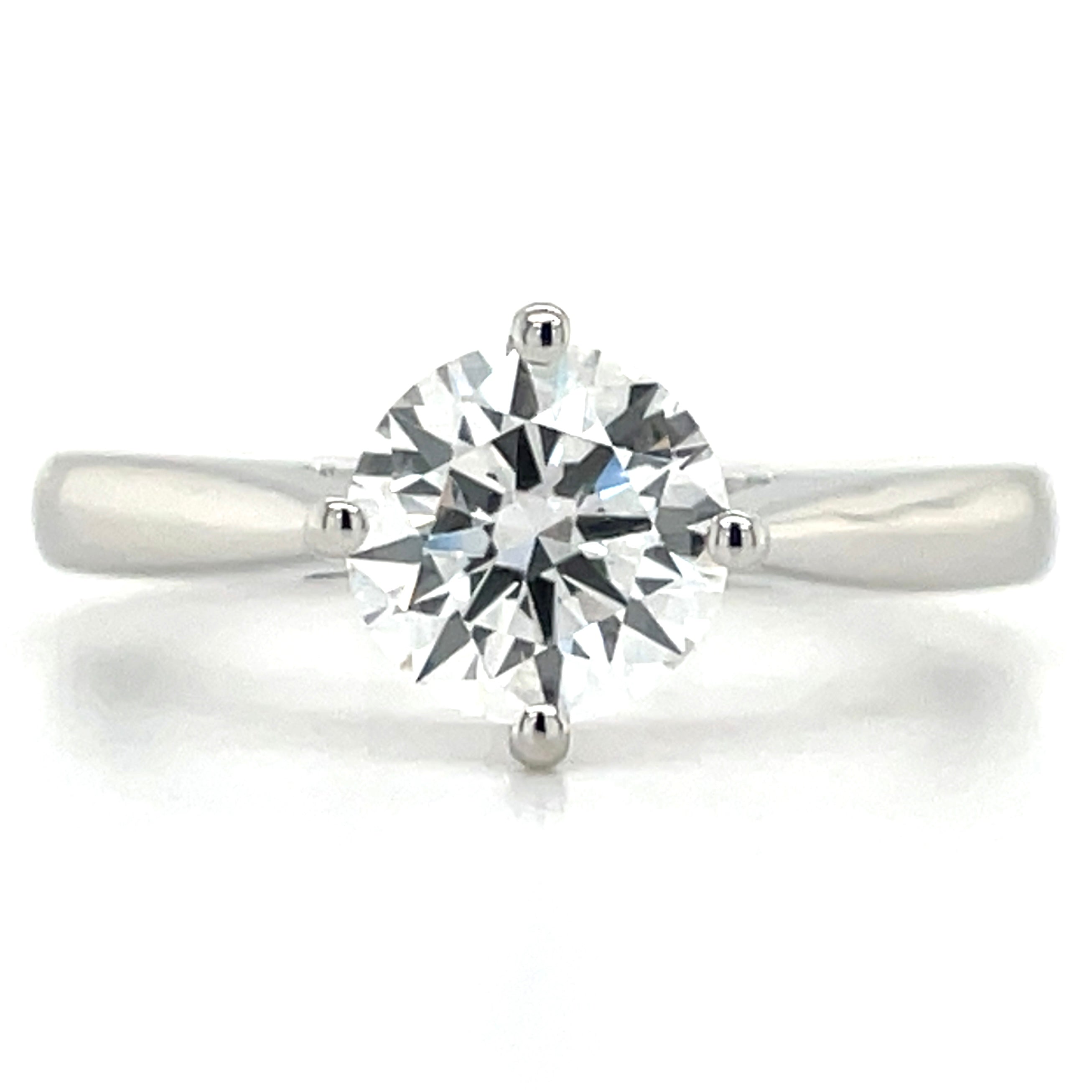Vera is a stunning laboratory grown diamond engagement ring featuring a 1.01ct round brilliant solitaire stone set in four platinum claws on a platinum band. The stone is IGI Certified with the following grades: