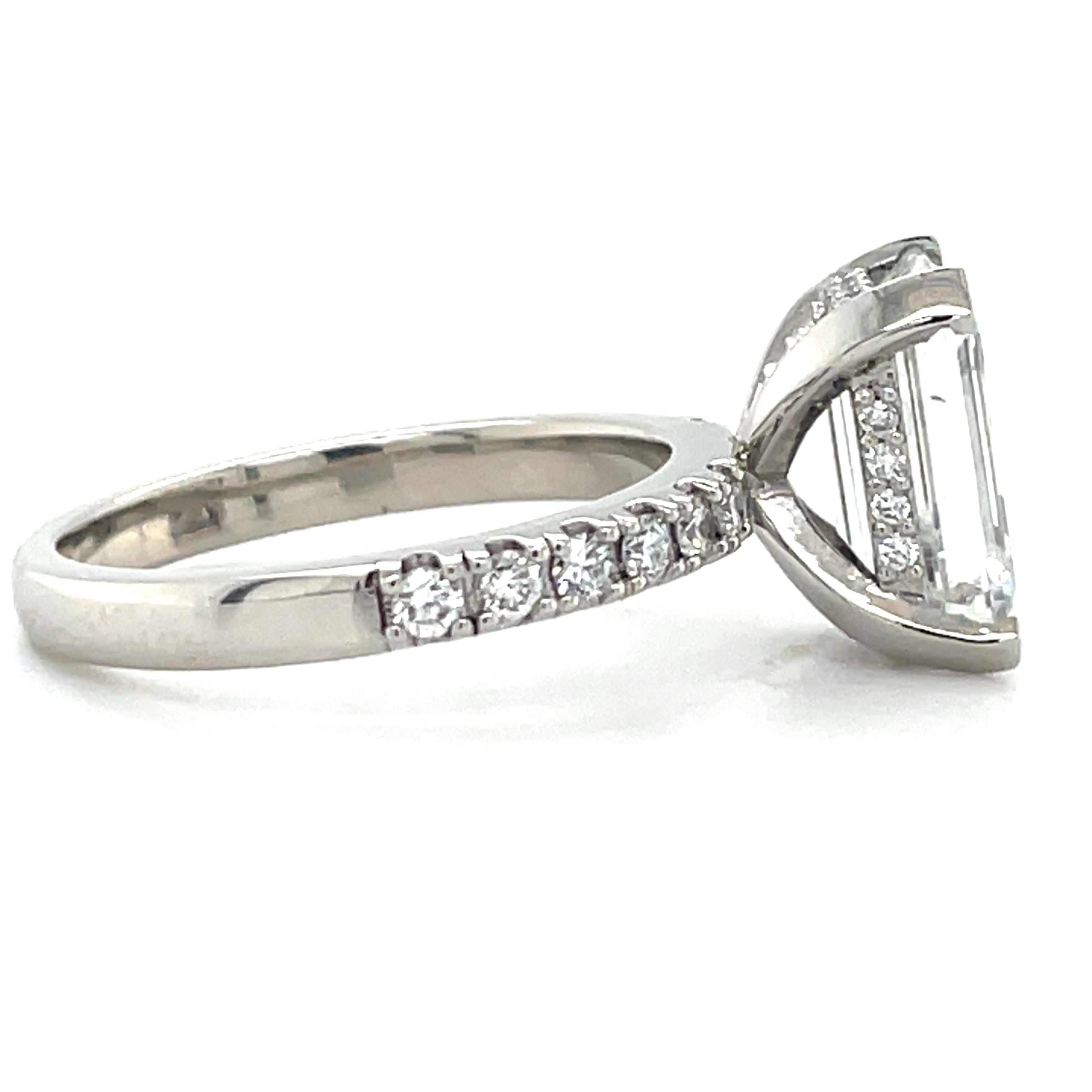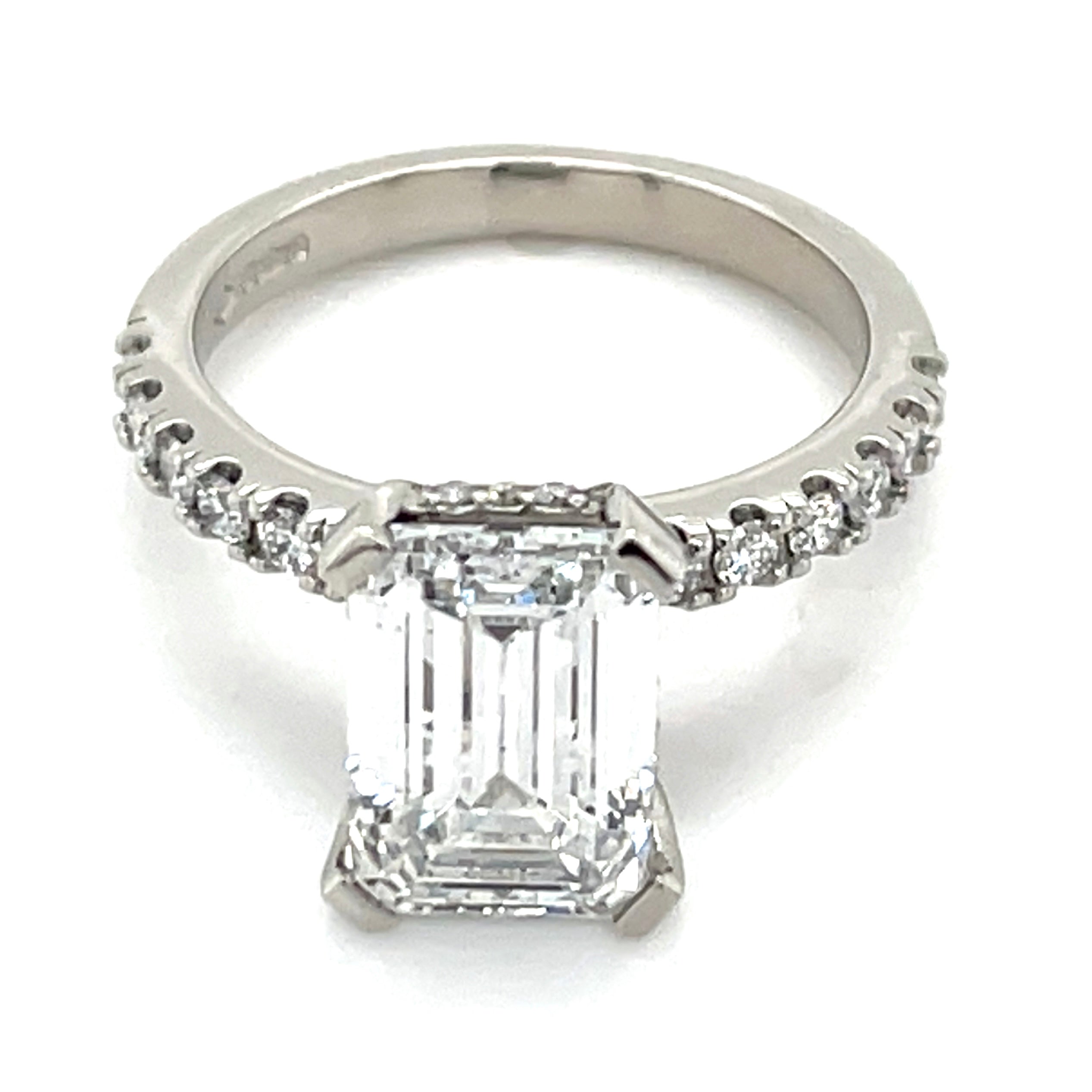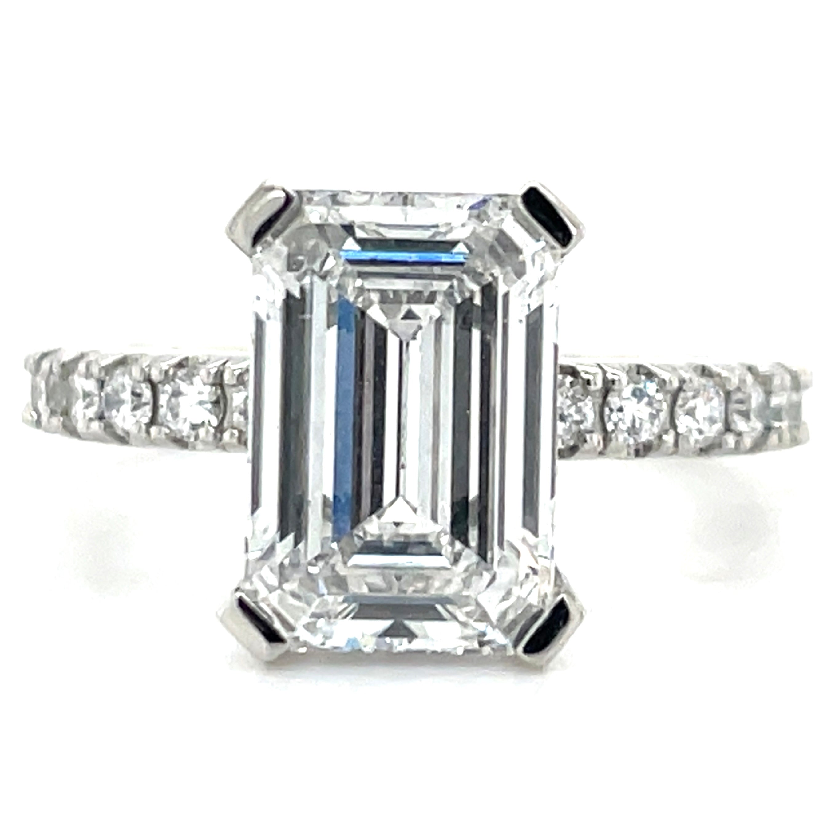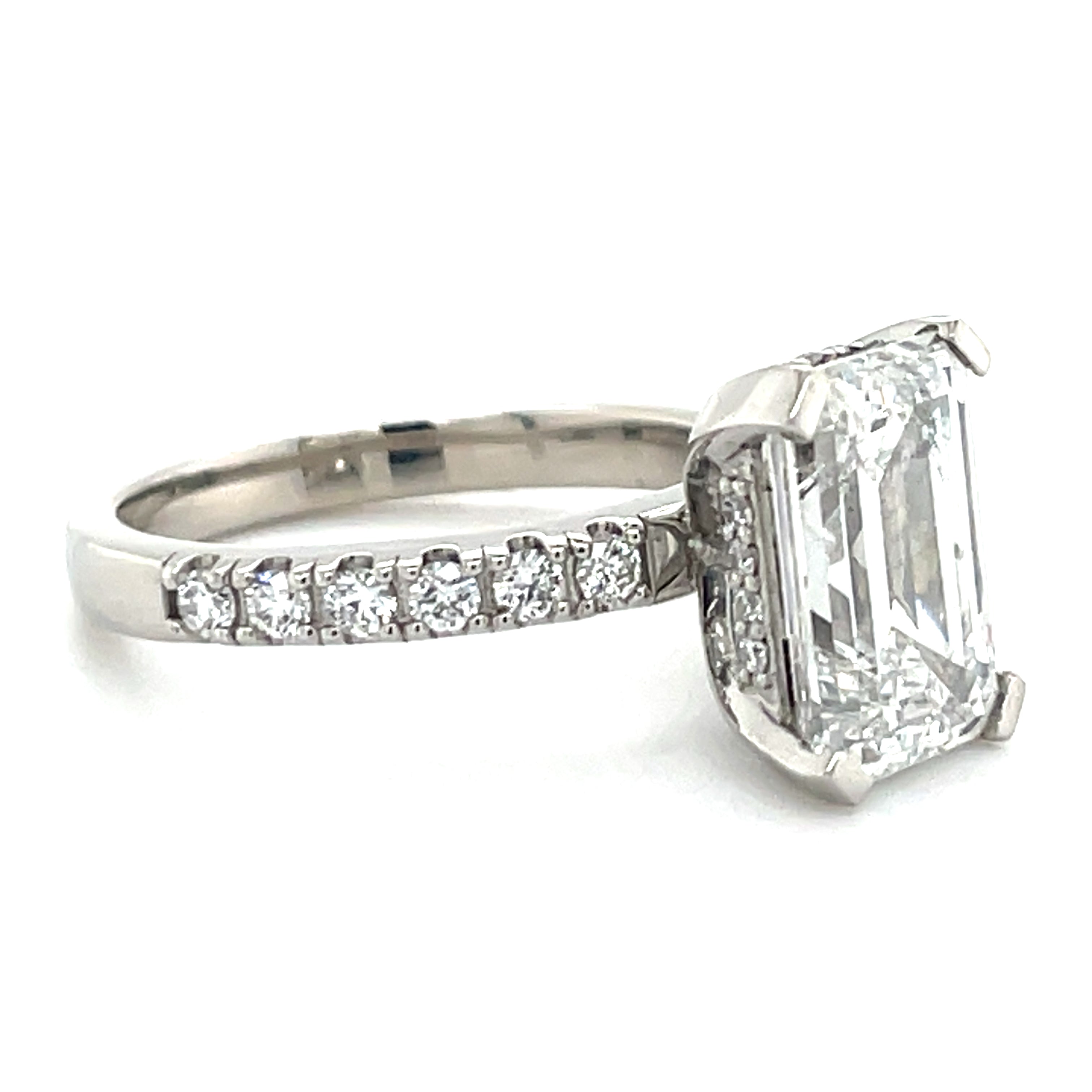 Valentina - Platinum 3.36ct Laboratory Grown Emerald Cut Solitaire Diamond Engagement Ring With Castle Set Shoulders