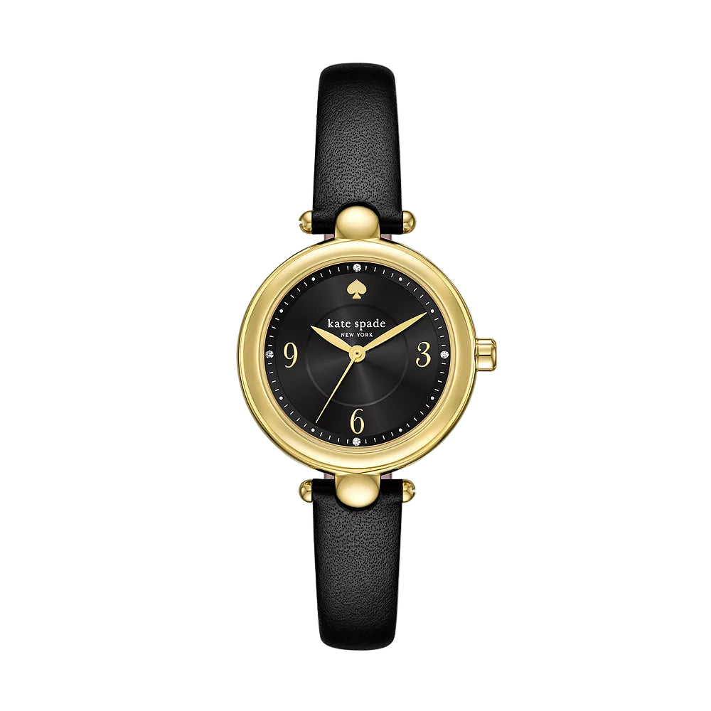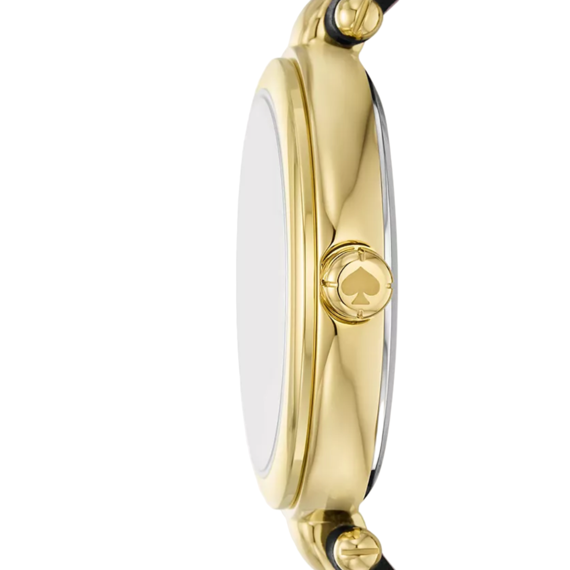 The Kate Spade New York Gracie Black Leather Watch is the perfect accessory for any fashion-forward individual. With a 32 mm stainless steel case and black leather strap, this watch exudes elegance and sophistication. Featuring a reliable quartz three-hand movement and 3 ATM water resistance, it combines style with practicality. Complete your look with the Gracie round dial in sleek black and a single prong strap buckle closure.