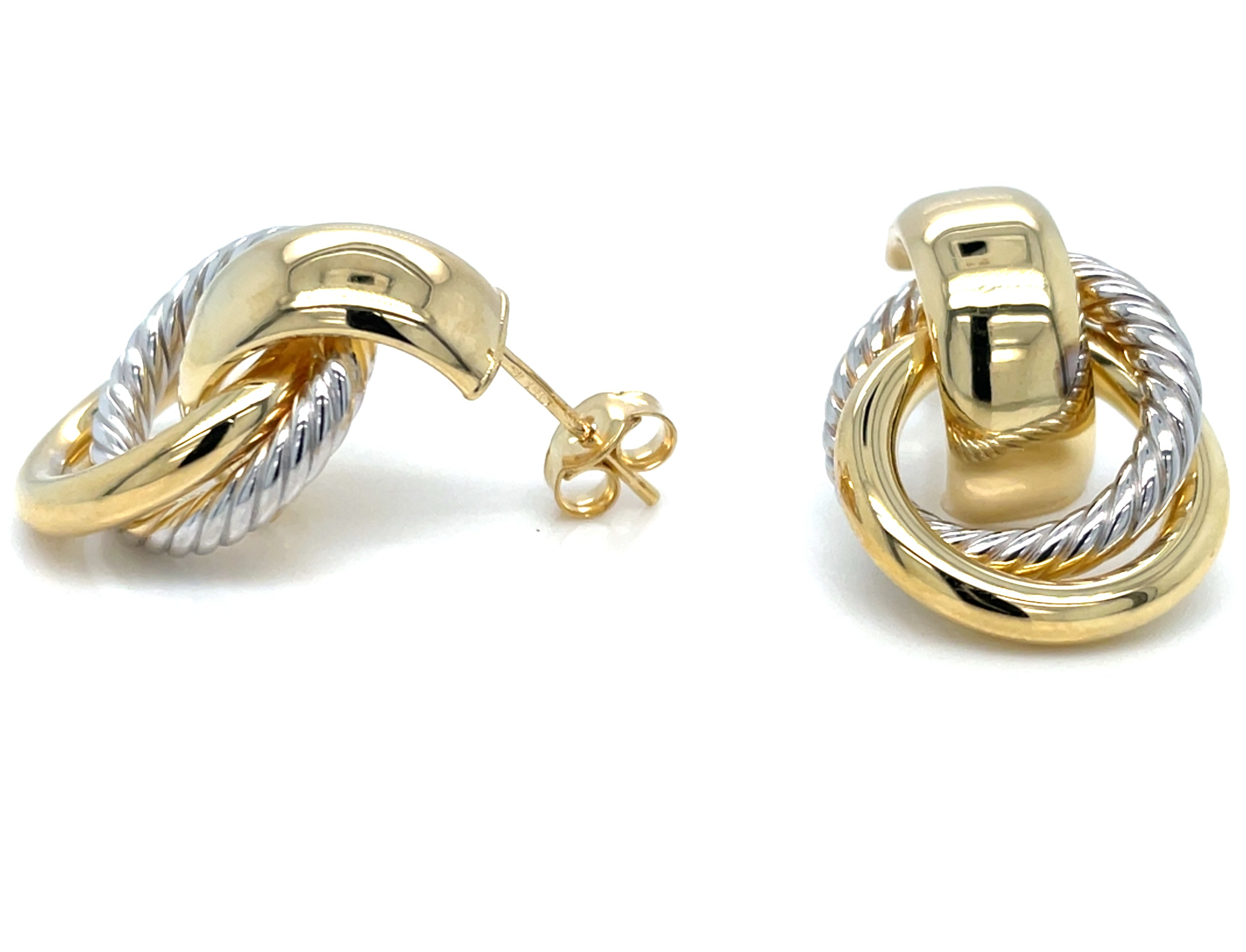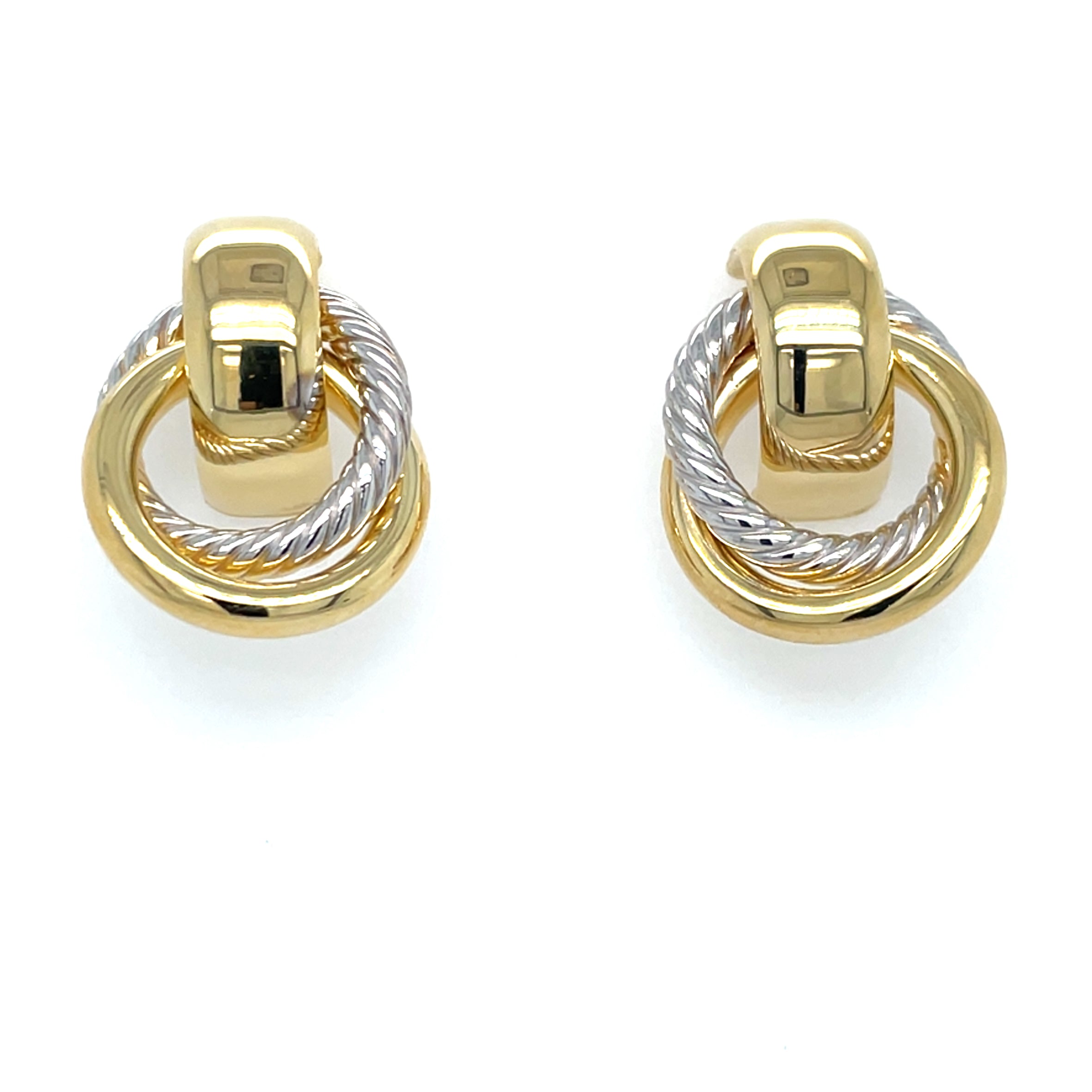 Expertly crafted in 9ct yellow and white gold, these doorknocker stud earrings are a timeless addition to any jewellery collection. With a stylish 1.5cm width and 2cm length, they add a touch of elegance to any outfit. Perfect for both everyday wear and special occasions.