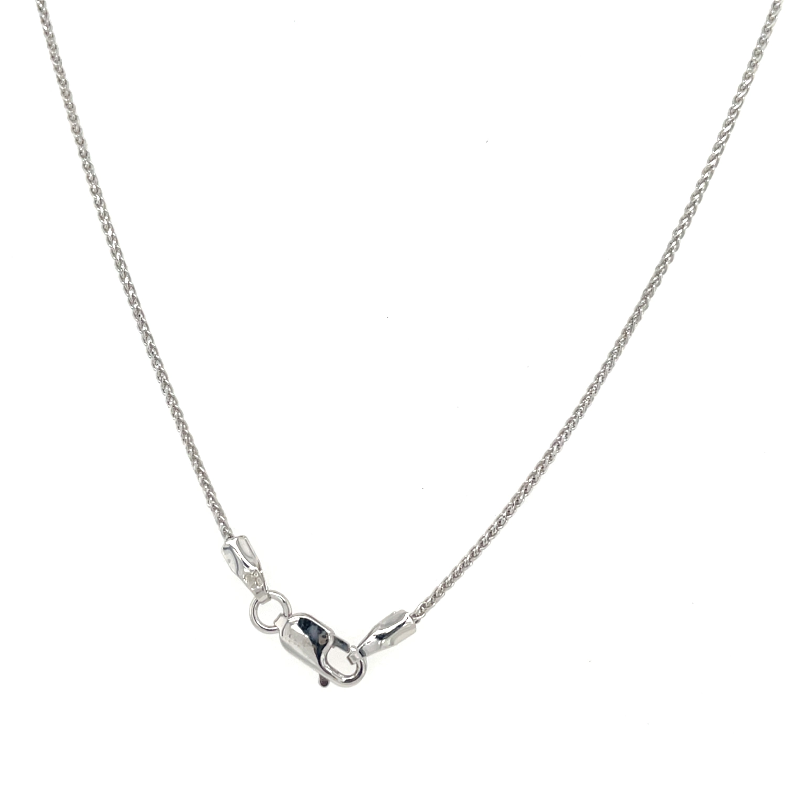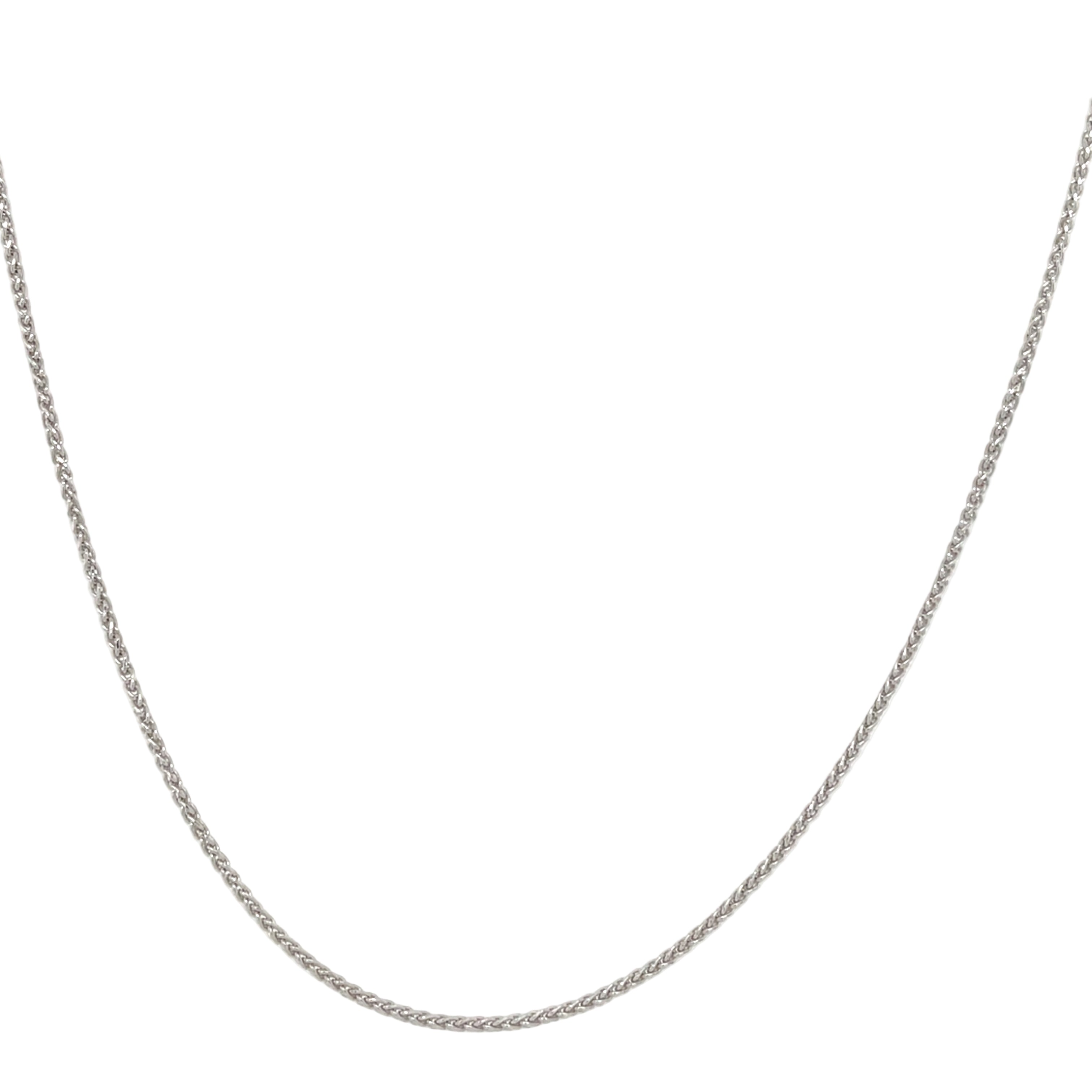This elegant 9ct white gold spiga chain features a refined, interlocking link design that catches the light beautifully. At 18 inches, it's the ideal length to showcase your favourite pendant while maintaining a sophisticated, versatile look for any occasion.