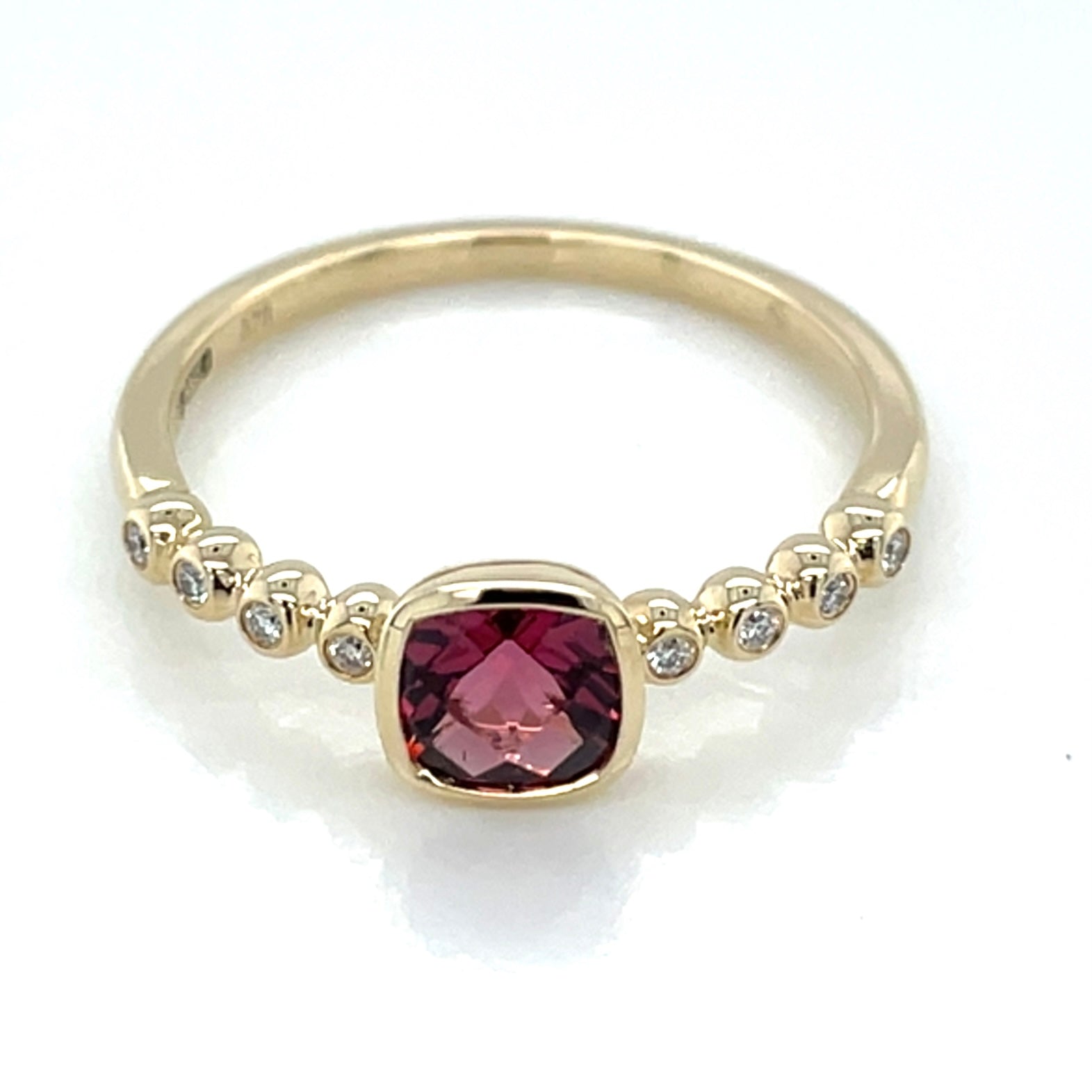 9ct Yellow Gold Diamond & Cushion Cut Rhodolite Garnet Ring