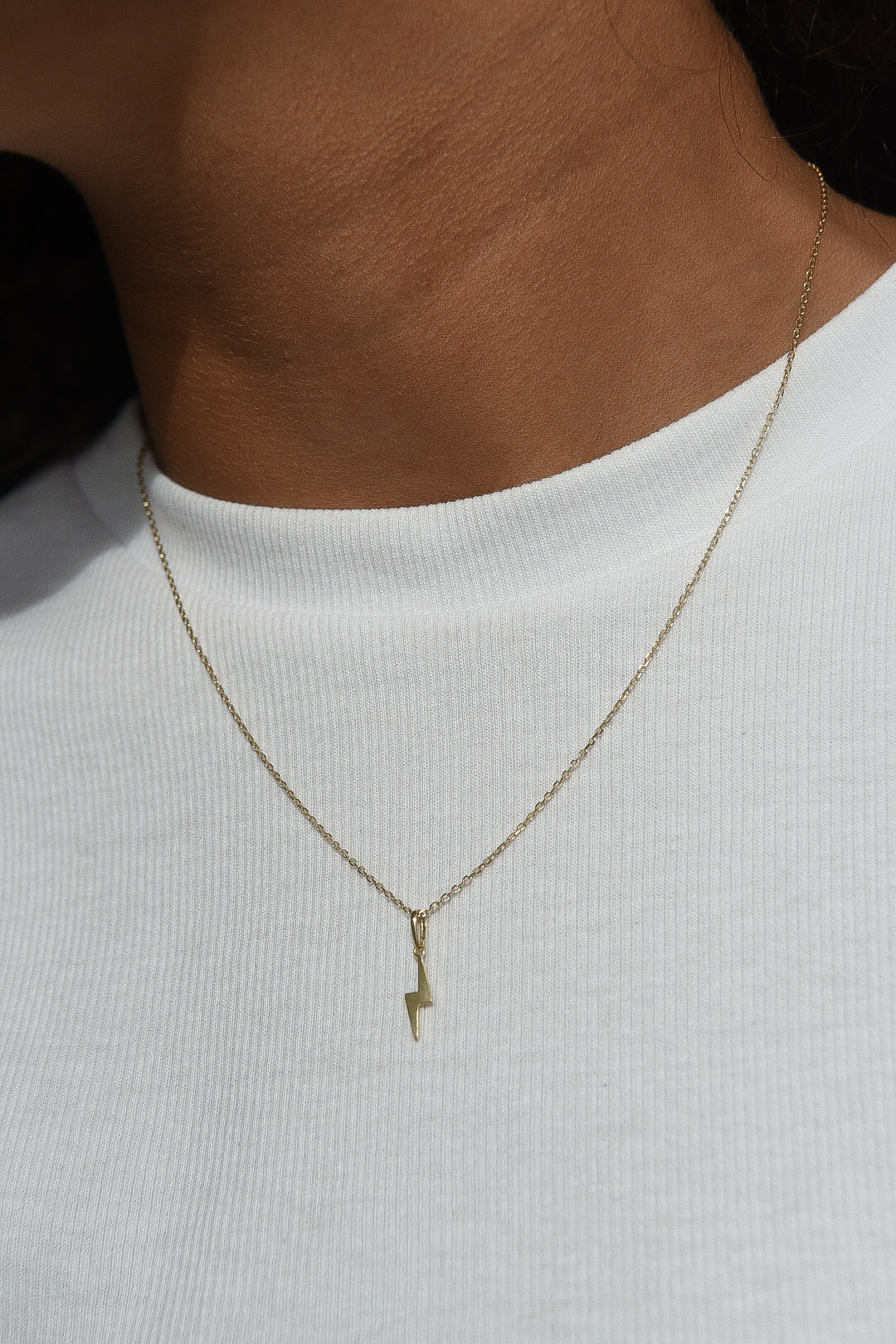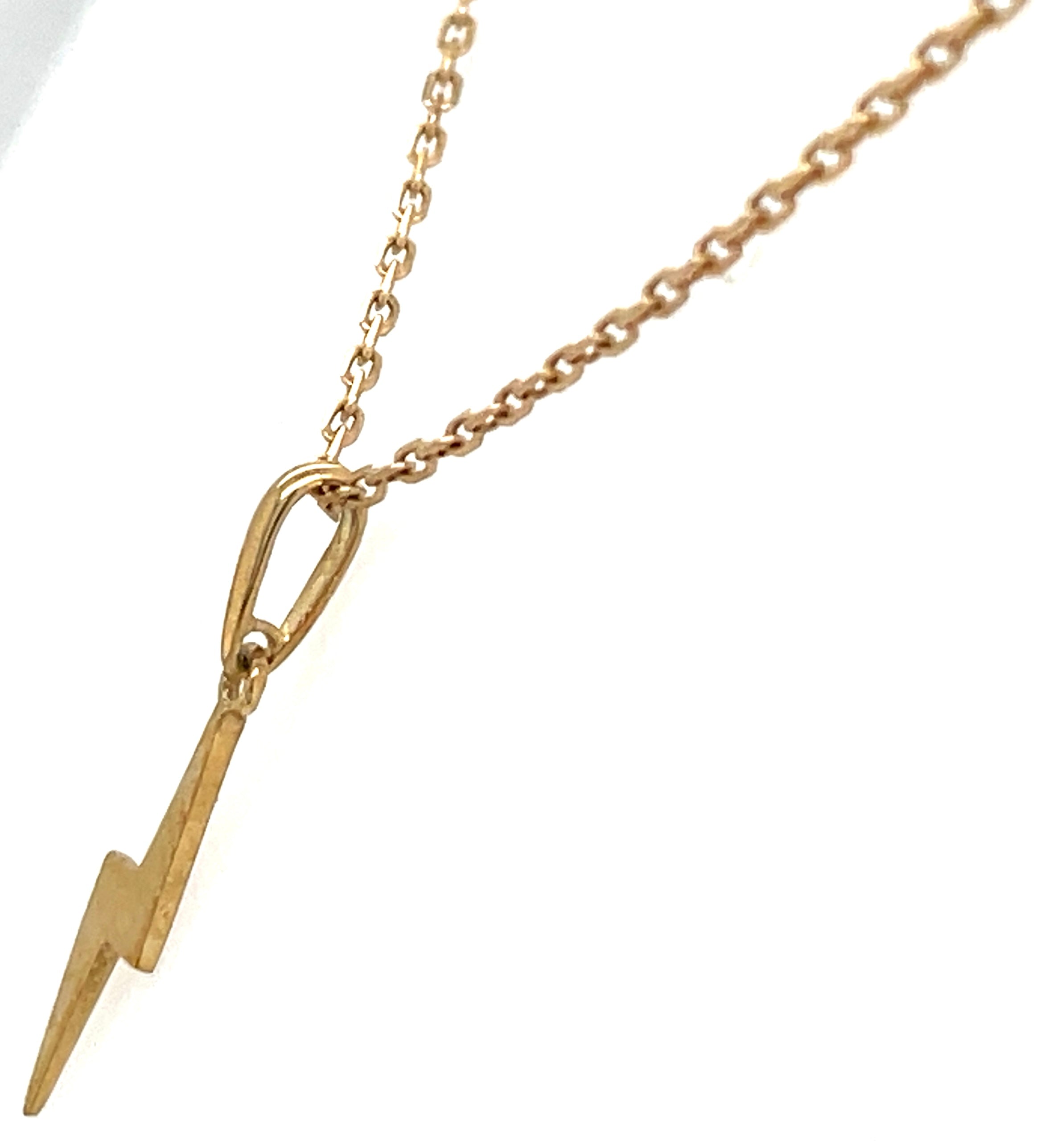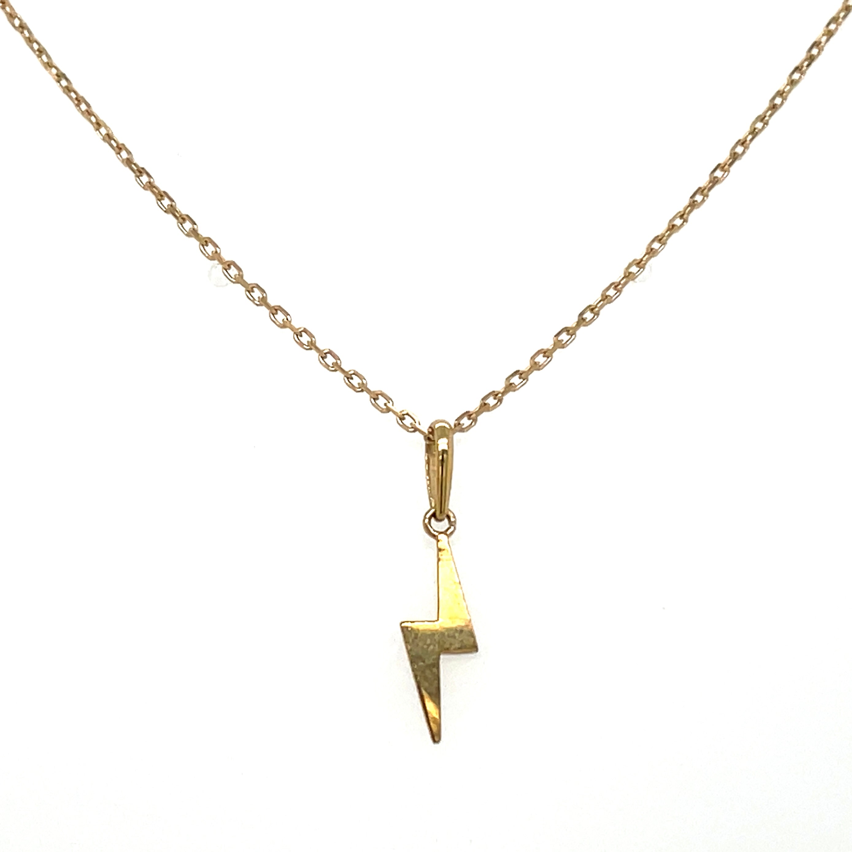 Strike a bold statement with this striking 9ct yellow gold necklace, featuring a sleek lightning bolt pendant that captures dynamic energy in timeless precious metal. The minimalist design offers versatile elegance, perfect for layering or wearing solo as an eye-catching focal piece. The necklace is 45cm in length with an adjustment at 42cm.