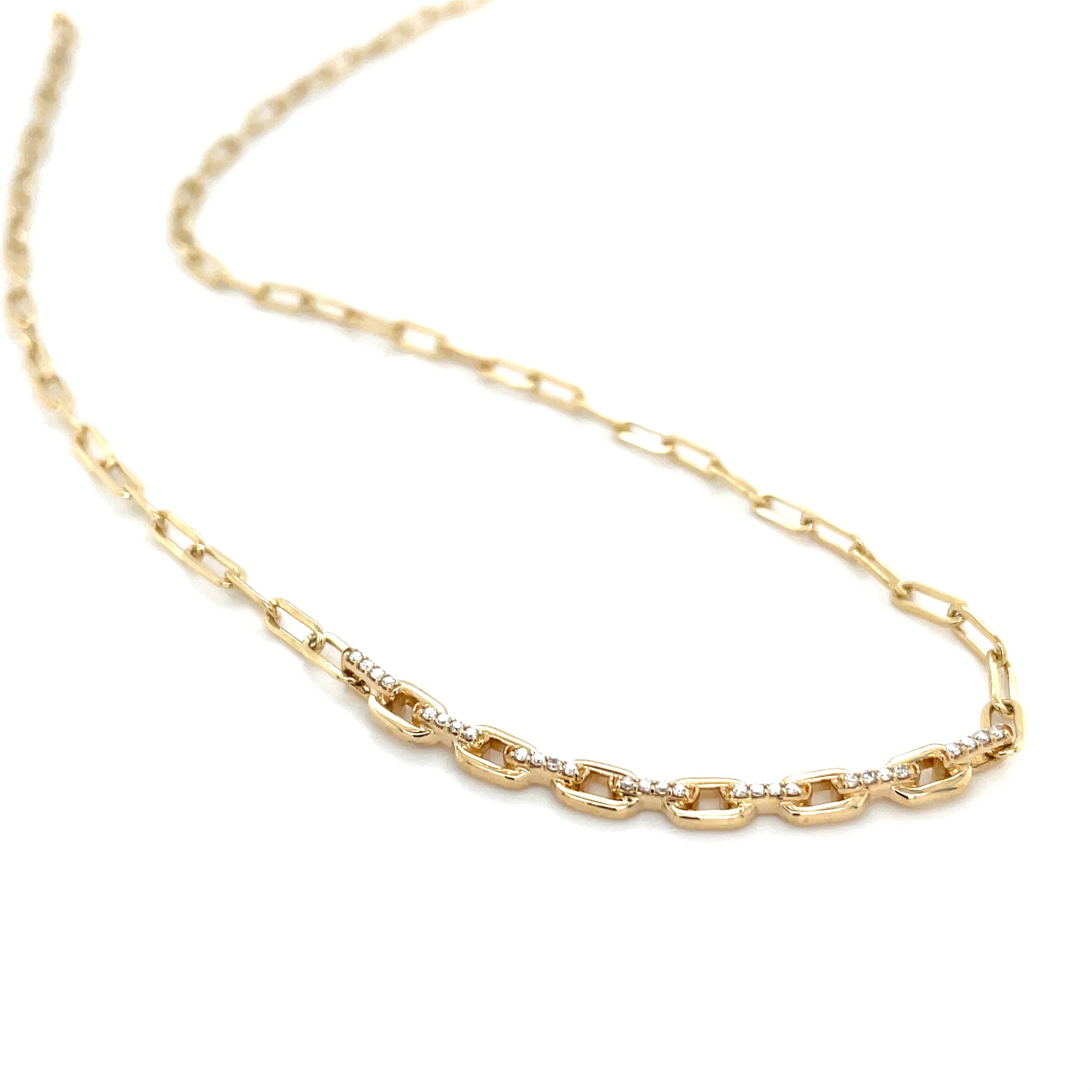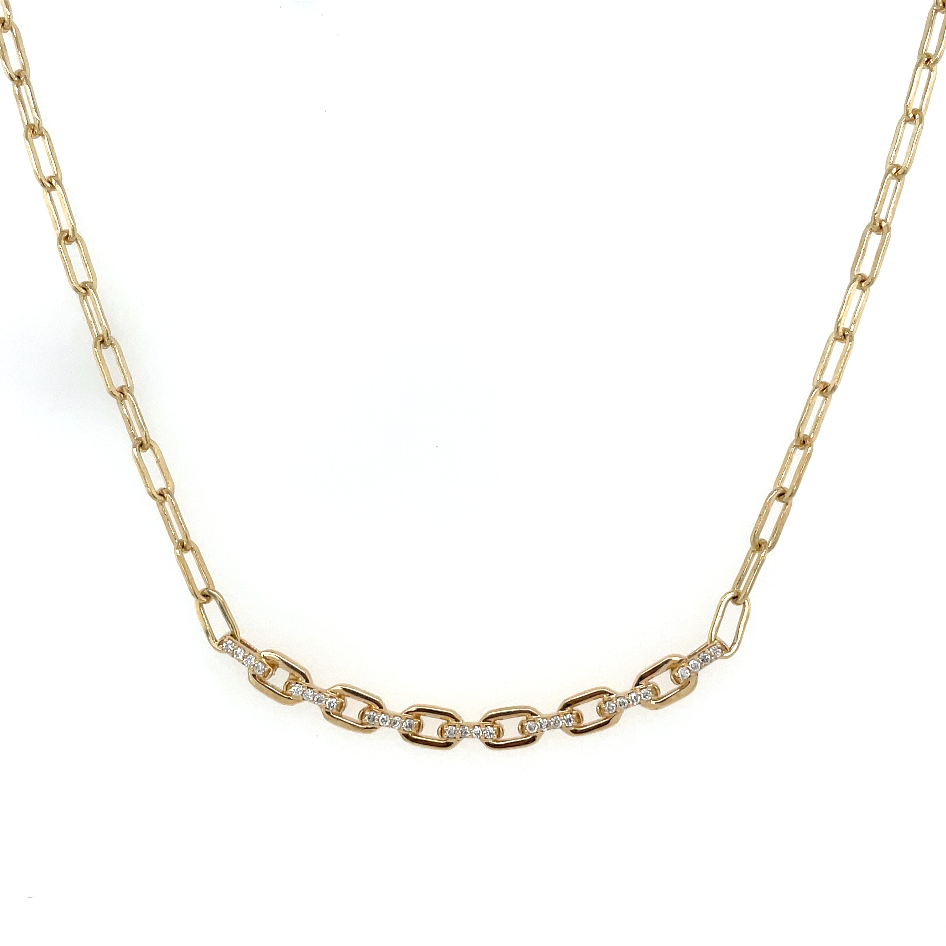 Crafted from 9ct yellow gold, this stunning paperlink necklace is accented with sparkling diamonds for a touch of elegance. The intricate design adds a sense of sophistication to any outfit, making it the perfect accessory for any occasion. Elevate your style with this timeless piece. Adjustable 16-18 inches