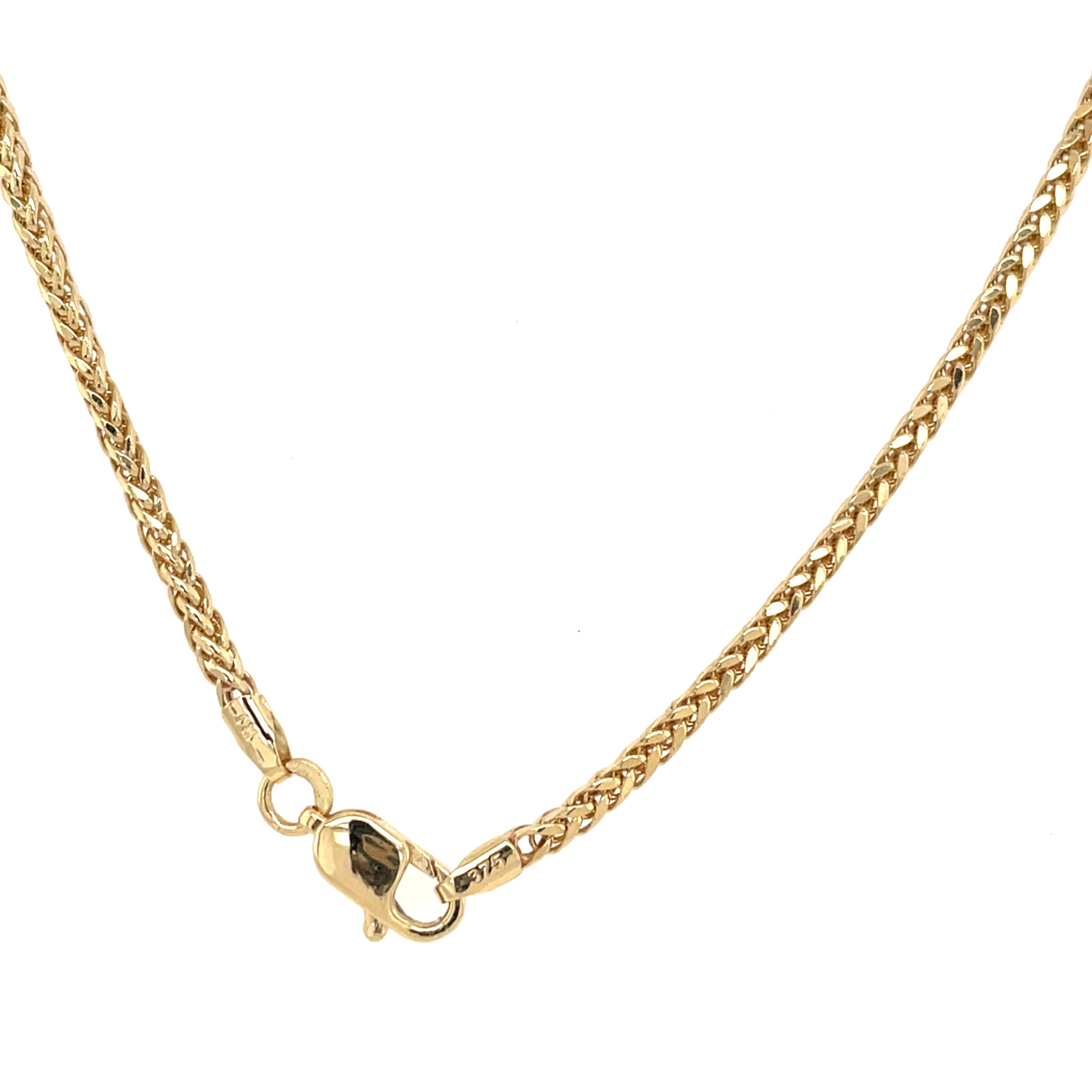 The 9ct Yellow Gold Triple Spiga Chain, measuring 1.6mm wide and 18 inches long, is meticulously crafted to deliver lasting strength and enduring style. Perfect for wearing solo or paired with your favourite pendant.