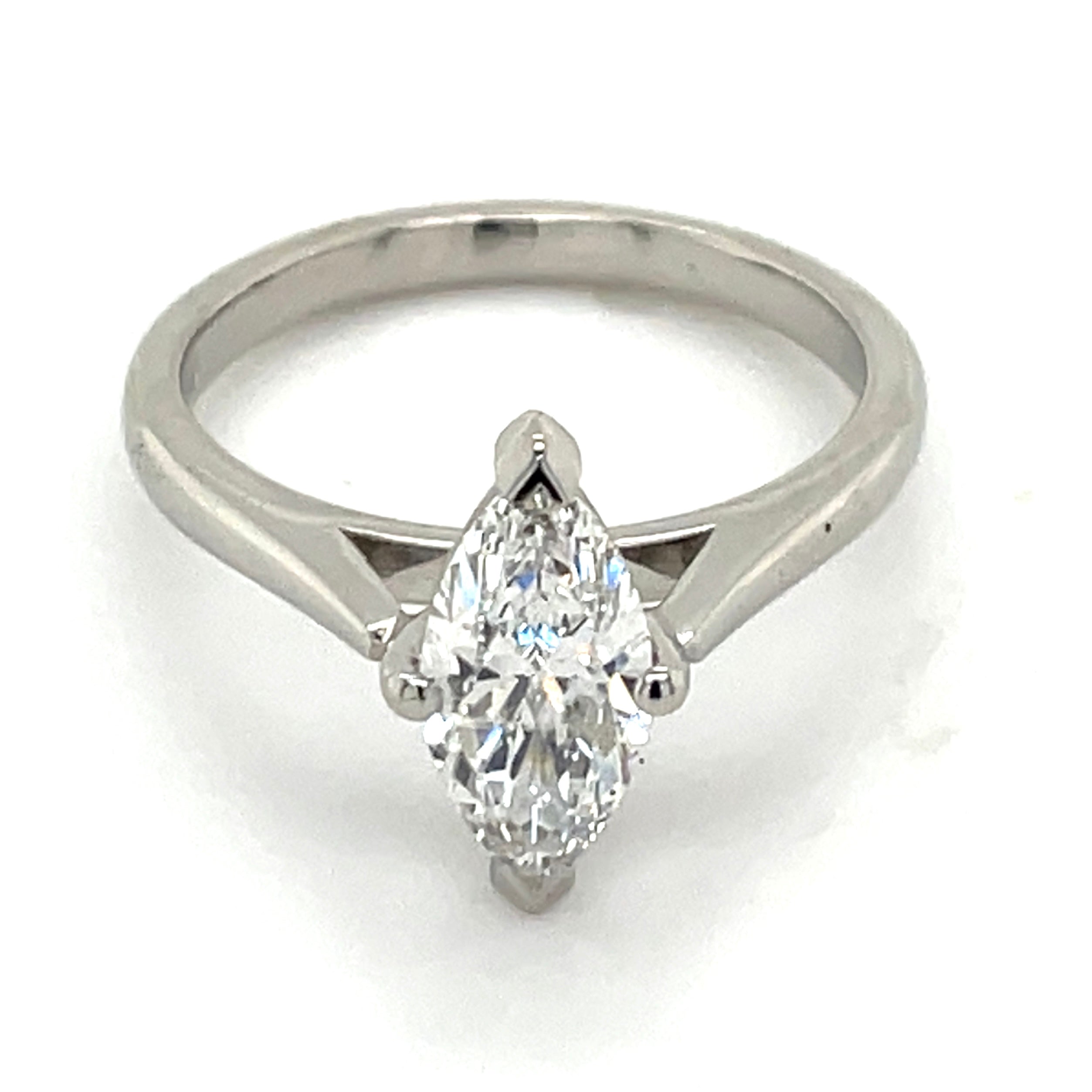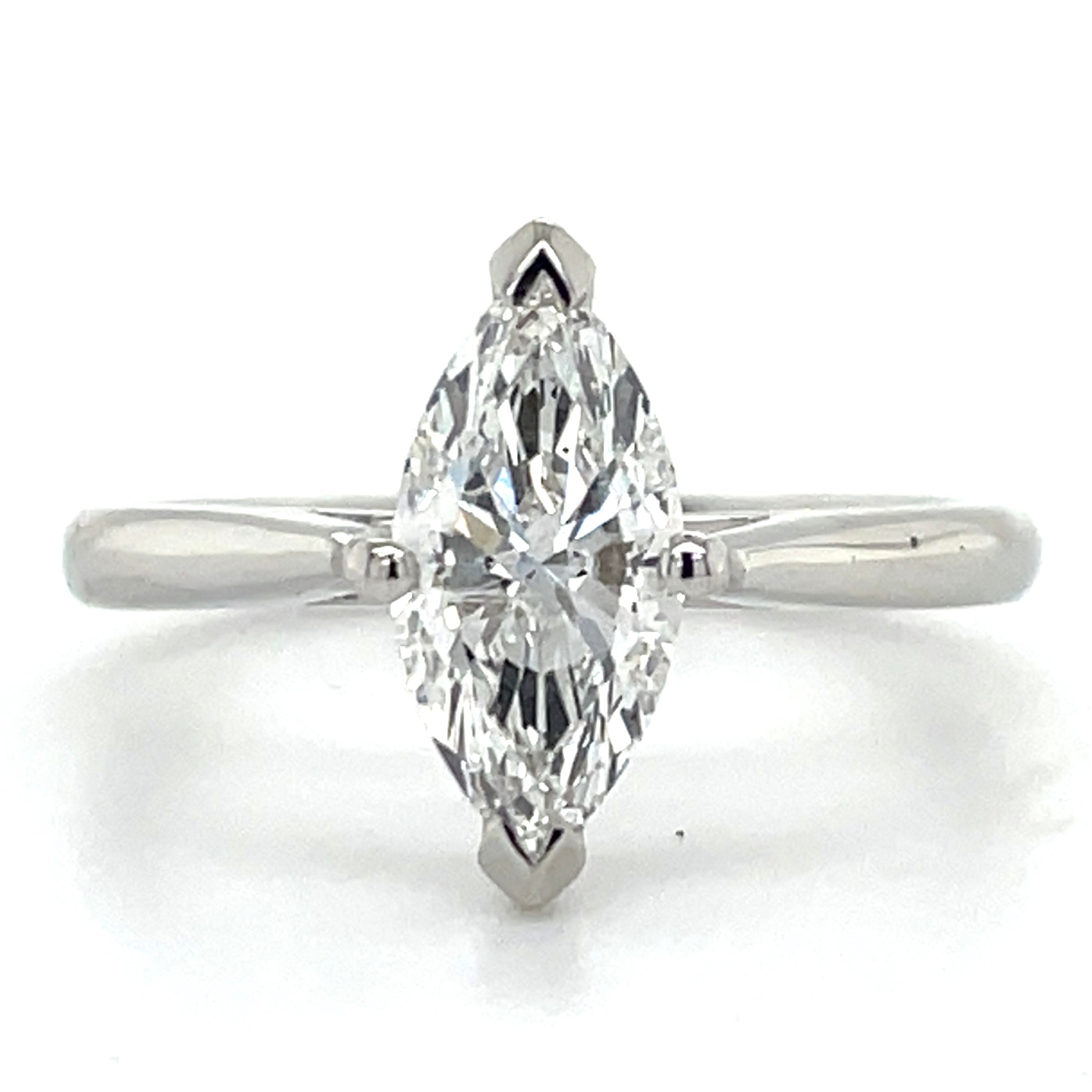 Expertly crafted in lustrous platinum, the Imogen Engagement Ring features a stunning 1.01ct / 1.03ct IGI certified marquise cut diamond. This laboratory grown solitaire offers exceptional brilliance and shine, making it the perfect choice for a timeless engagement ring.