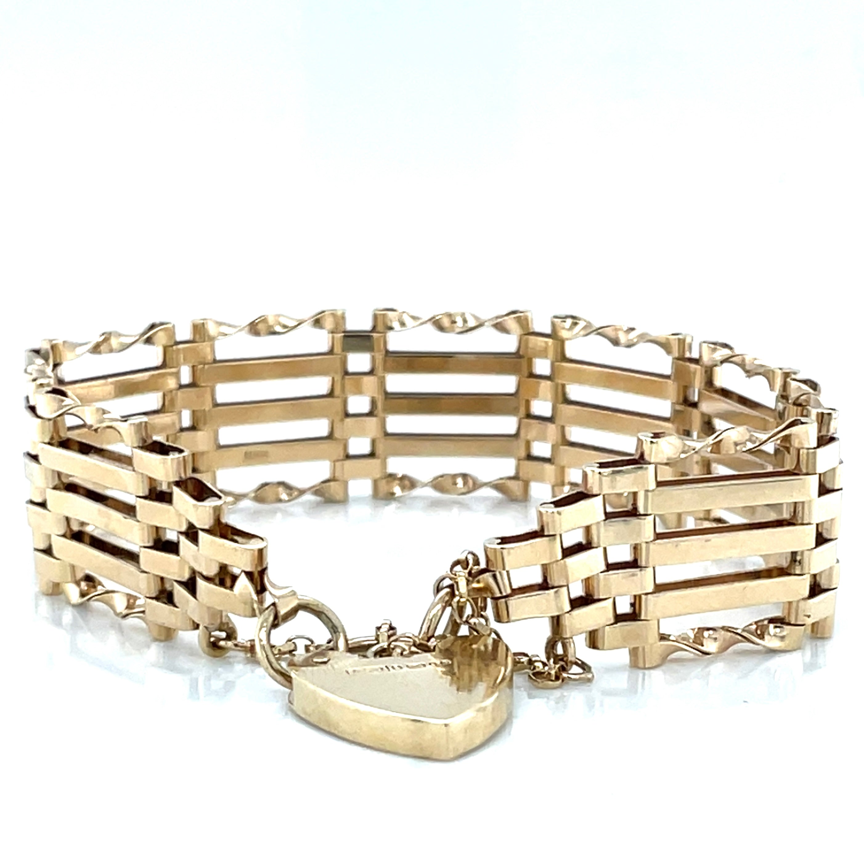 Vintage 9ct Yellow Gold Gate Bracelet with Heart-Shaped Lock