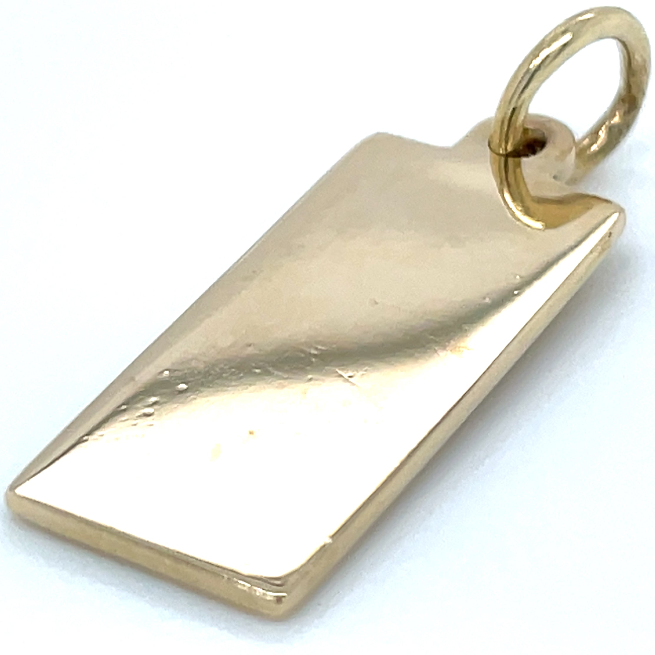 Crafted from luxurious 9ct yellow gold, this small dog tag pendant exudes vintage charm. The perfect addition to any necklace, this pendant offers a delicate and timeless touch to any outfit. A must-have for any jewellery collection. Length of 2cm, width of 1cm