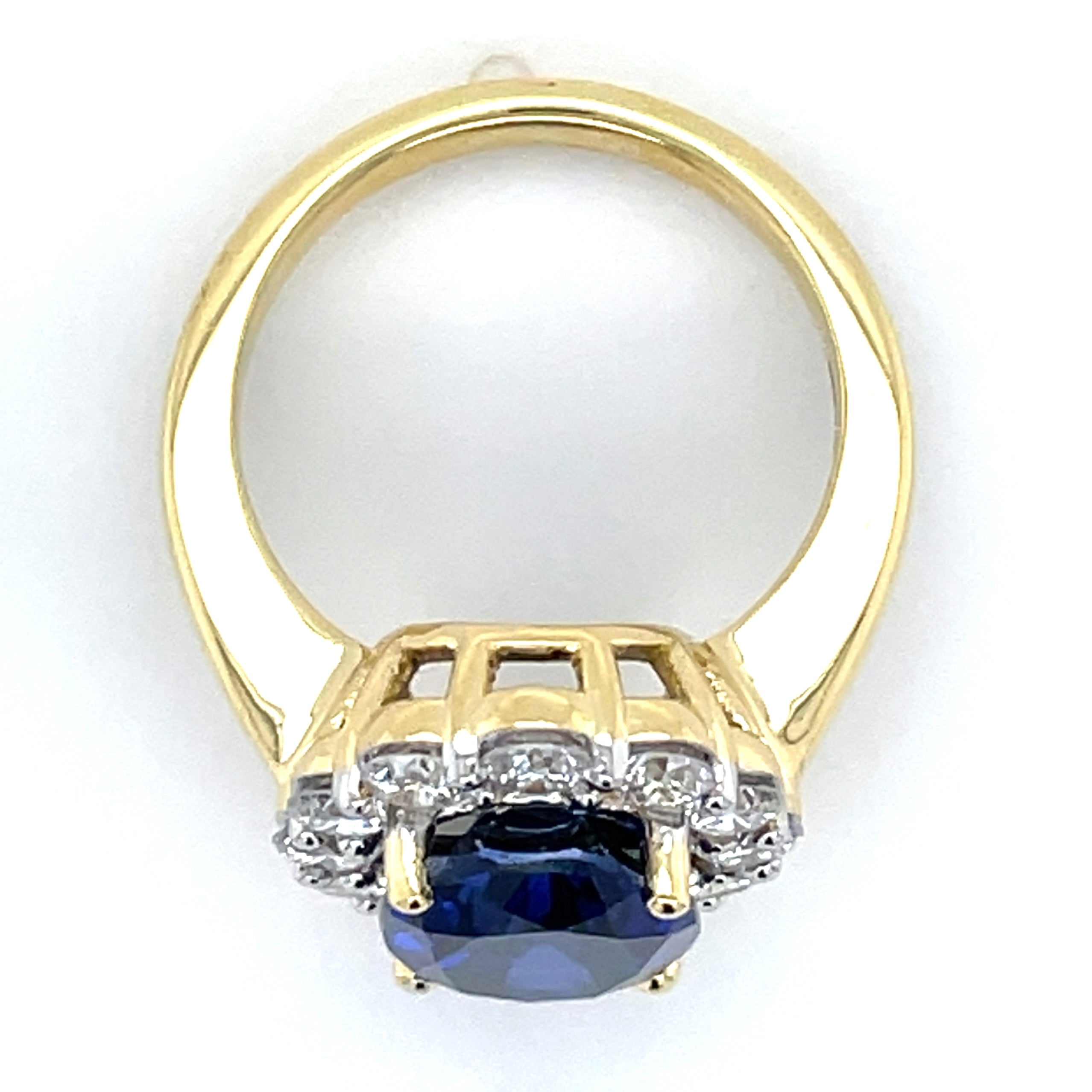 Elevate your jewellery collection with our 18ct yellow gold ring featuring a stunning 10ct laboratory grown sapphire and 1.33ct laboratory grown diamond, 18ct Yellow Gold. The diamonds are F colour, Si clarity. Made with precision and expertise, this exquisite piece boasts timeless elegance and a brilliant sparkle. Enhance any outfit with this show stopping addition.