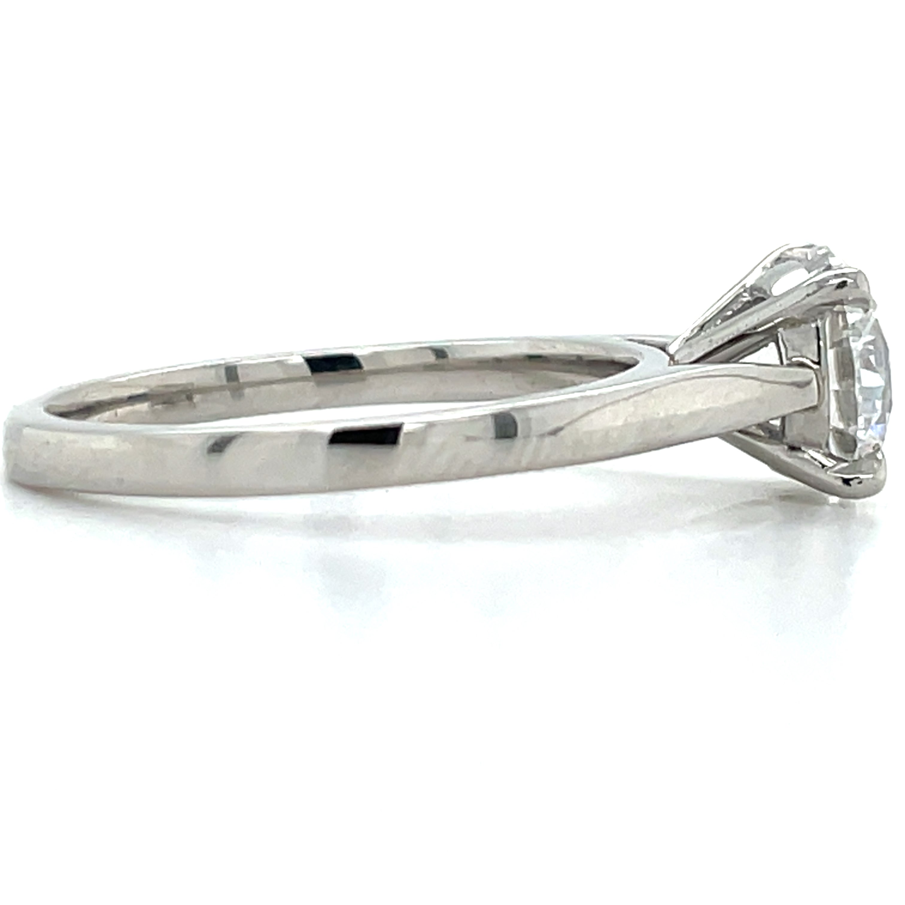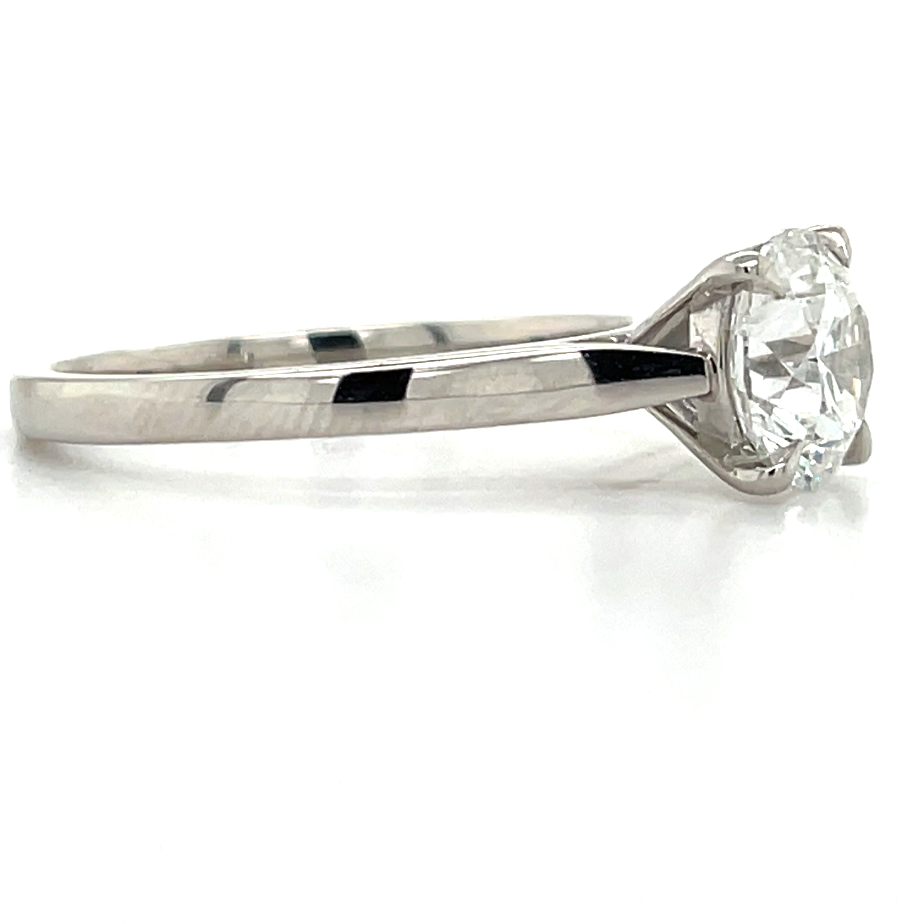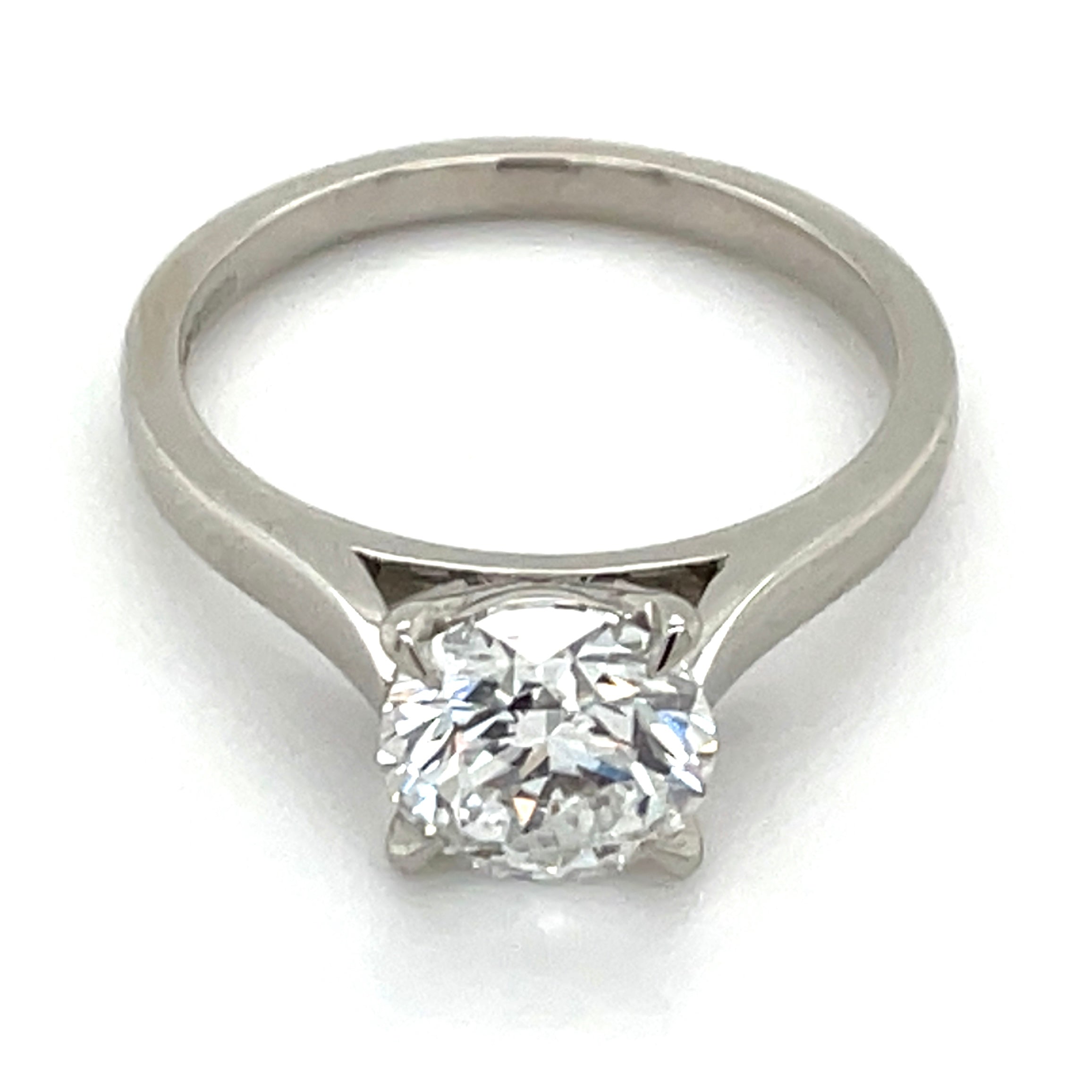 Turn heads with this stunning platinum ring featuring a laboratory grown 1.50ct round solitaire diamond. The round brilliant diamond is elegantly set in four claws on a platinum head, making it a timeless and stylish piece that will last a lifetime. The stone is IGI certified with the following: