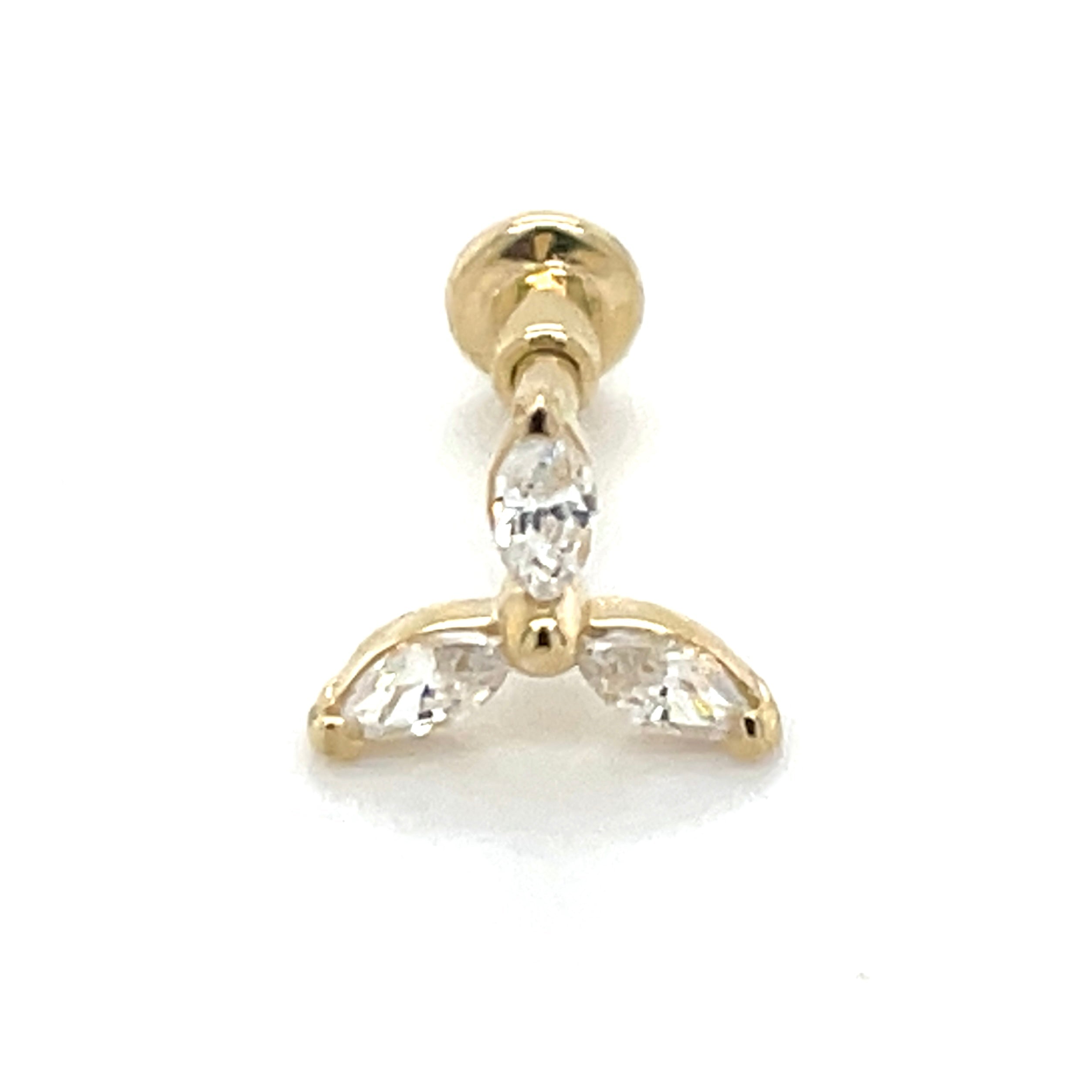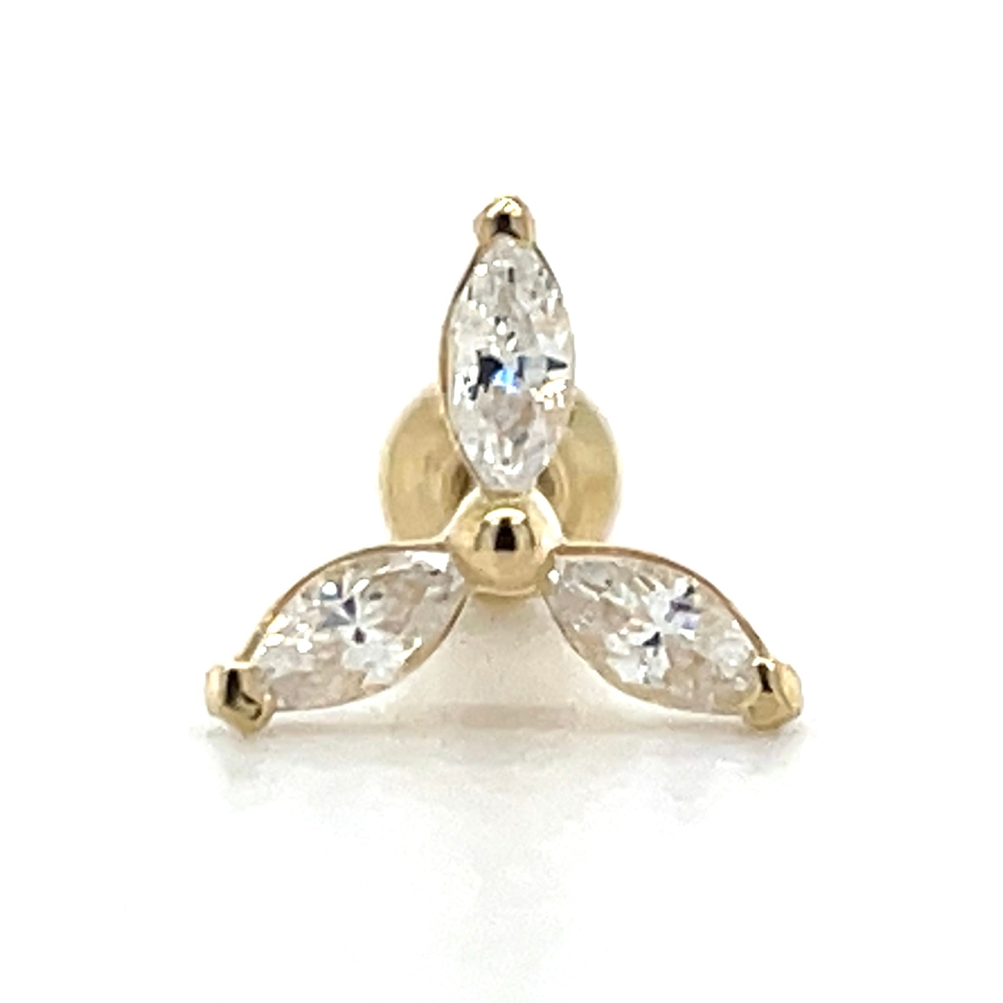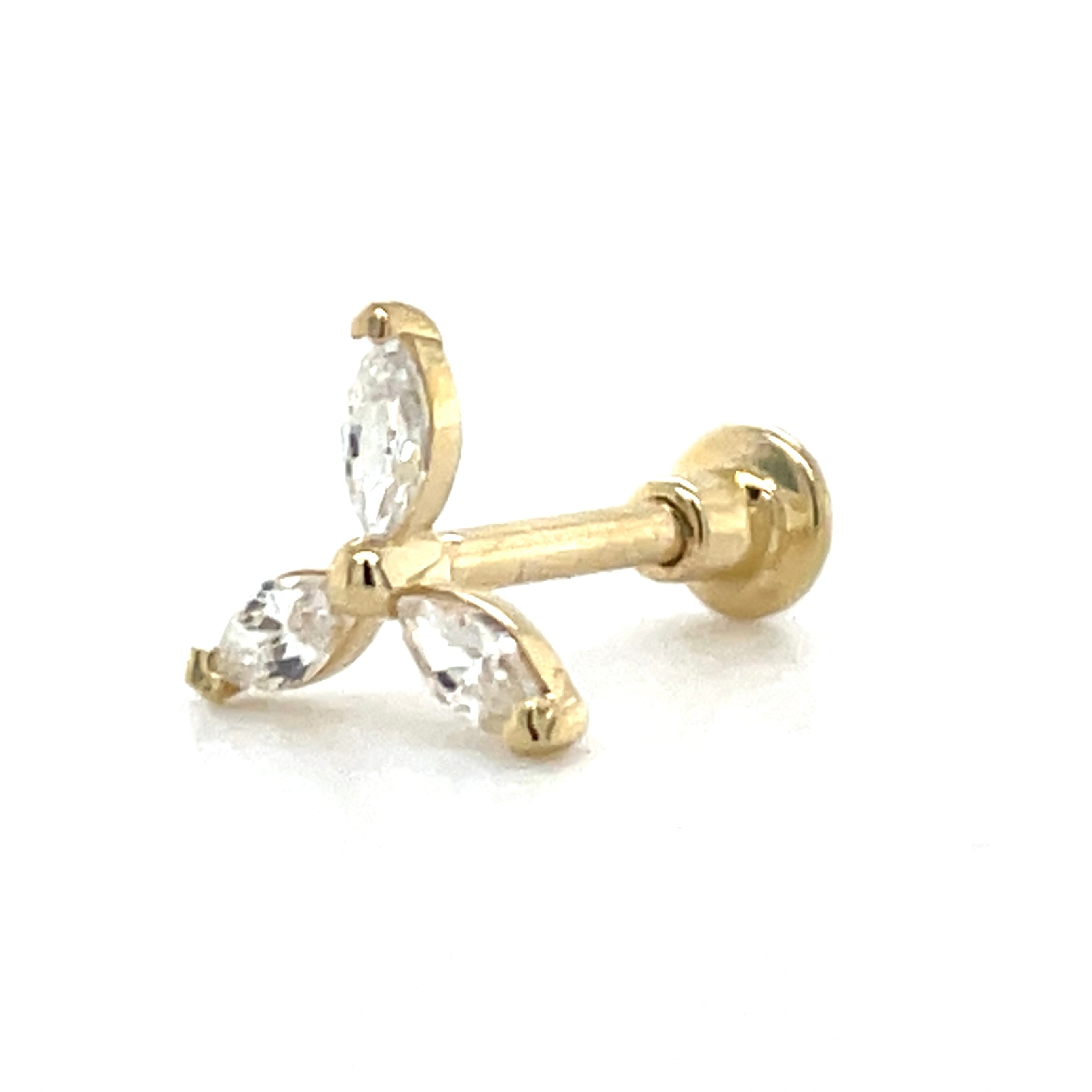 Crafted in 9ct yellow gold, this single flatback earring features marquise-shaped cubic zirconia stones arranged in a delicate flower design. The classic and versatile style adds a touch of elegance to any outfit. Perfect for everyday wear or special occasions.