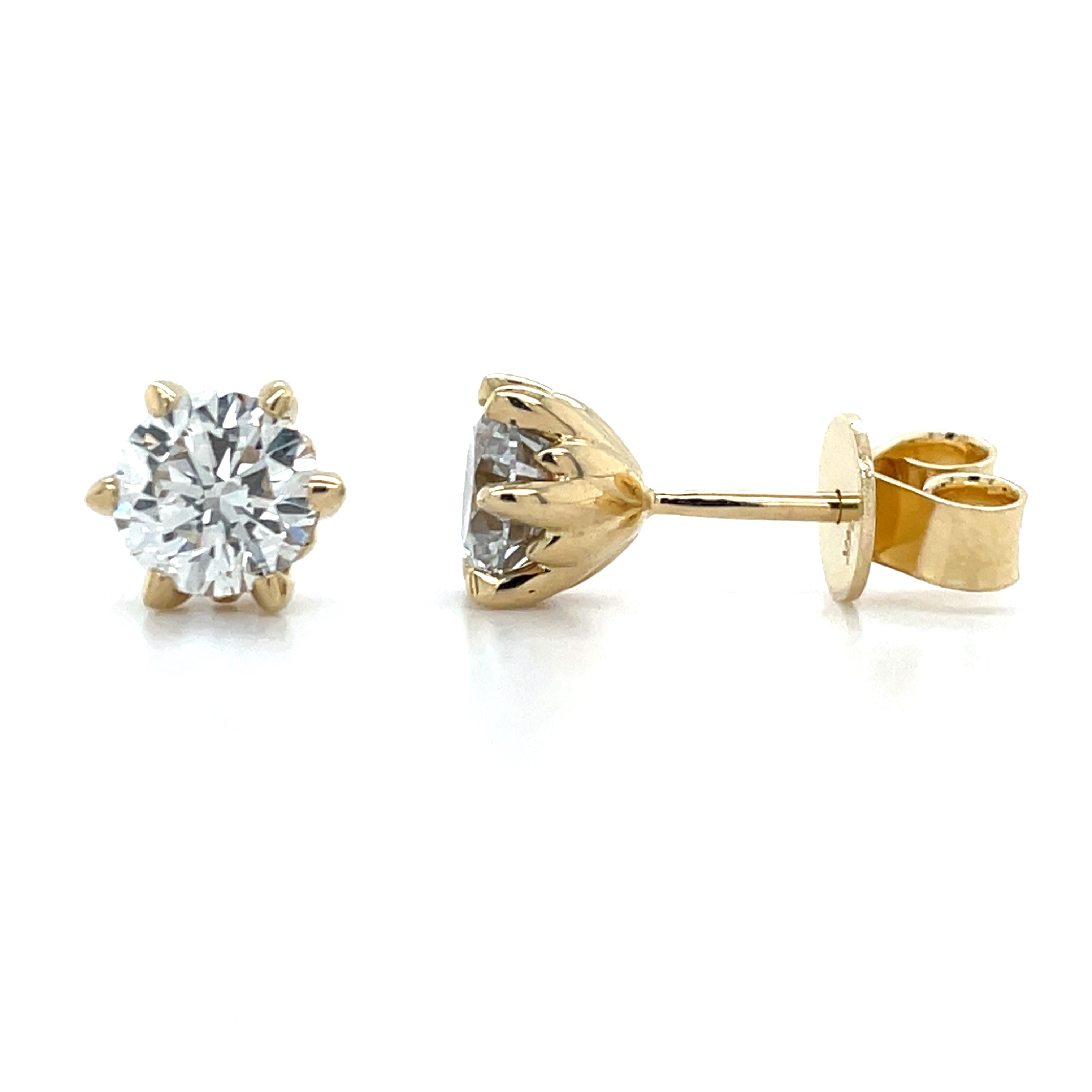 Elevate your everyday elegance with these exquisite 14ct yellow gold stud earrings, each featuring a brilliant laboratory-grown diamond secured in a classic six-claw setting. With a combined diamond weight of 2.06ct, these timeless pieces offer sophisticated sparkle that complements any occasion.