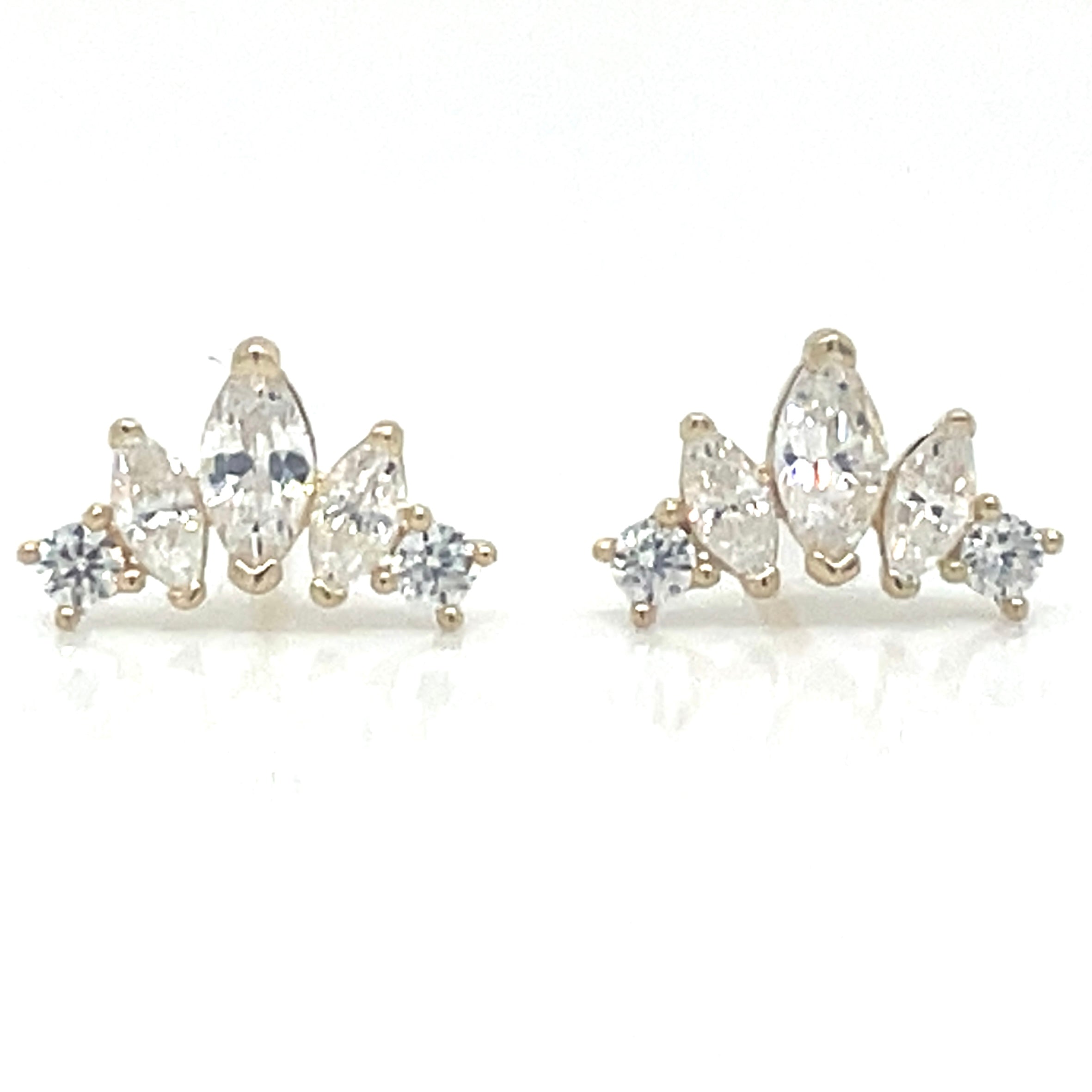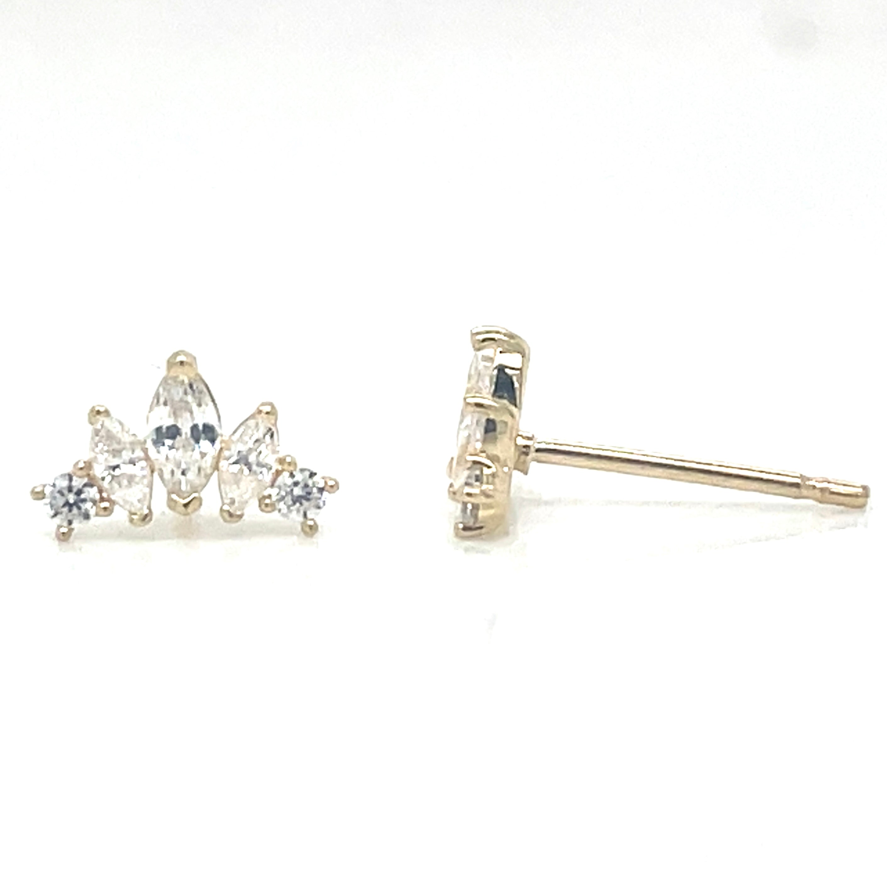 Elevate your everyday look with these elegant 9ct yellow gold stud earrings, featuring a striking combination of marquise and round cubic zirconia stones. The timeless design offers versatile sophistication, perfect for both casual wear and special occasions. Crafted in quality yellow gold, these studs deliver a luxurious sparkle that complements any style.