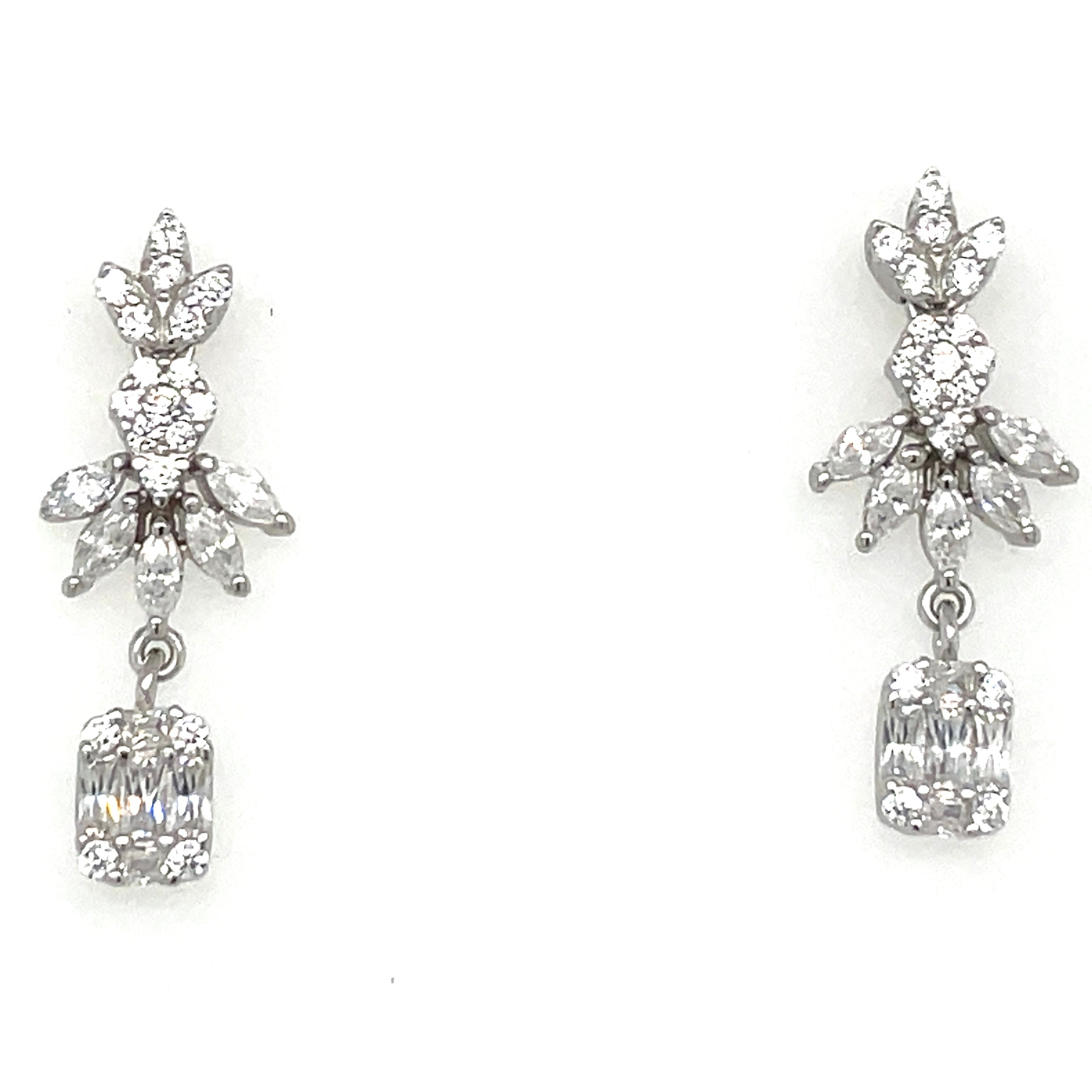 Expertly crafted from stunning sterling silver, these drop earrings feature a unique combination of dazzling cubic zirconia stones. Elevate any outfit with this sophisticated and versatile accessory.