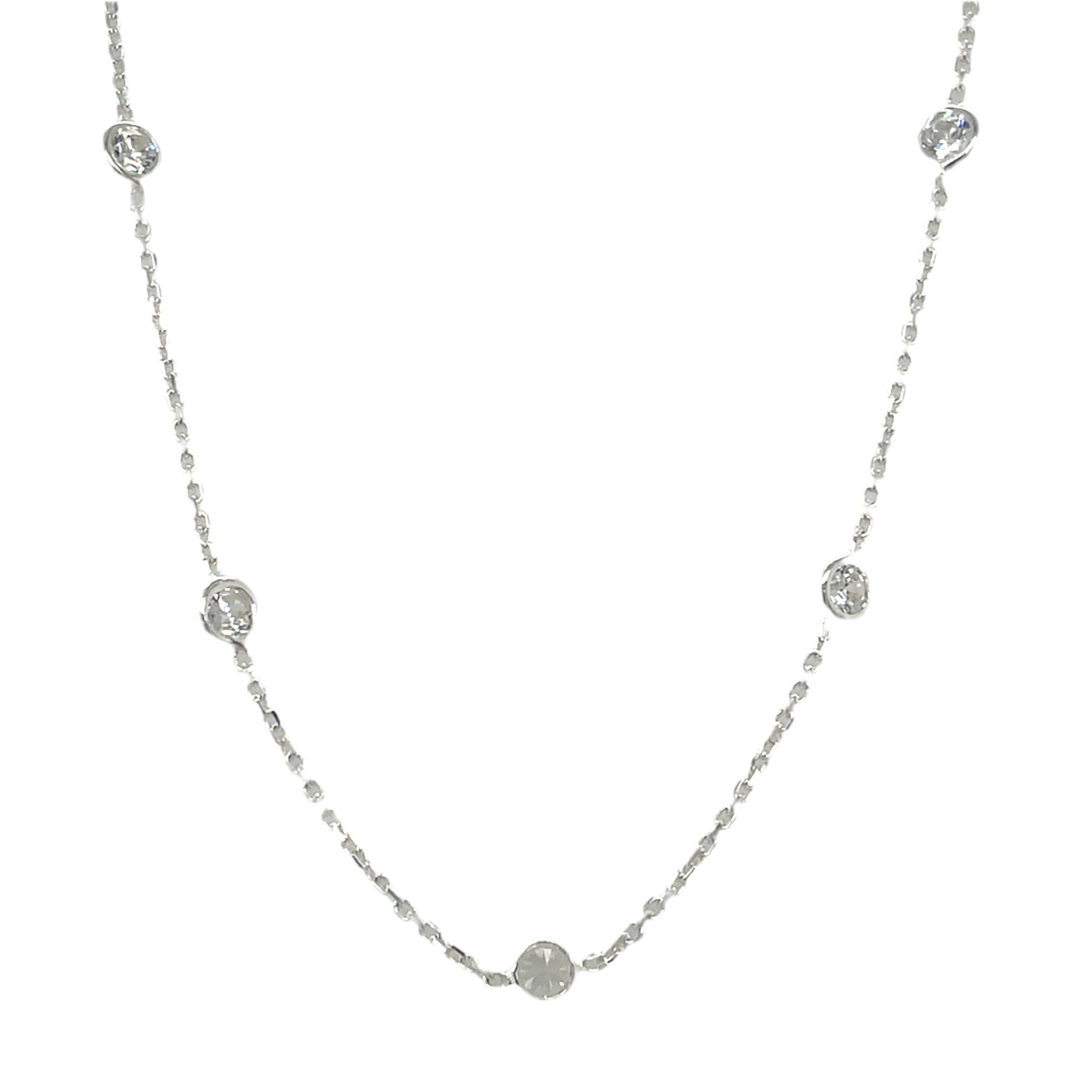 Sterling Silver Cz Round Bezel Multi Stone Necklace