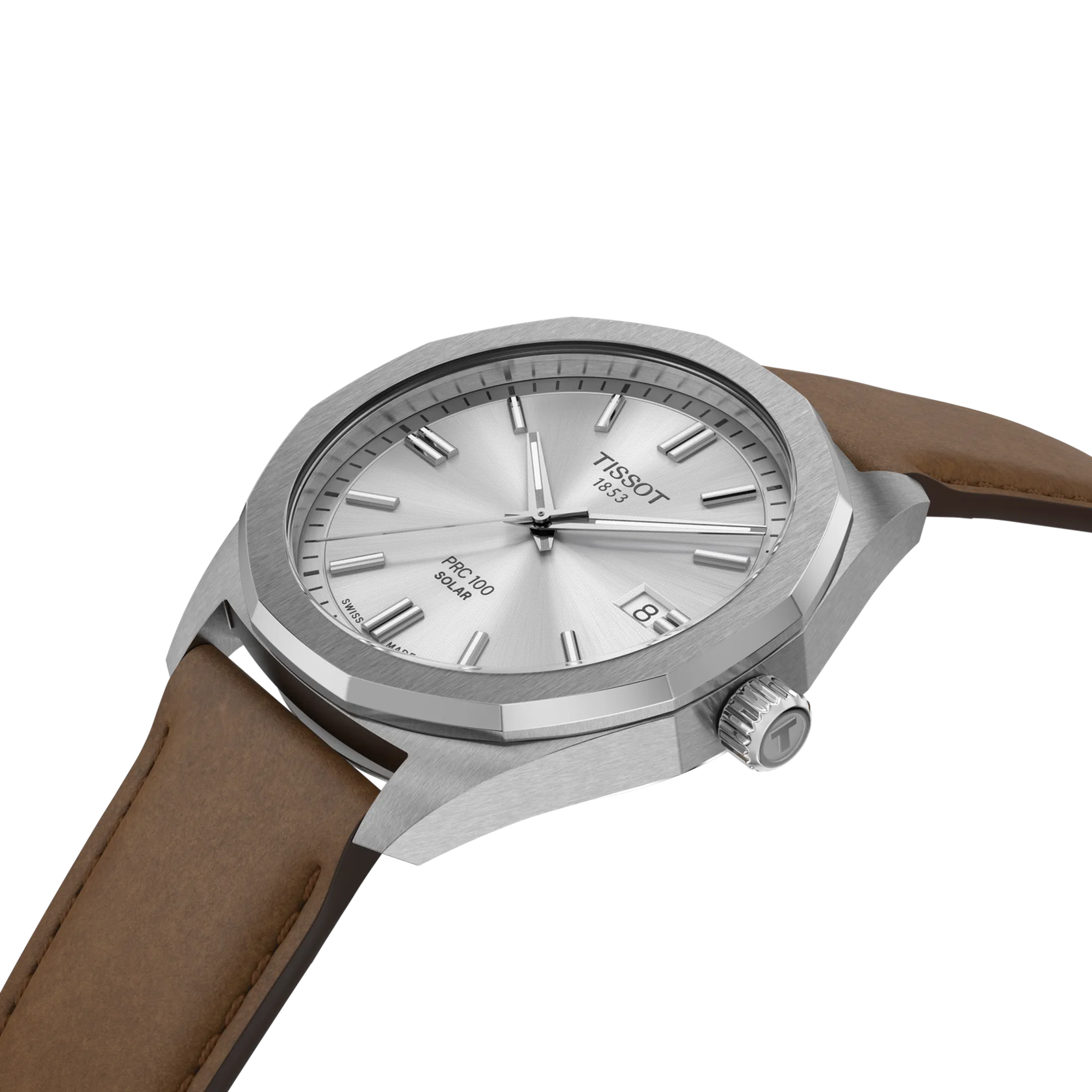 First introduced in the mid-2000s, the PRC 100 was recognised for its striking design, carving out its place in Tissot’s collection. Today, it returns with a pioneering Lightmaster Solar Quartz movement, harnessing photovoltaic energy to fuel every second. With its 39mm stainless steel case and bold dodecagonal bezel, this model exudes confidence. Beneath its sleek sapphire crystal lies a solar-powered quartz movement, designed to recharge effortlessly from both natural and artificial light. The End of Energy indicator ensures optimal performance, while the compatibility with our 20 mm straps allows wearers to personalise their style, whether through classic leather or modern Milanese options. Discover this 39mm solar-powered watch with its stainless-steel case and brown leather strap.